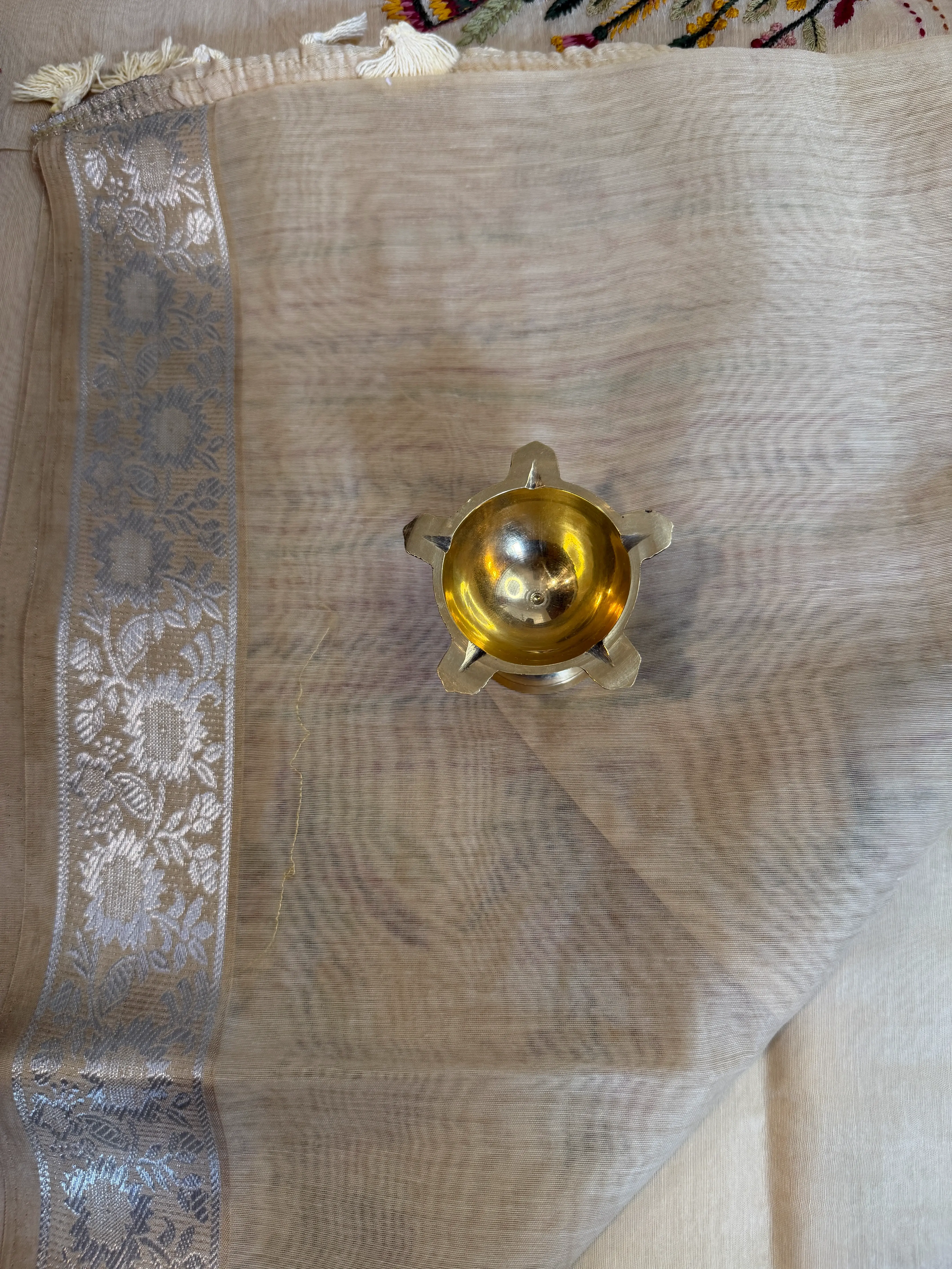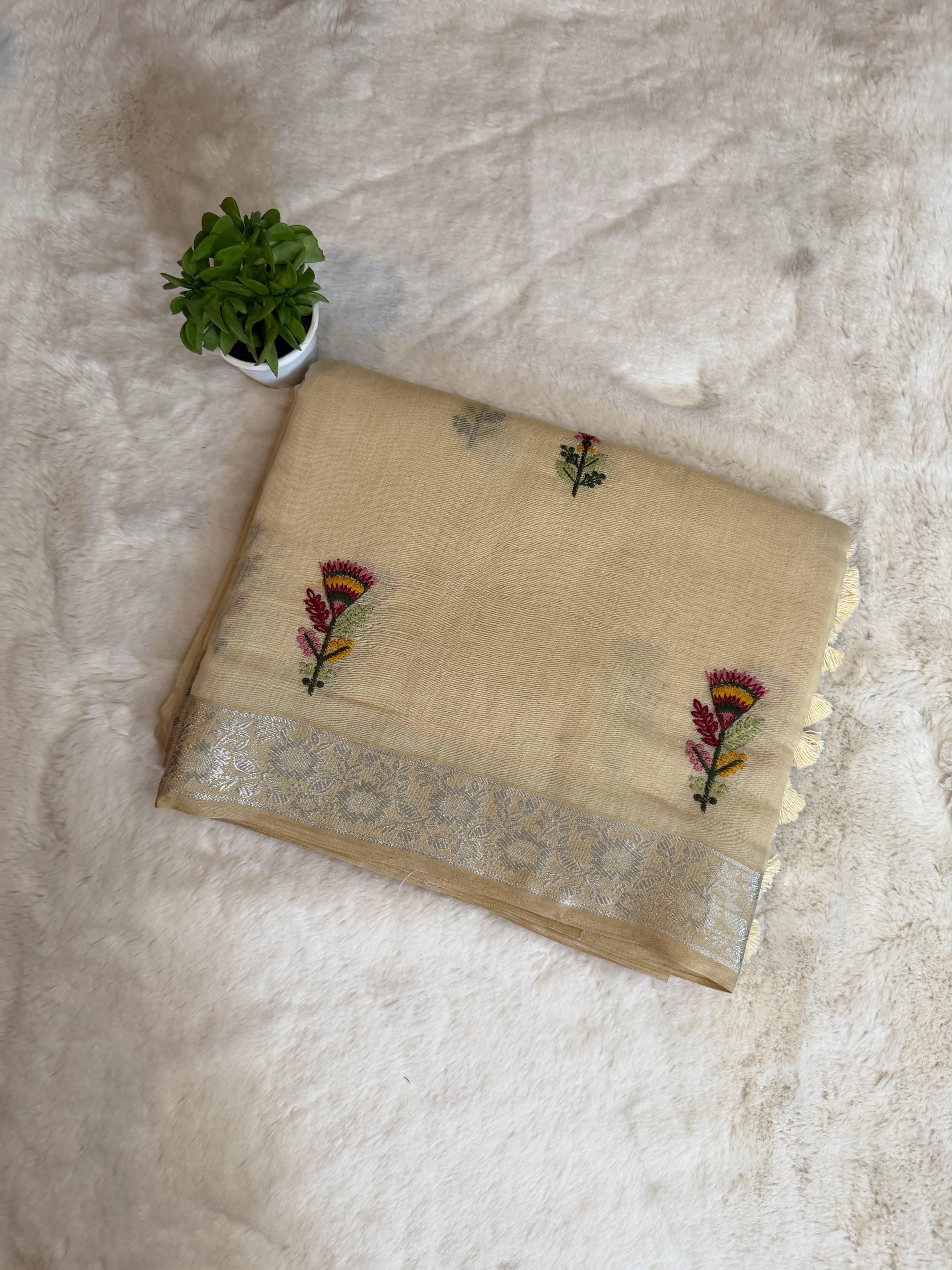 Cream Floral thread work fancy saree