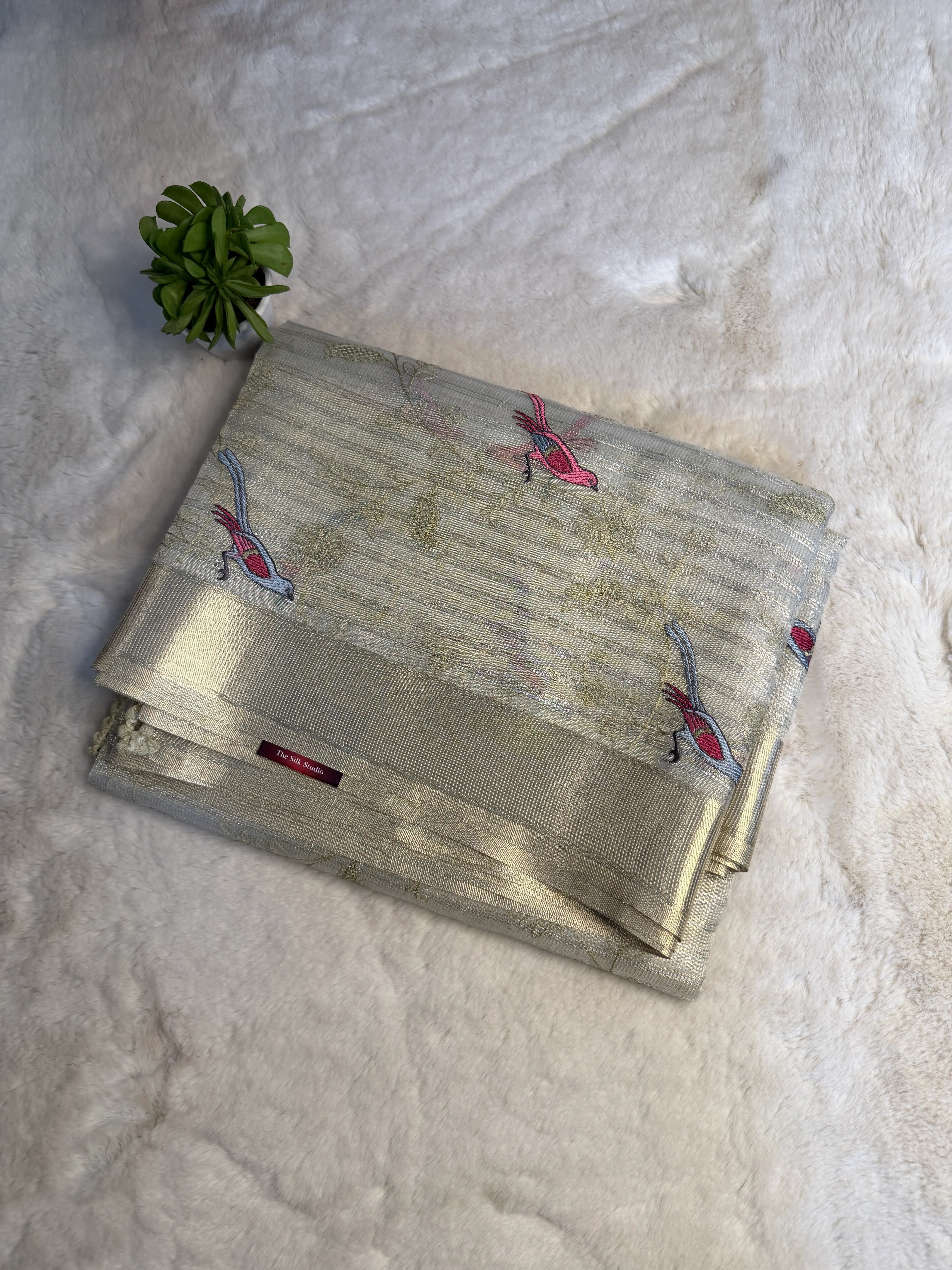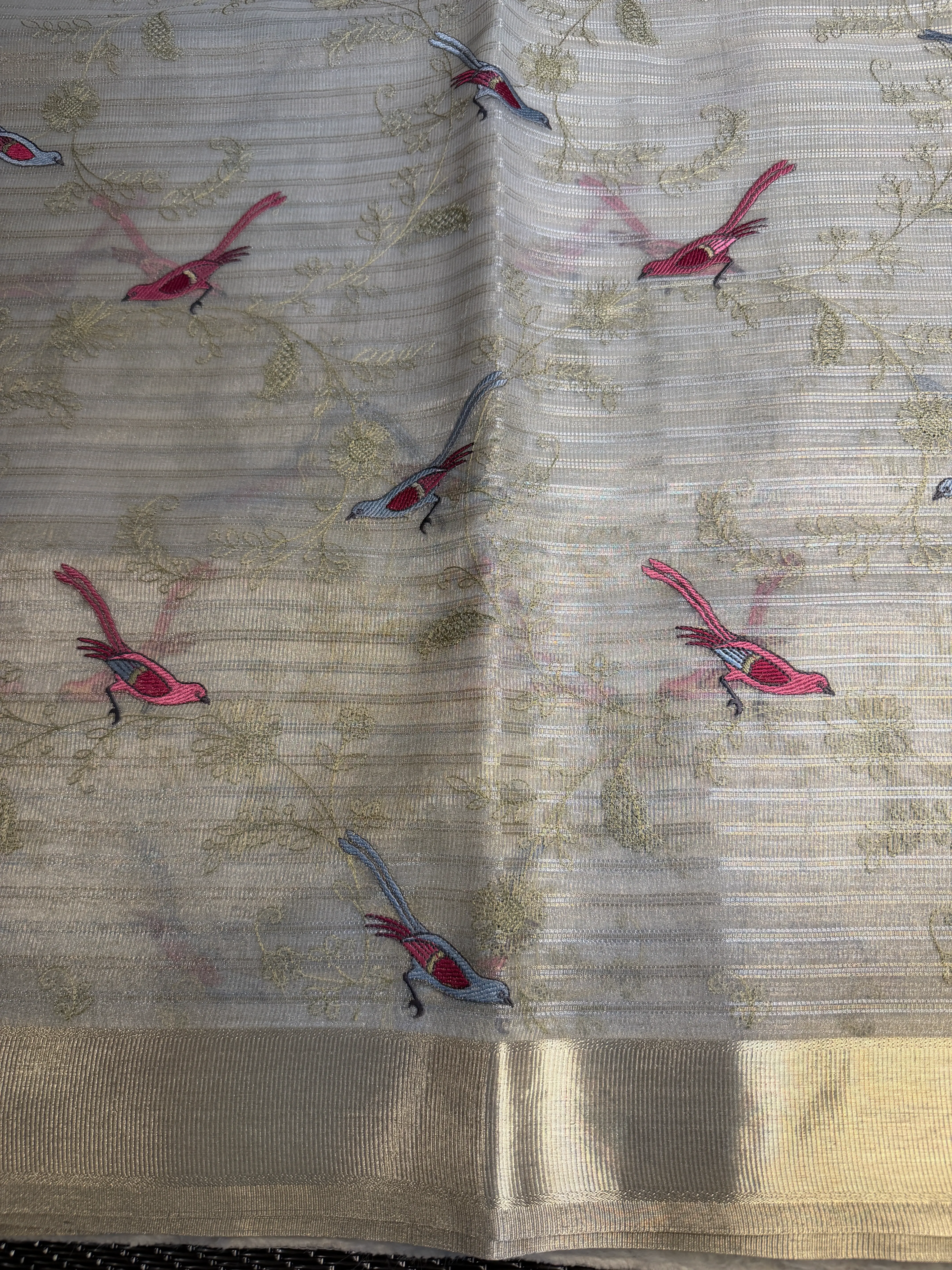 Cream Tissue Organza with Bird thread work Saree