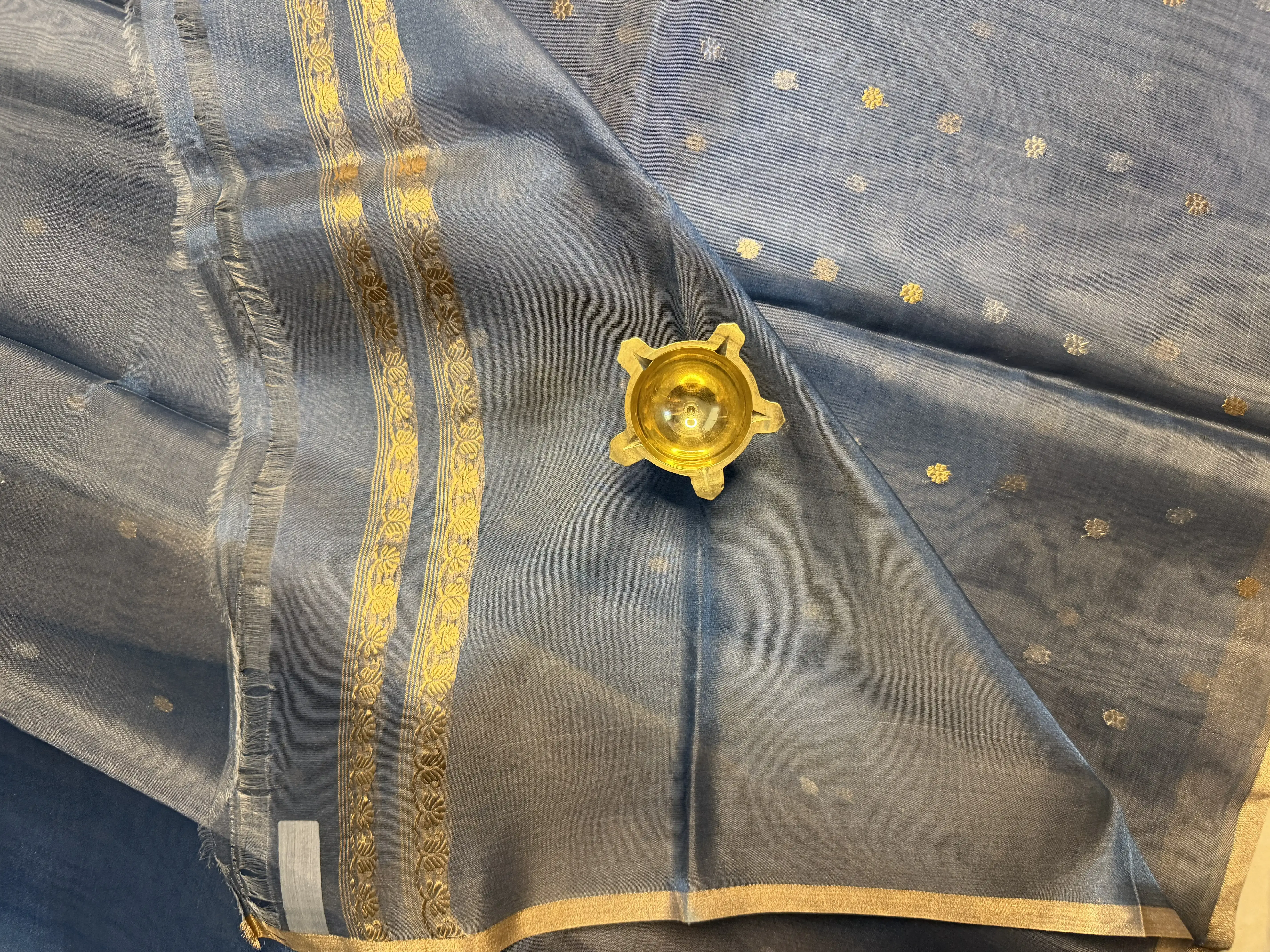 Grey with Buttas pure Tissue Organza Saree