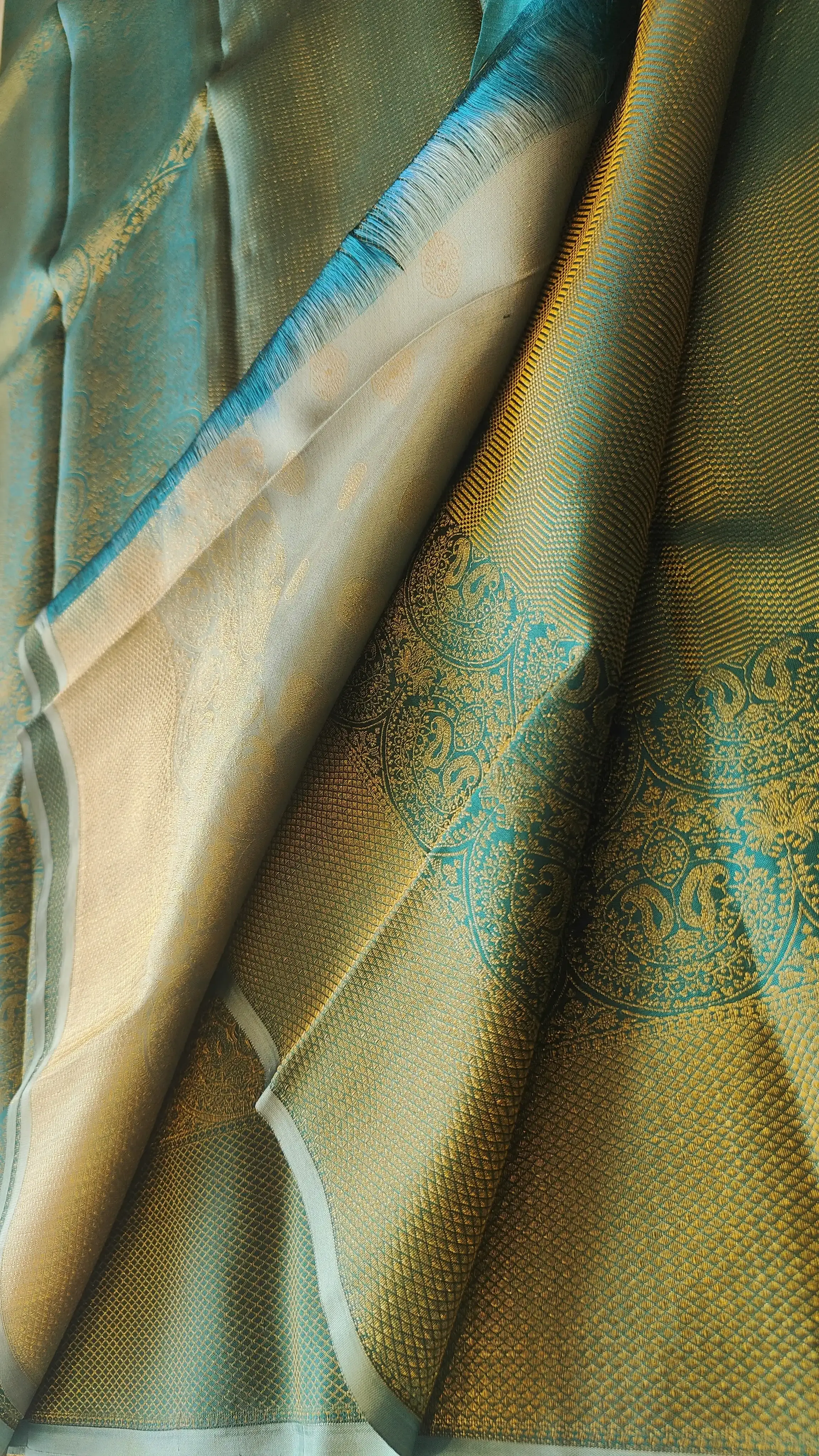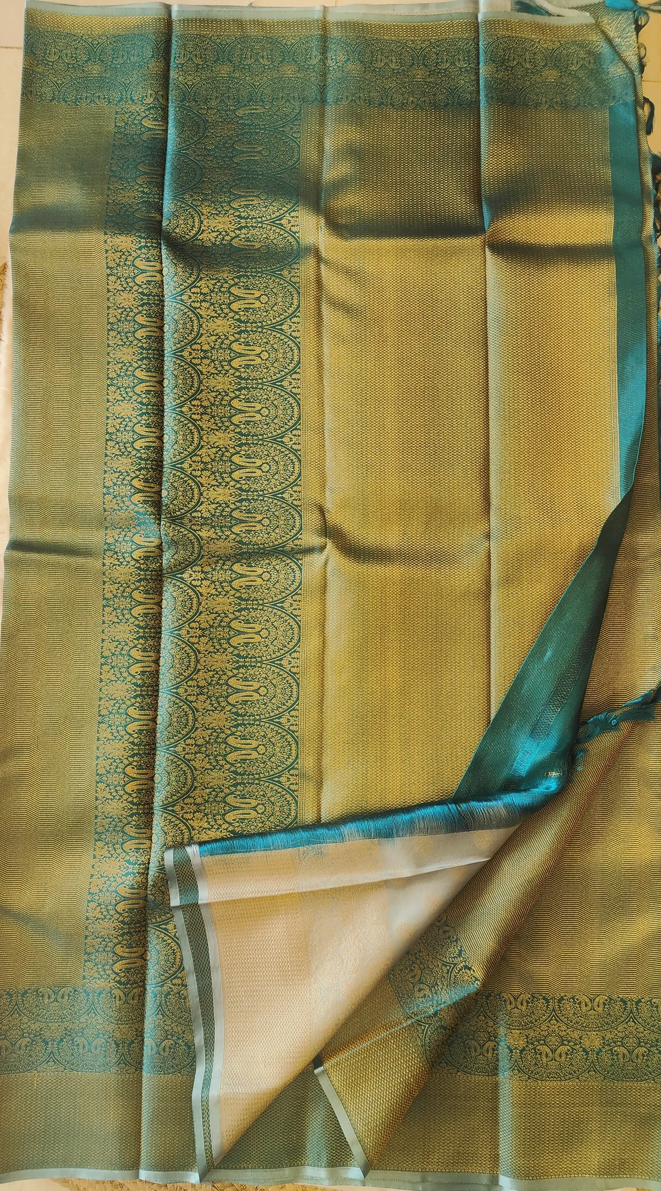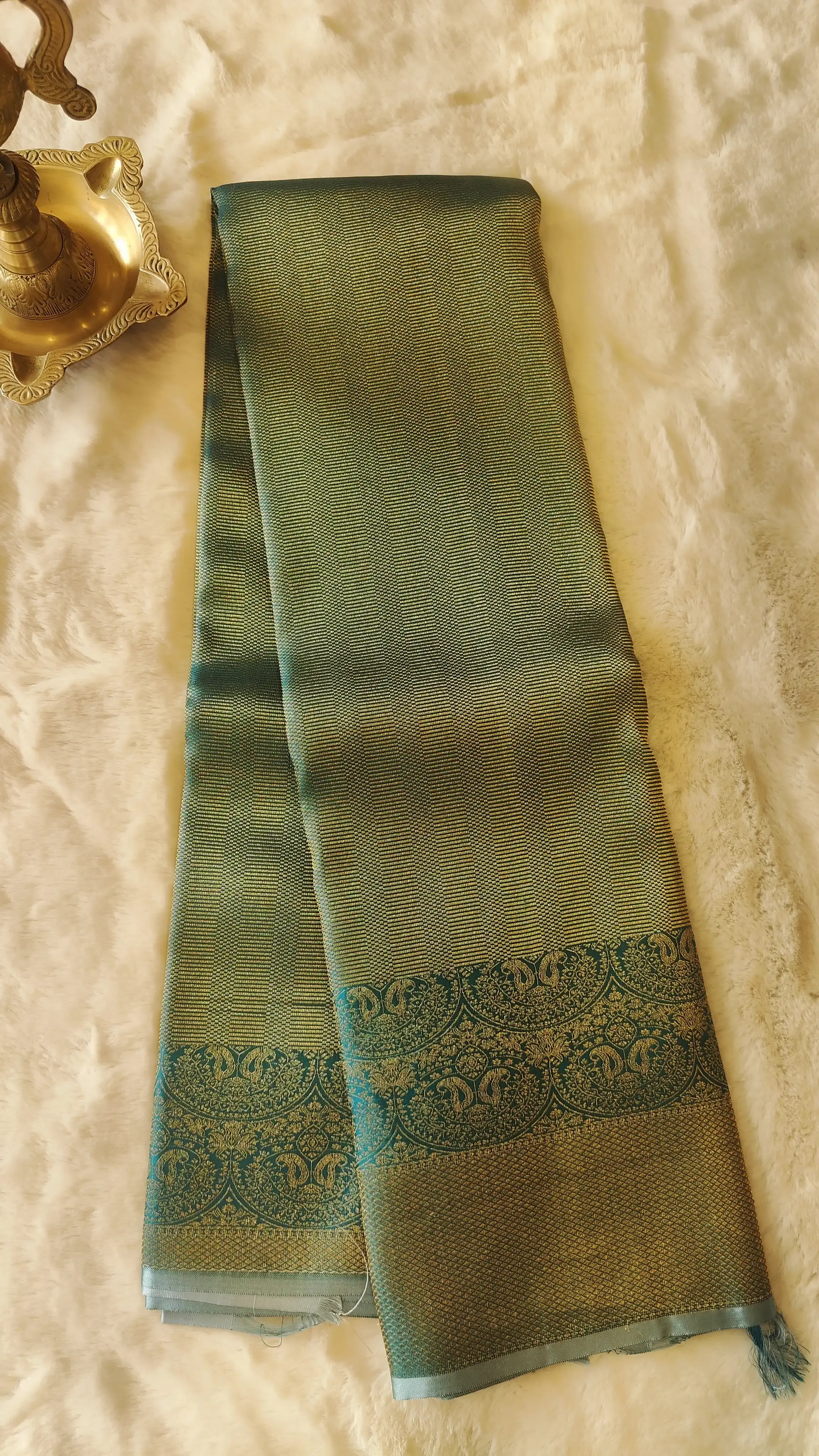 Dark green all over zari body with contemporary border silk sarees