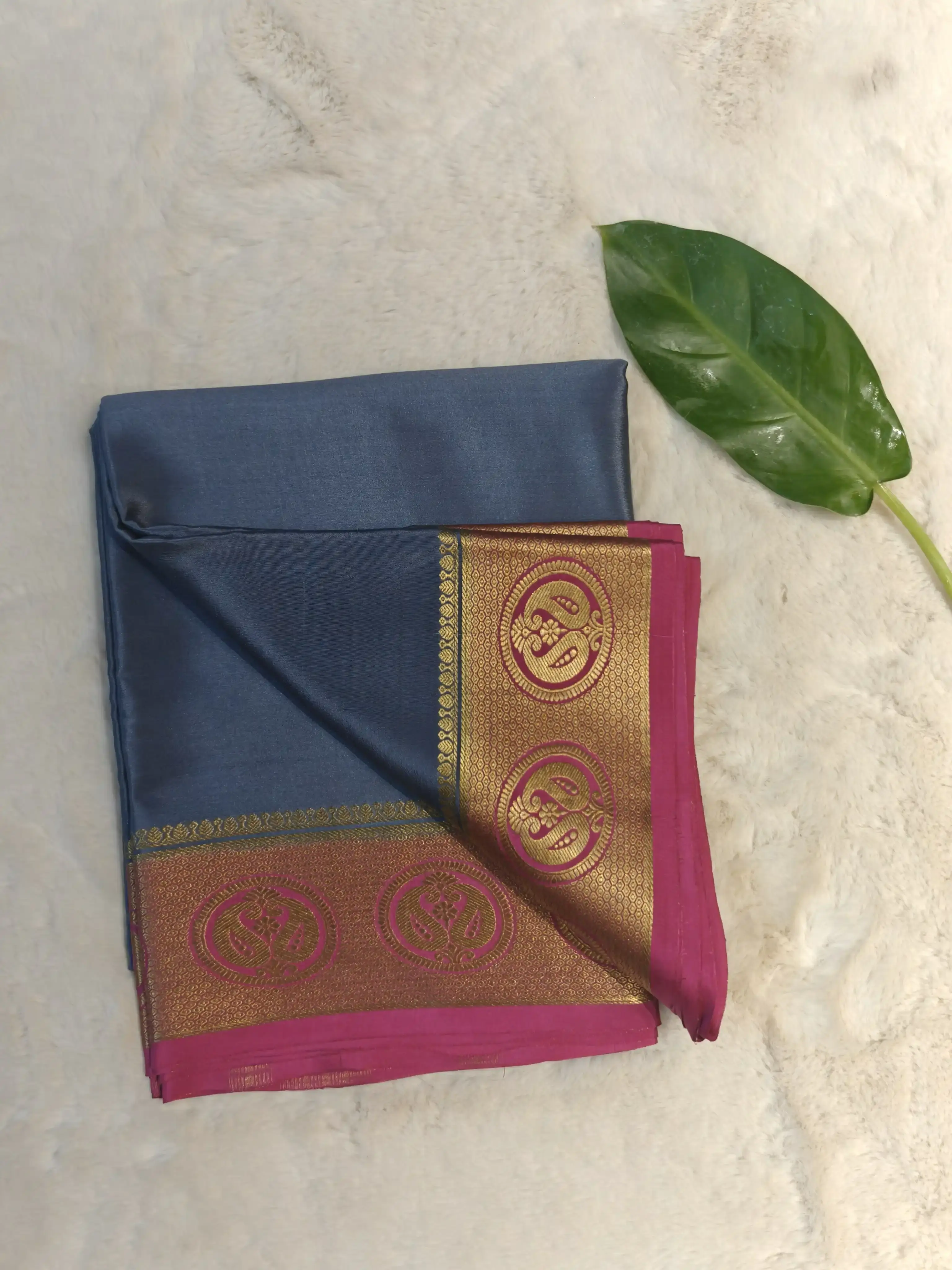 Grey and pink border pure crepe silk saree 120gsm