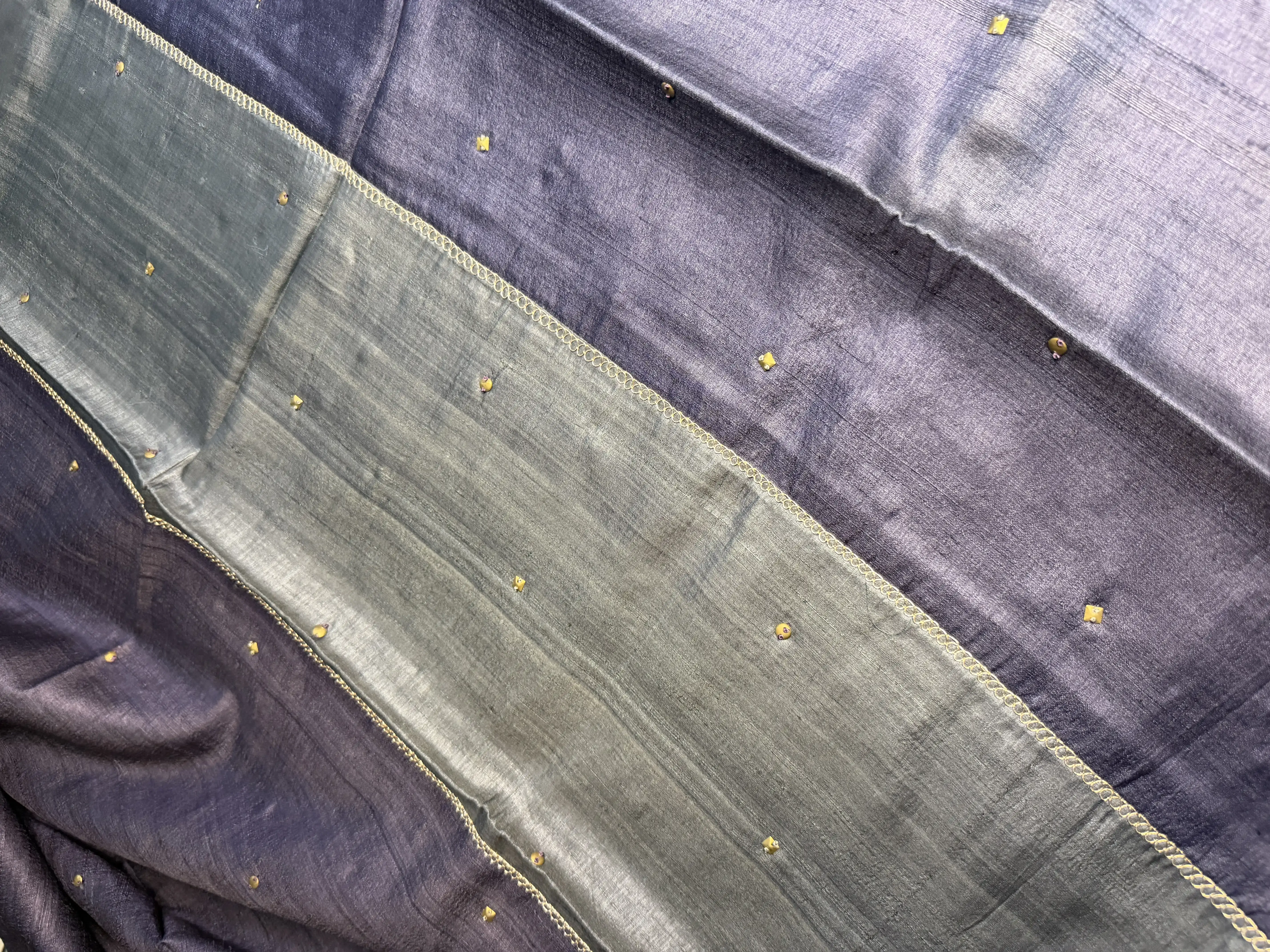 Grey WIth Sequin Work Pure Tussar Silk Saree