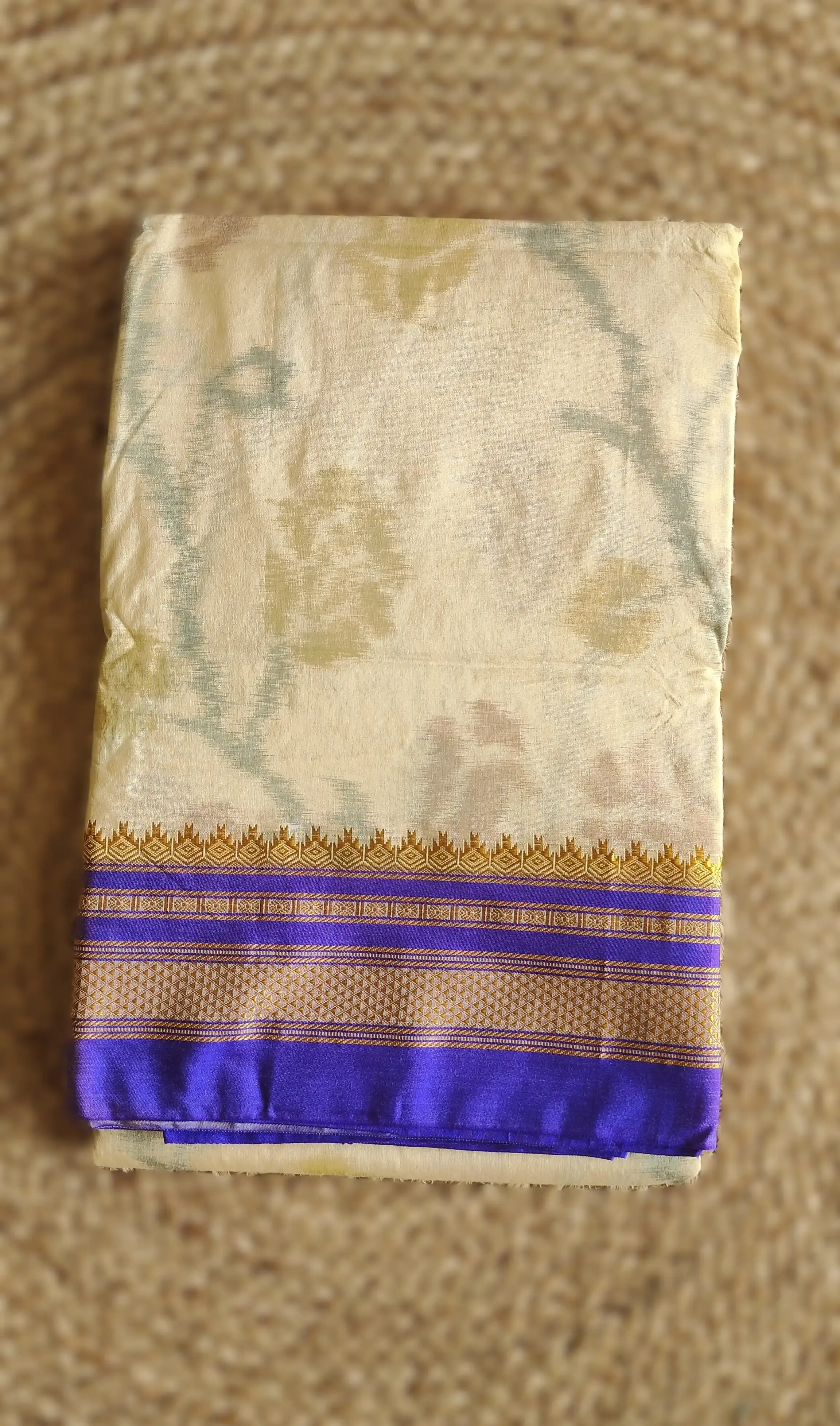 Ilakal Beige with Purple border saree