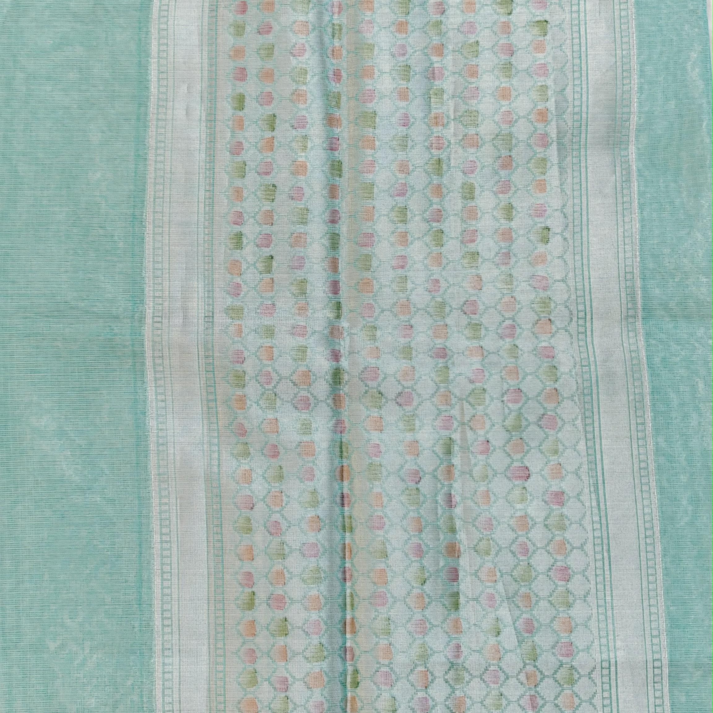 Kota Tissue Organza Saree in Sea Green with Pastel Floral Brocade