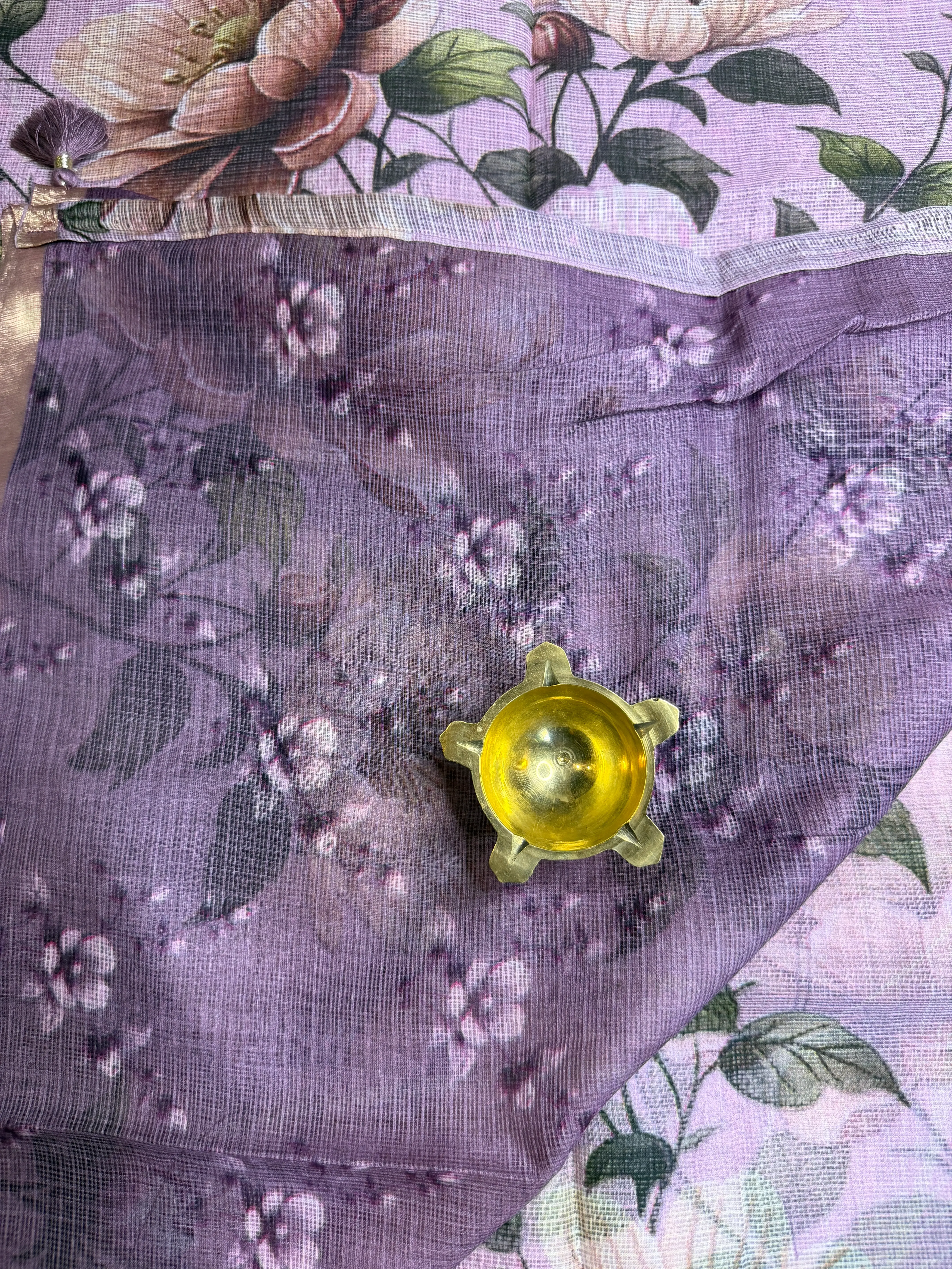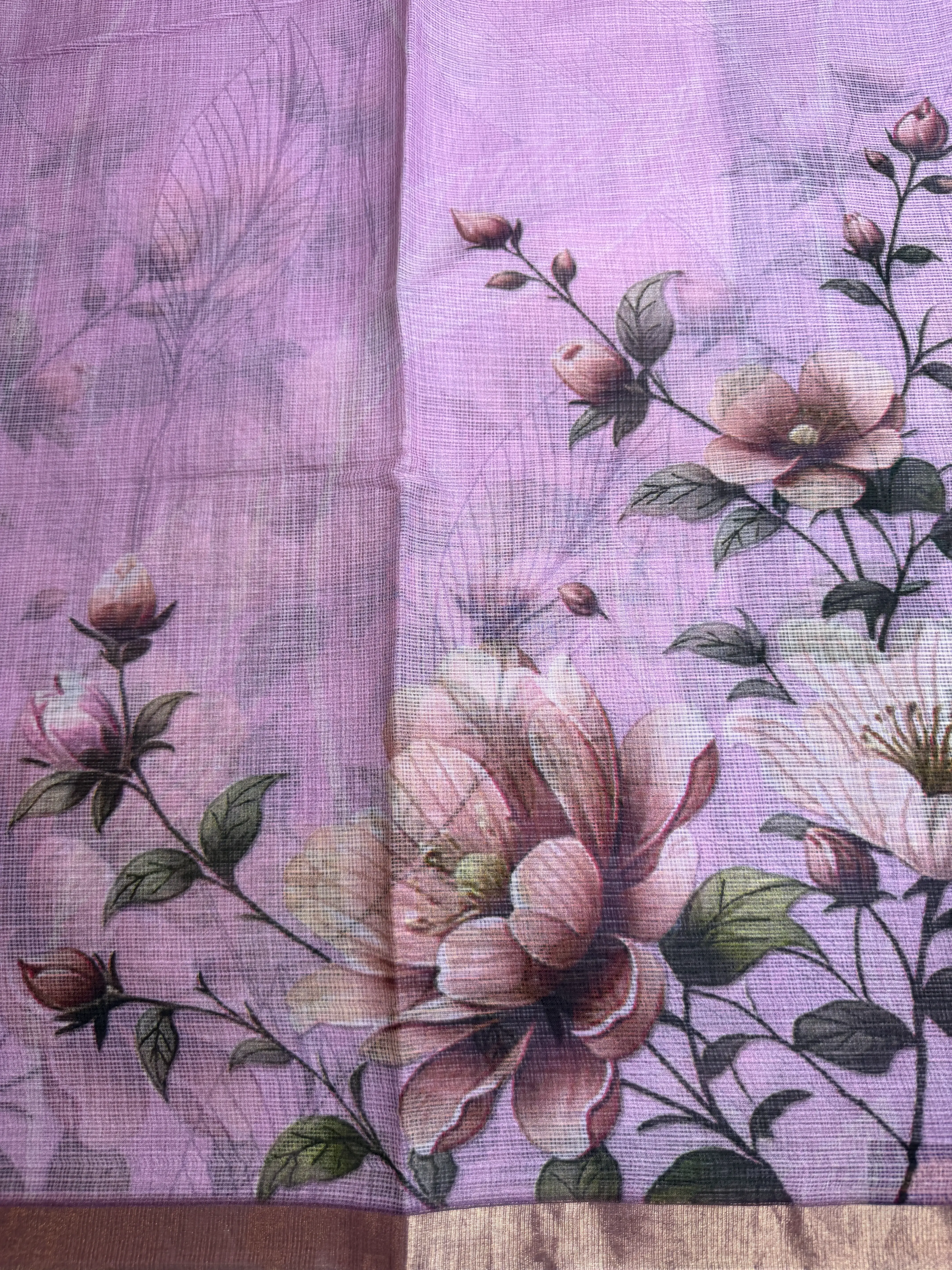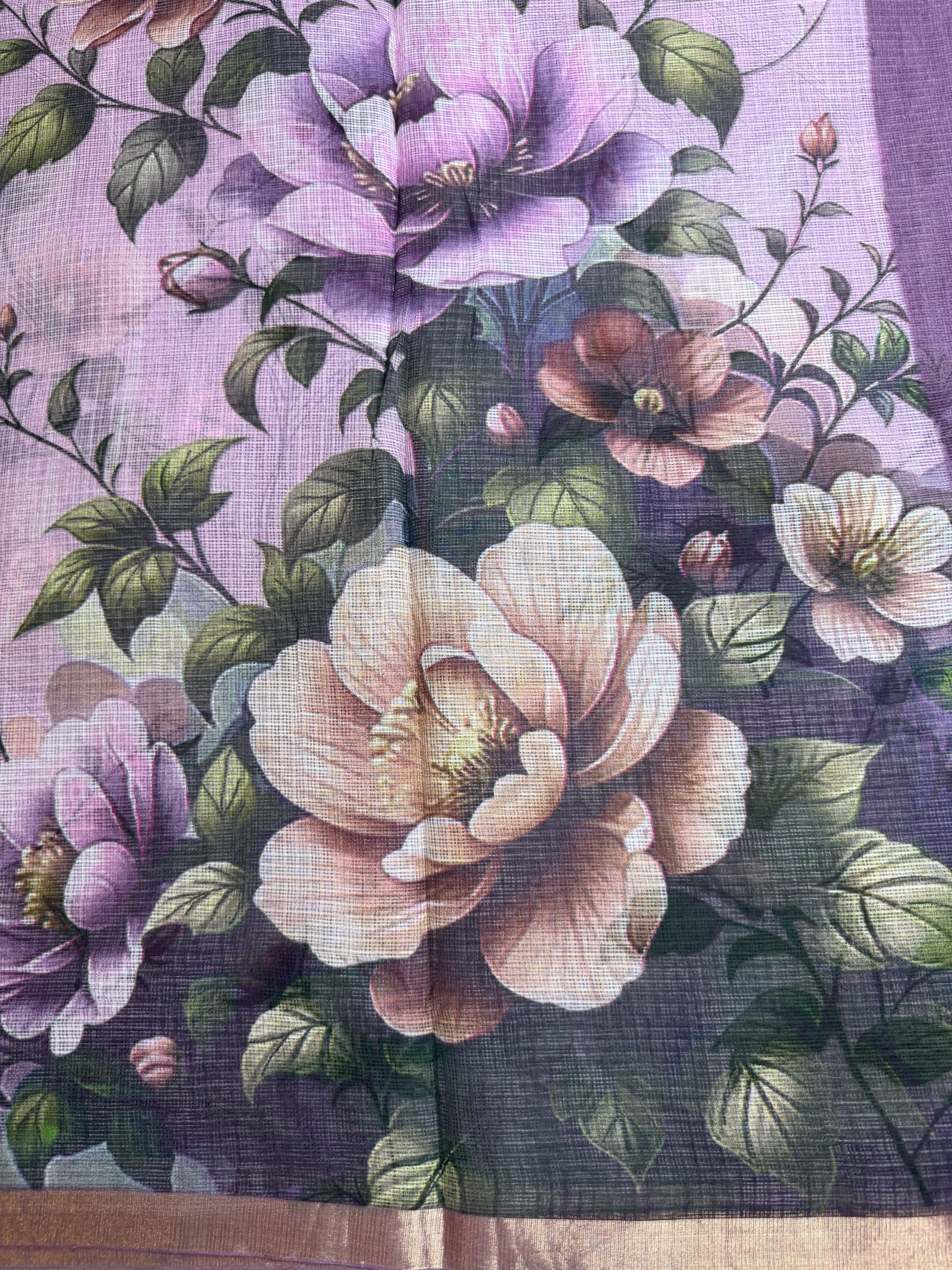 Step into subtle charm with this Lavender Digital Print Linen Cotton Saree. The soothing lavender shade paired with graceful digital prints creates a fresh and elegant look. Made with comfortable linen cotton fabric, it’s perfect for all-day wear with style and ease.