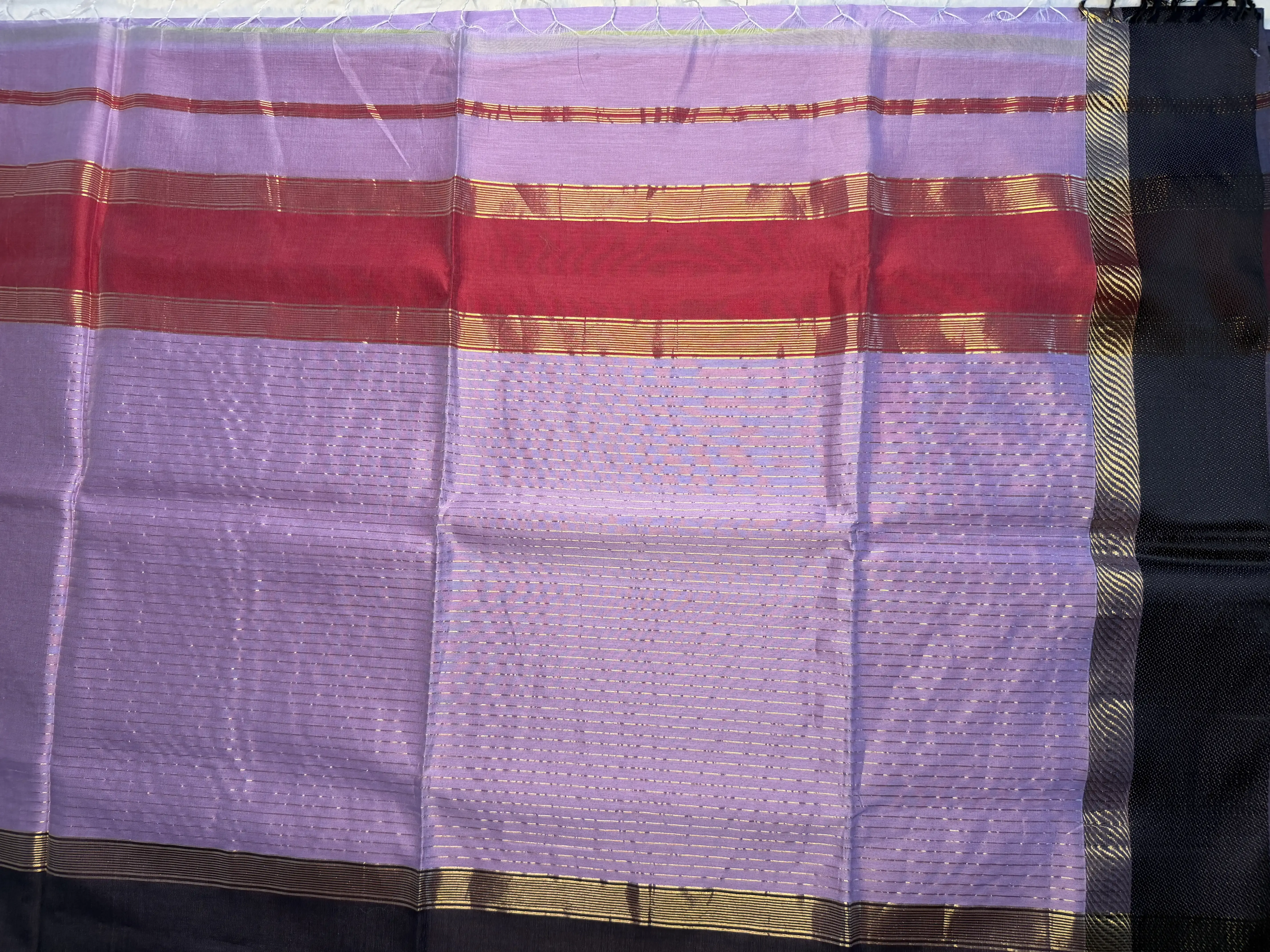 Lavender Ganga Jamuna Border Maheshwari Silk Cotton Saree