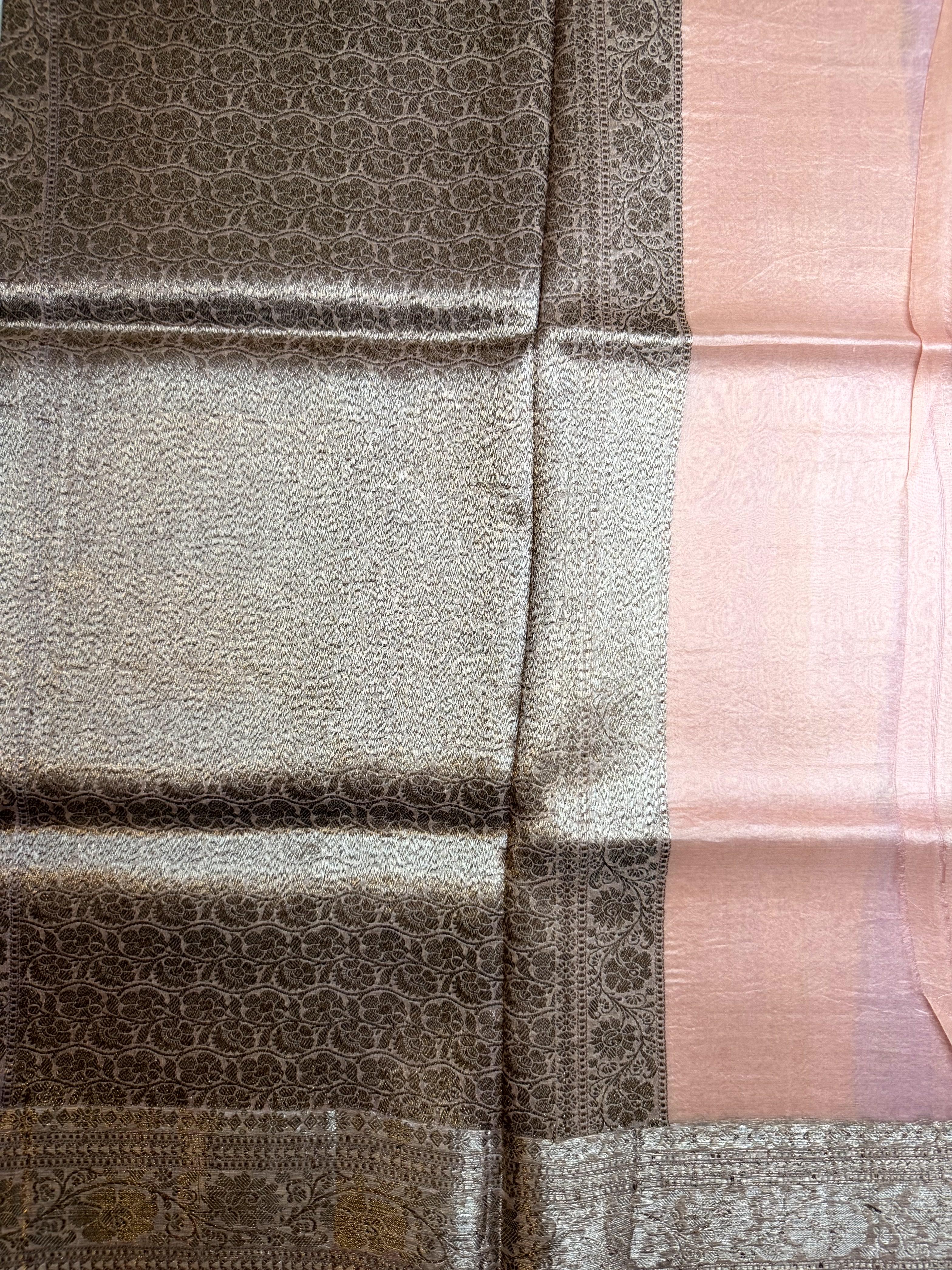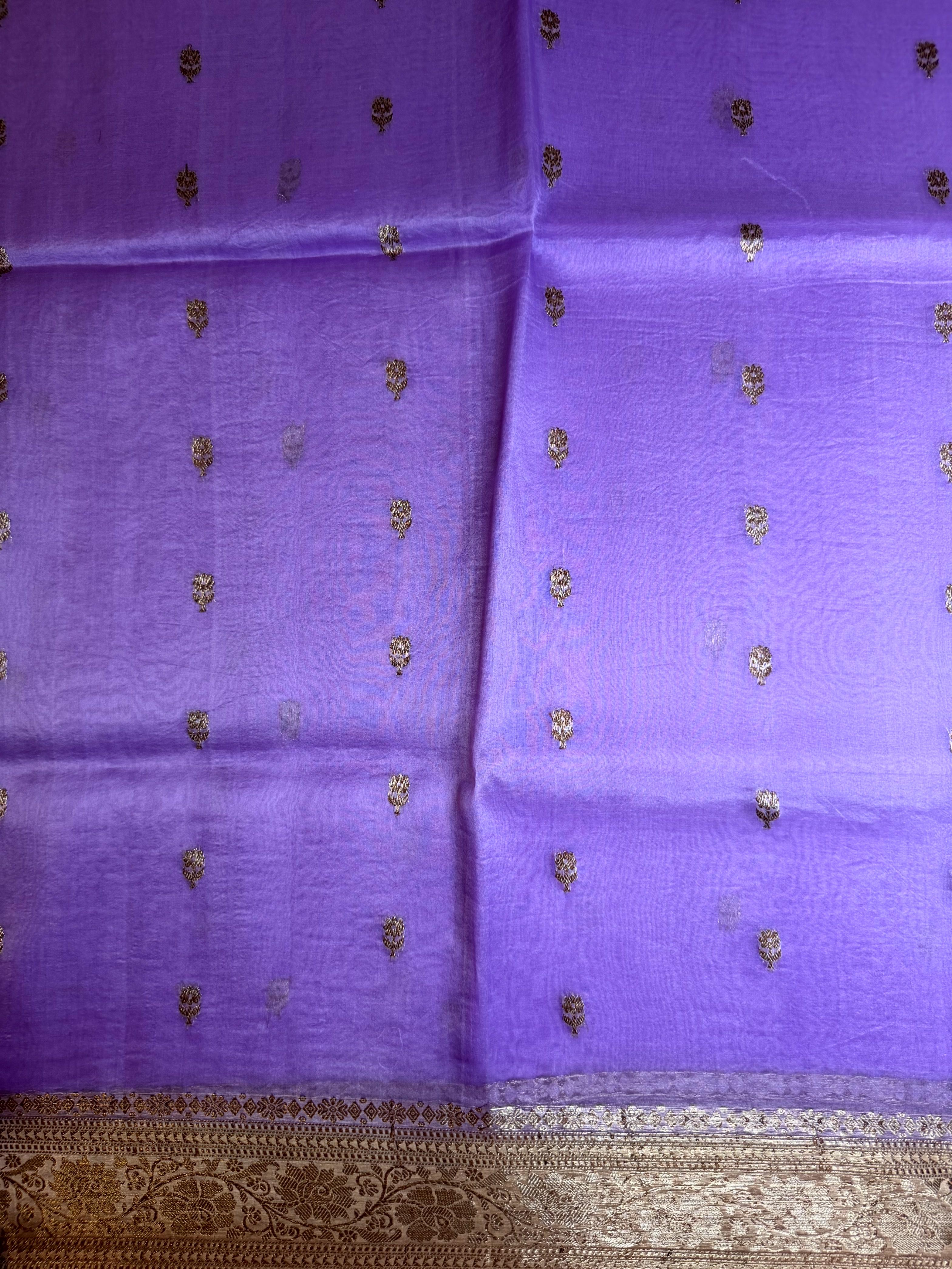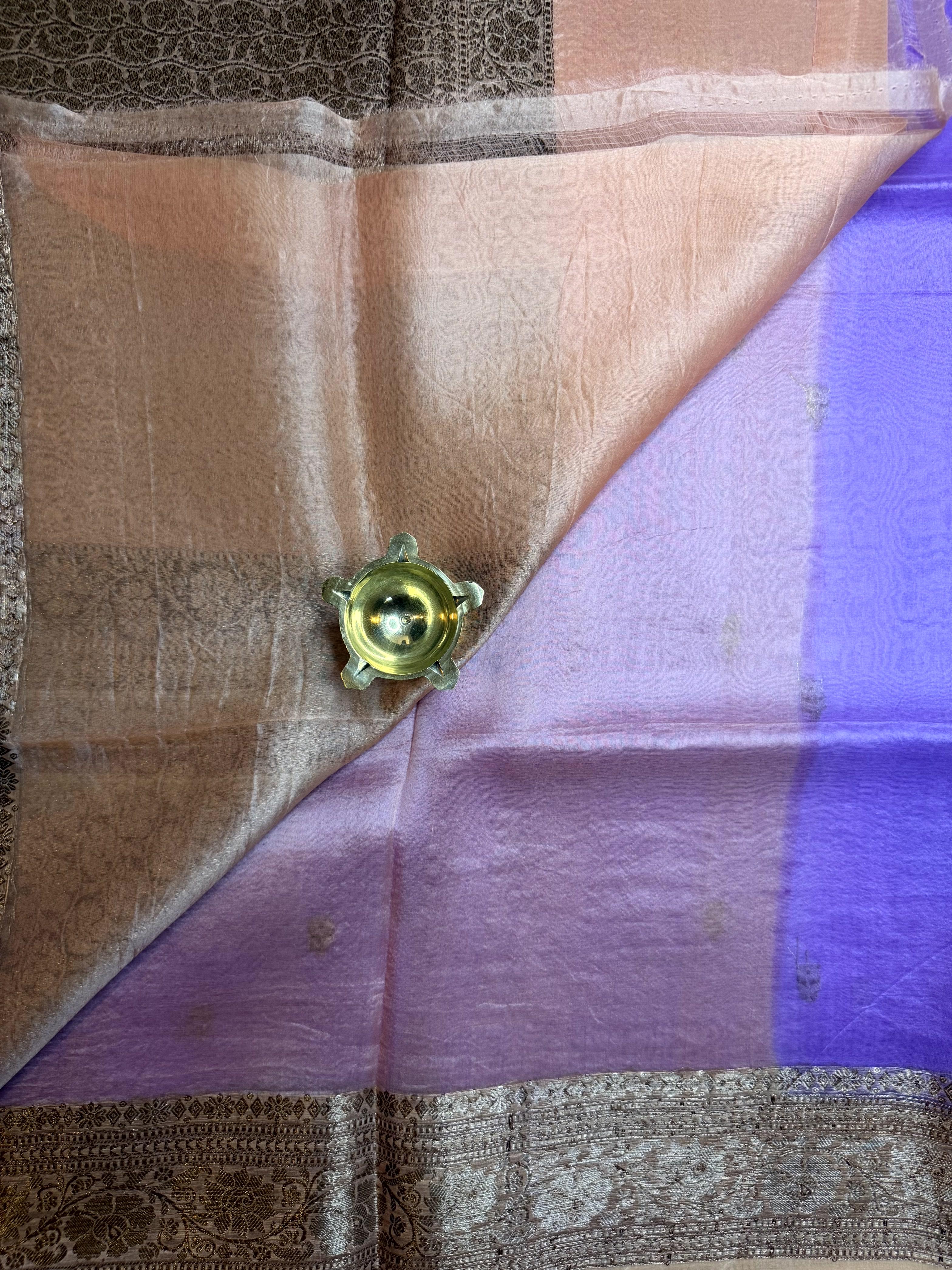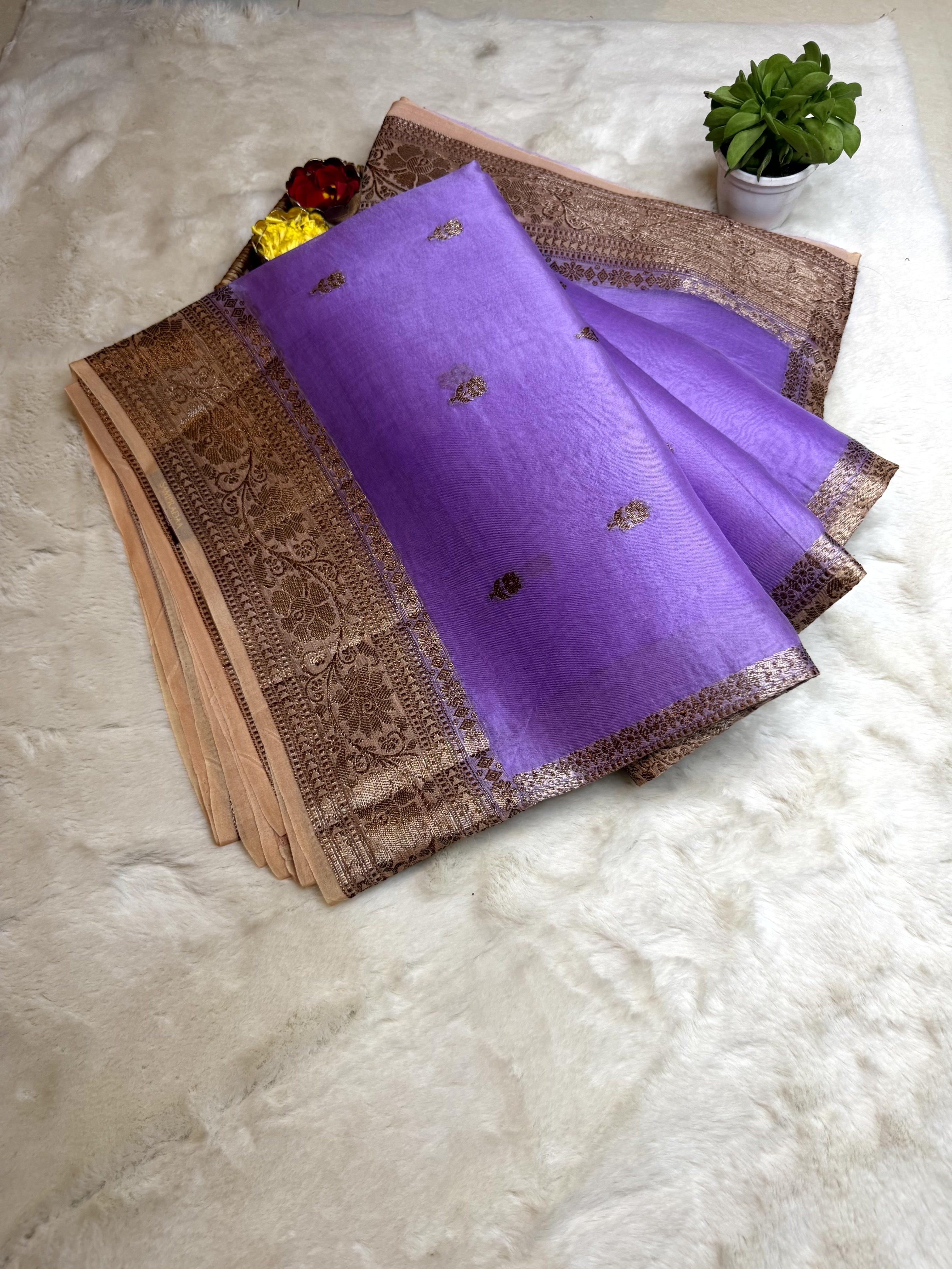 Dreamy and refined, this pure Kora organza handloom saree in soft lavender is a celebration of feminine grace and subtle luxury. The sheer, feather-light fabric carries a natural translucency that gives each pleat a cloud-like fall, while its crisp organza texture keeps the silhouette structured and polished. Framed with a sophisticated beige border woven in antique zari, the saree gains a touch of vintage grandeur without overshadowing its pastel charm. A perfect harmony of modern palette and heritage craftsmanship โ ideal for daytime festivities, temple occasions, brunch celebrations, and intimate events where elegance speaks softly yet beautifully โจ๐๐ค