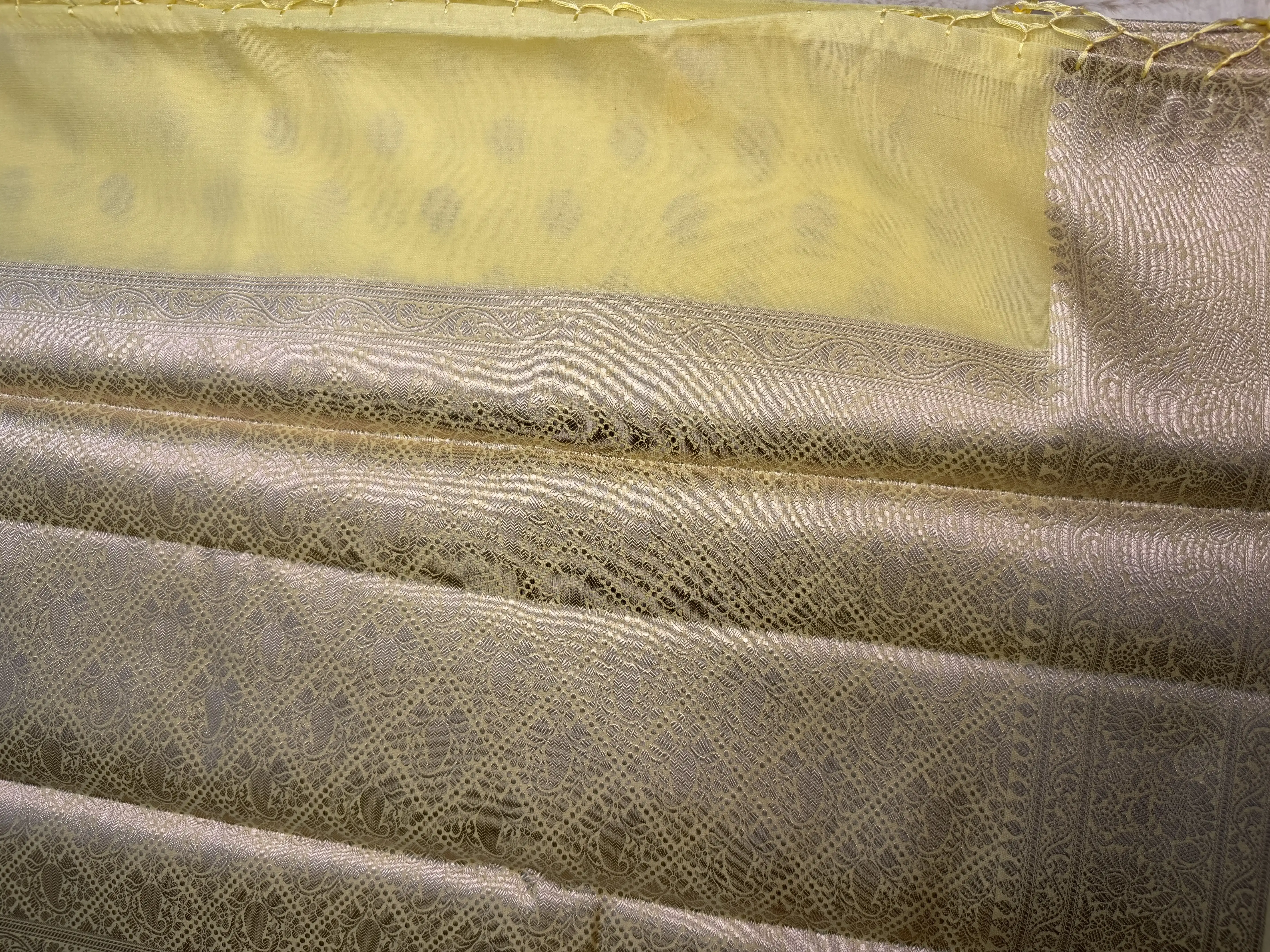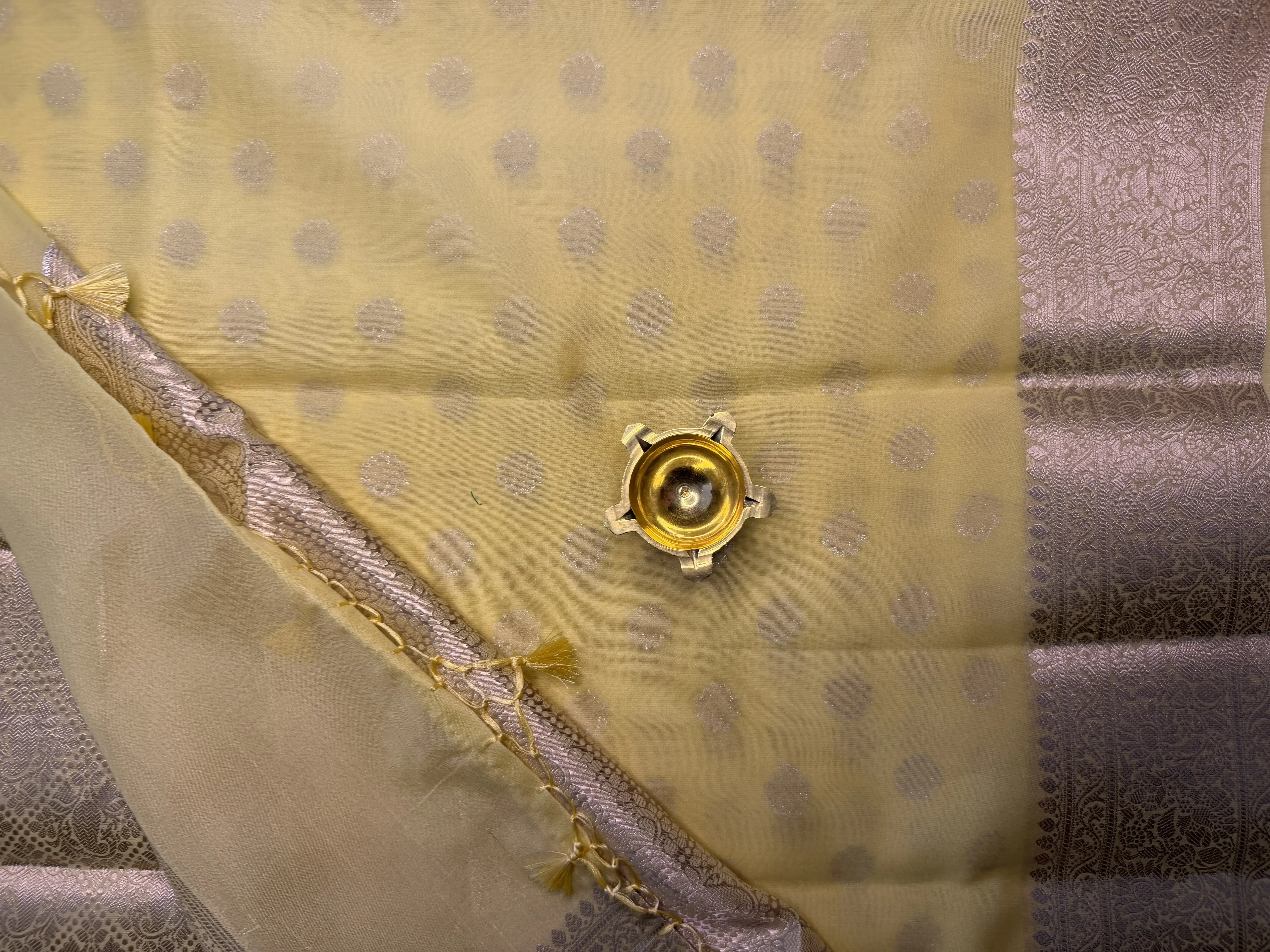 Ideal for daytime events, casual gatherings, and festive celebrations, this saree captures a bright, cheerful spirit with timeless grace.
