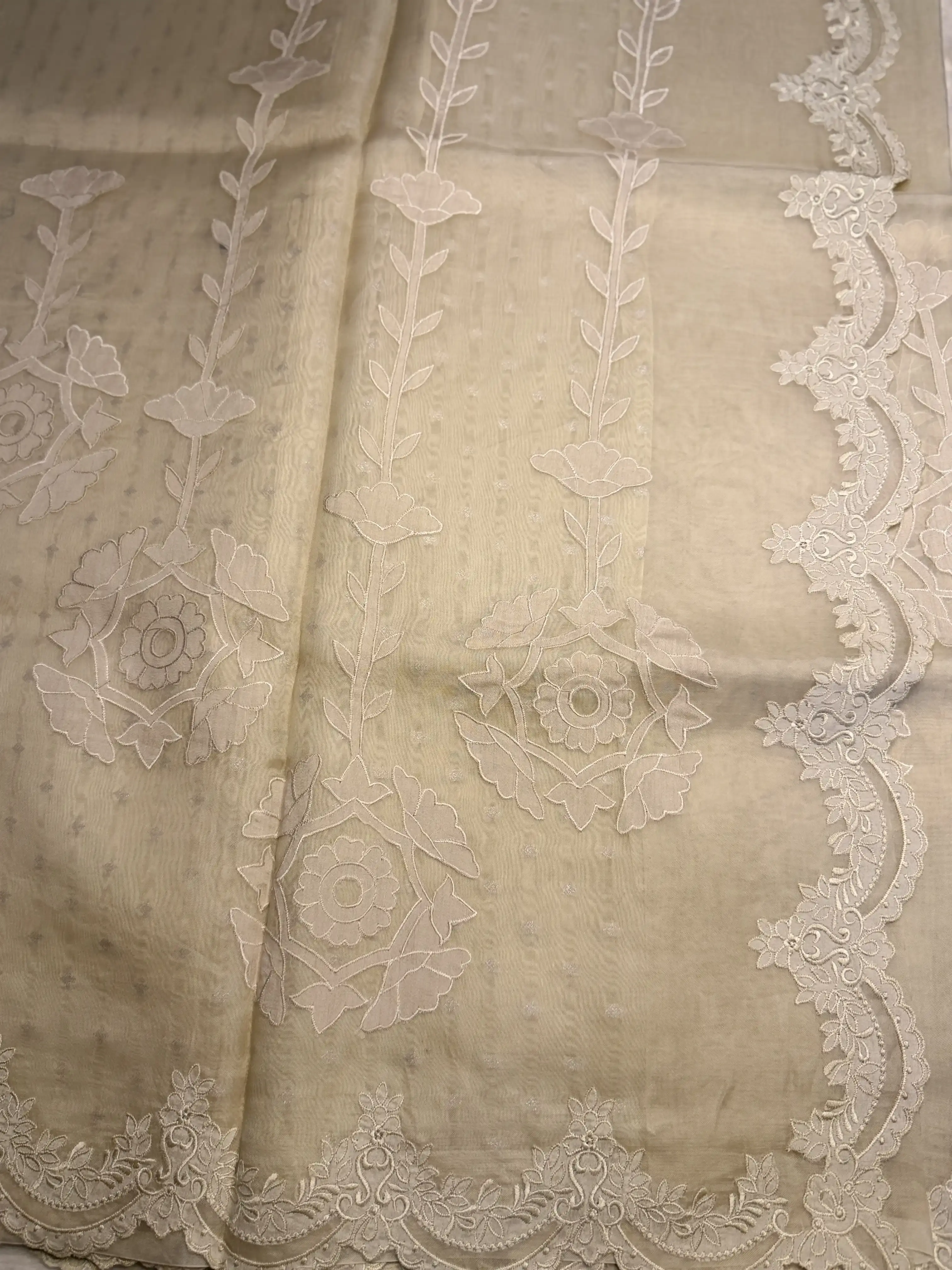 Light Beige Scallop Design Pure Organza Saree