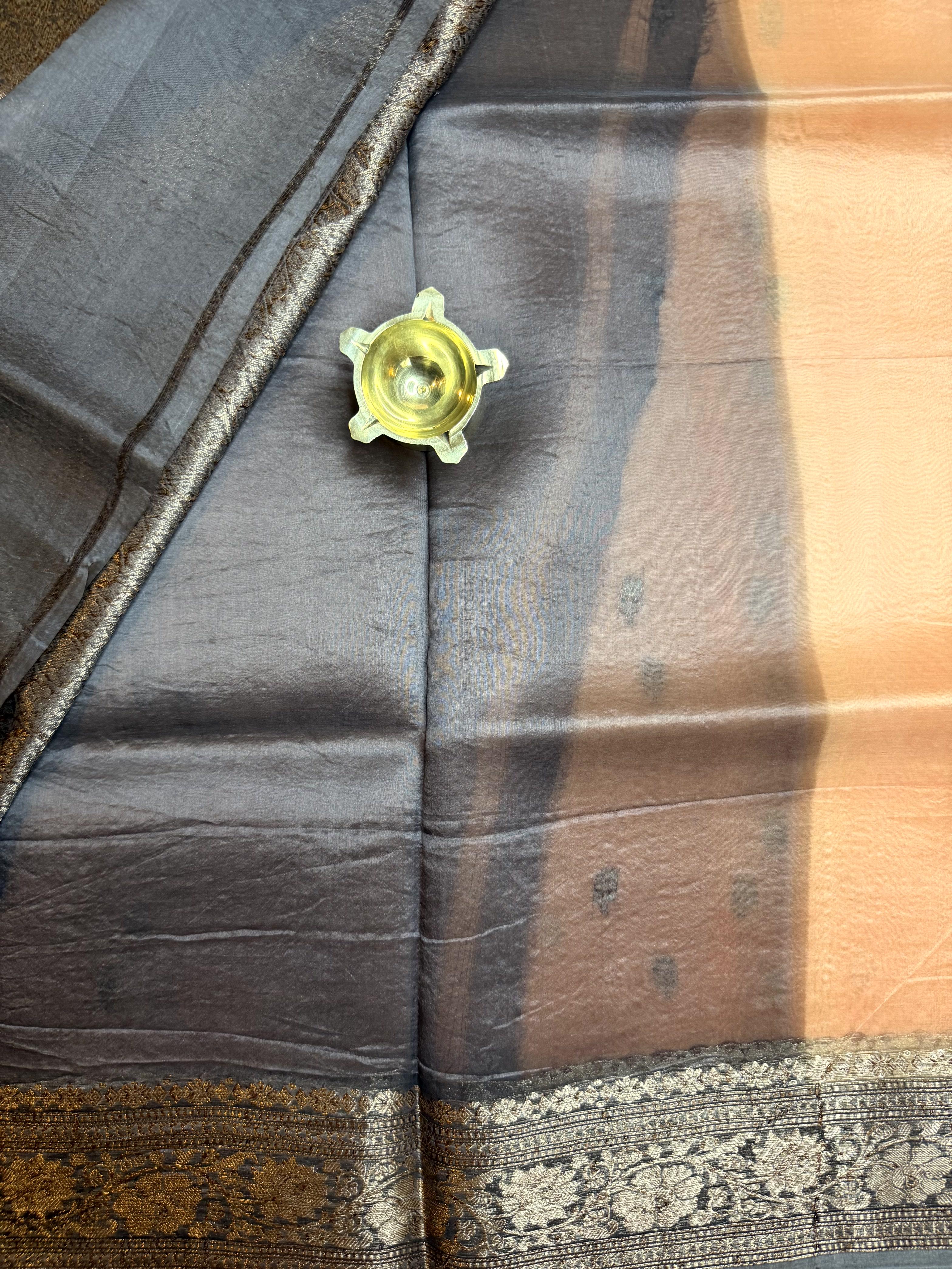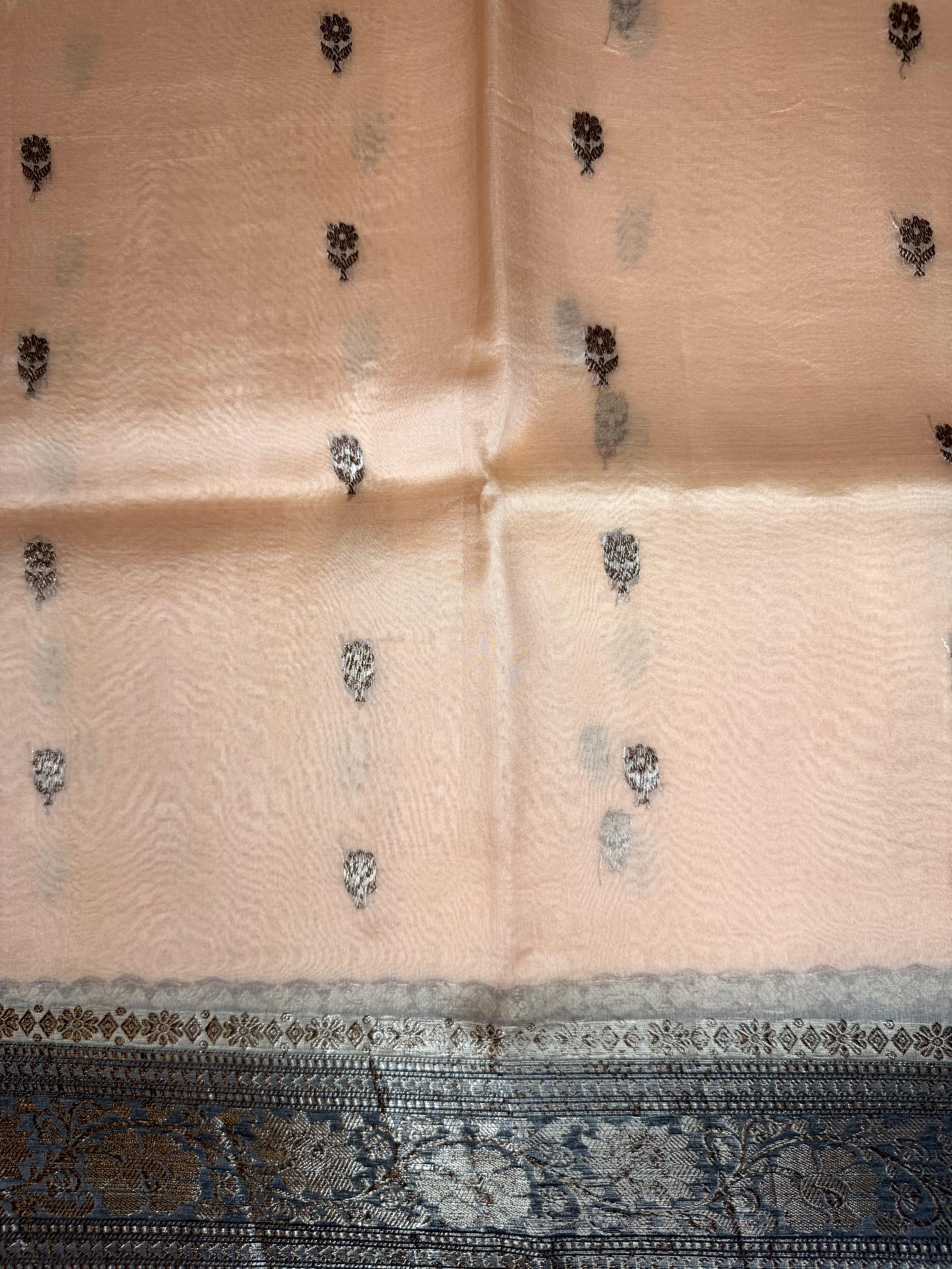 Light Orange with buttas pure kora organza handloom saree