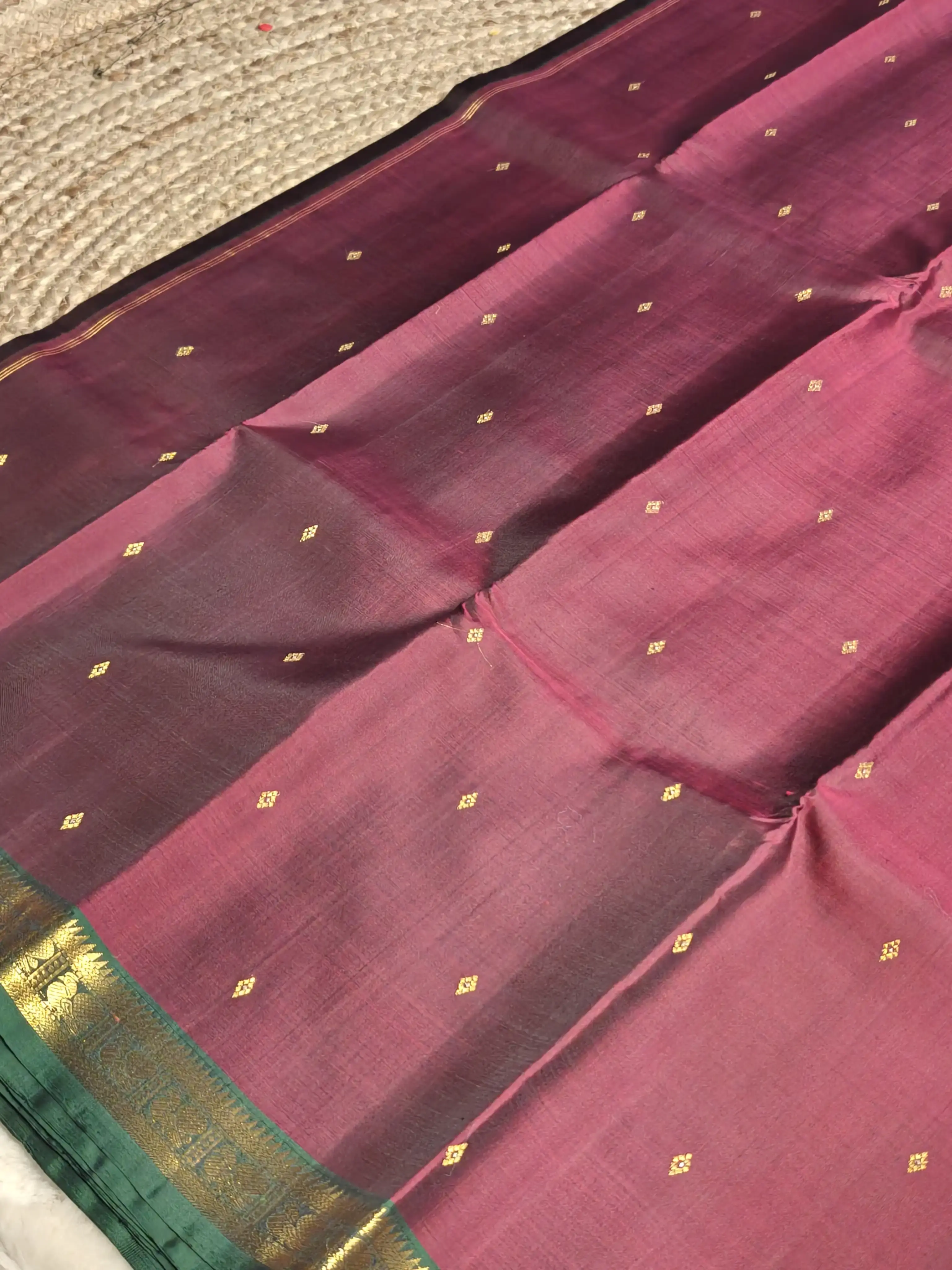 Maroon and green border small motifs silk saree
