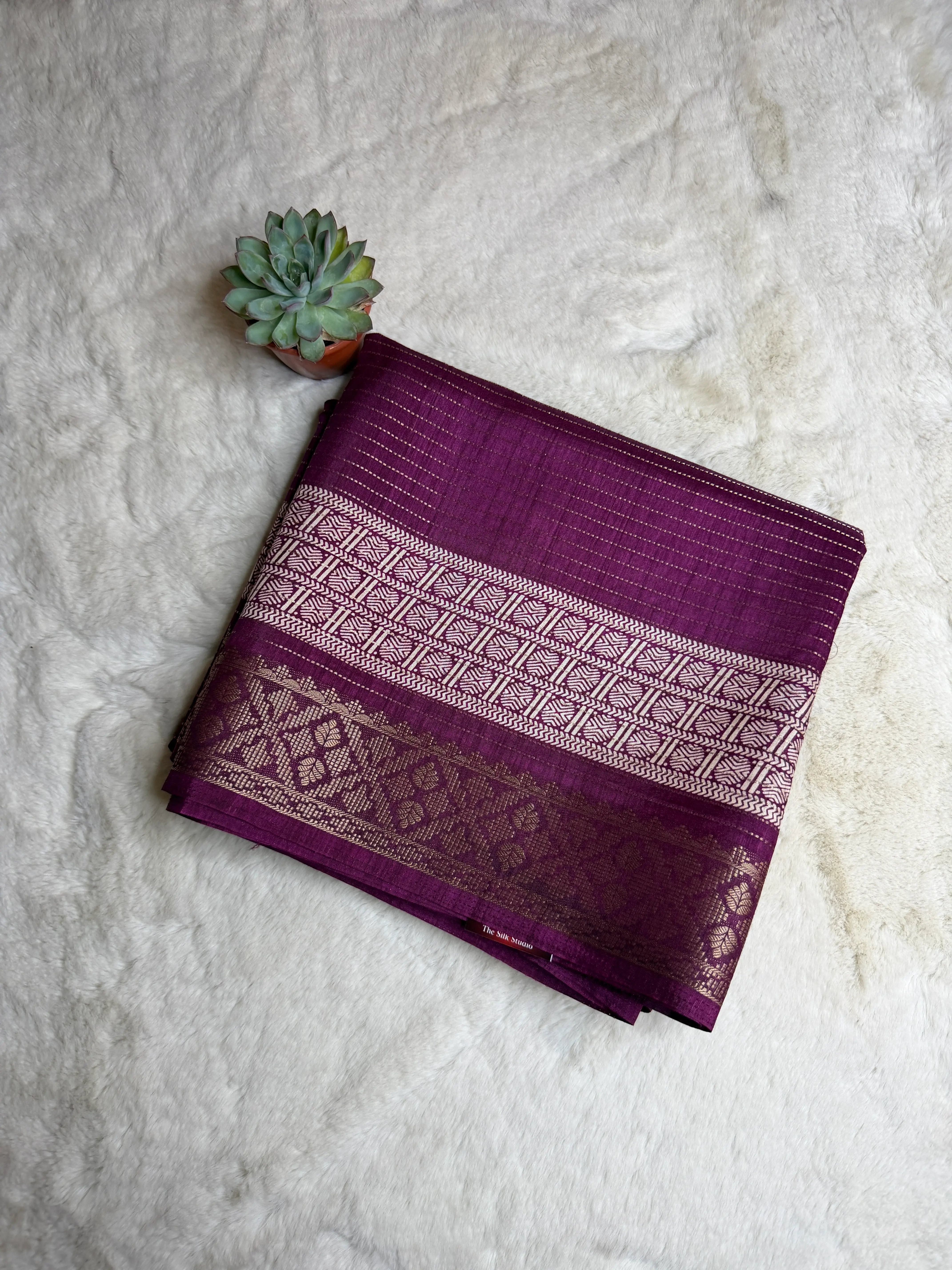 Maroon double border with stripes fancy saree