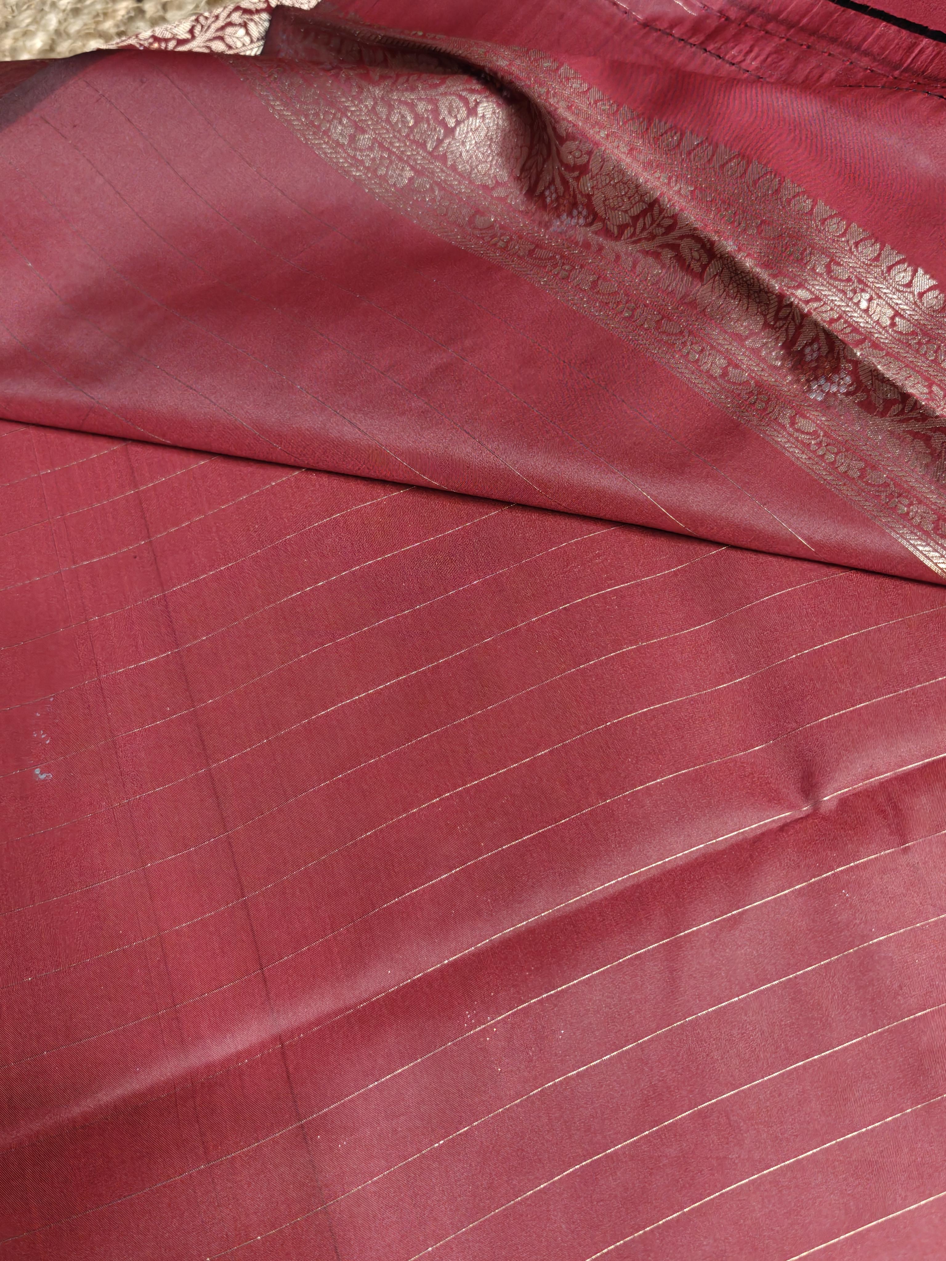 Maroon jaal work with rich border and pallu benaras saree