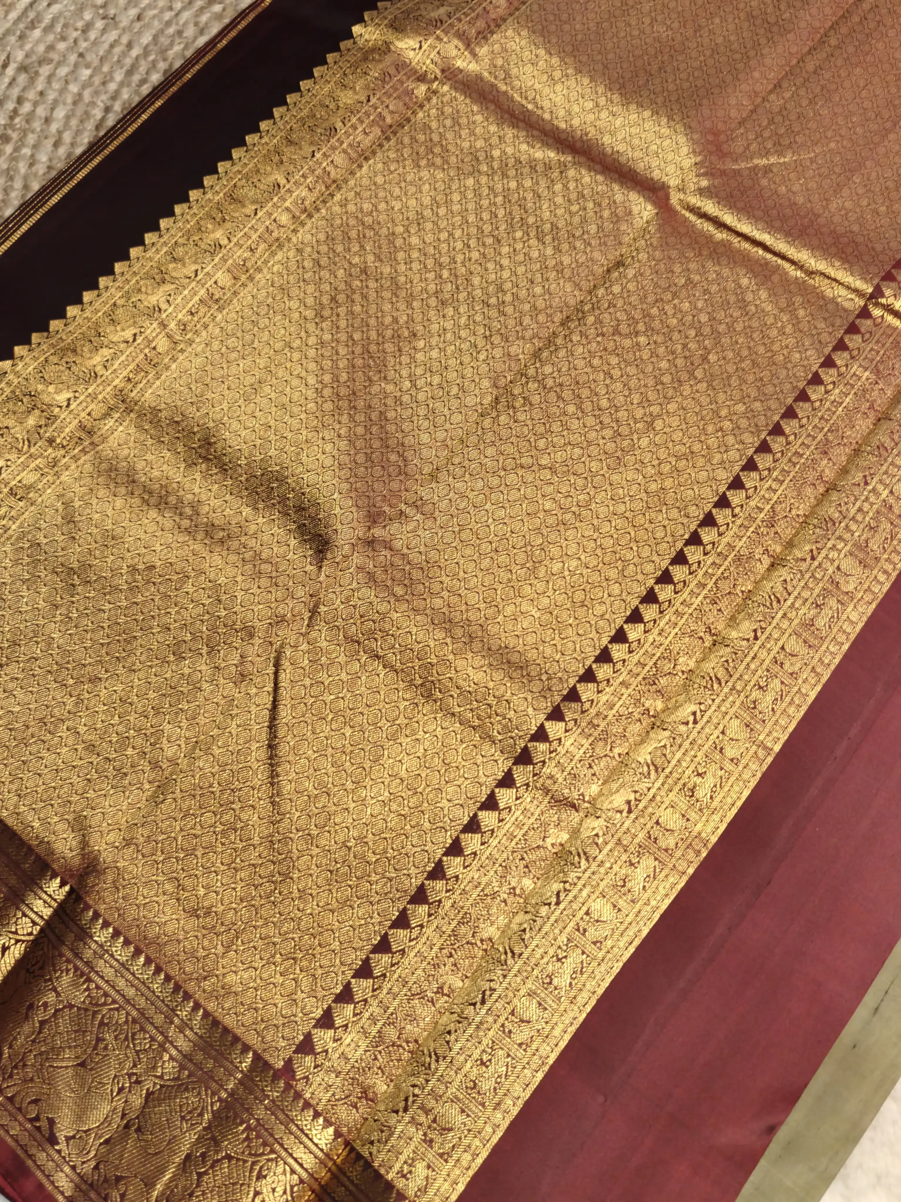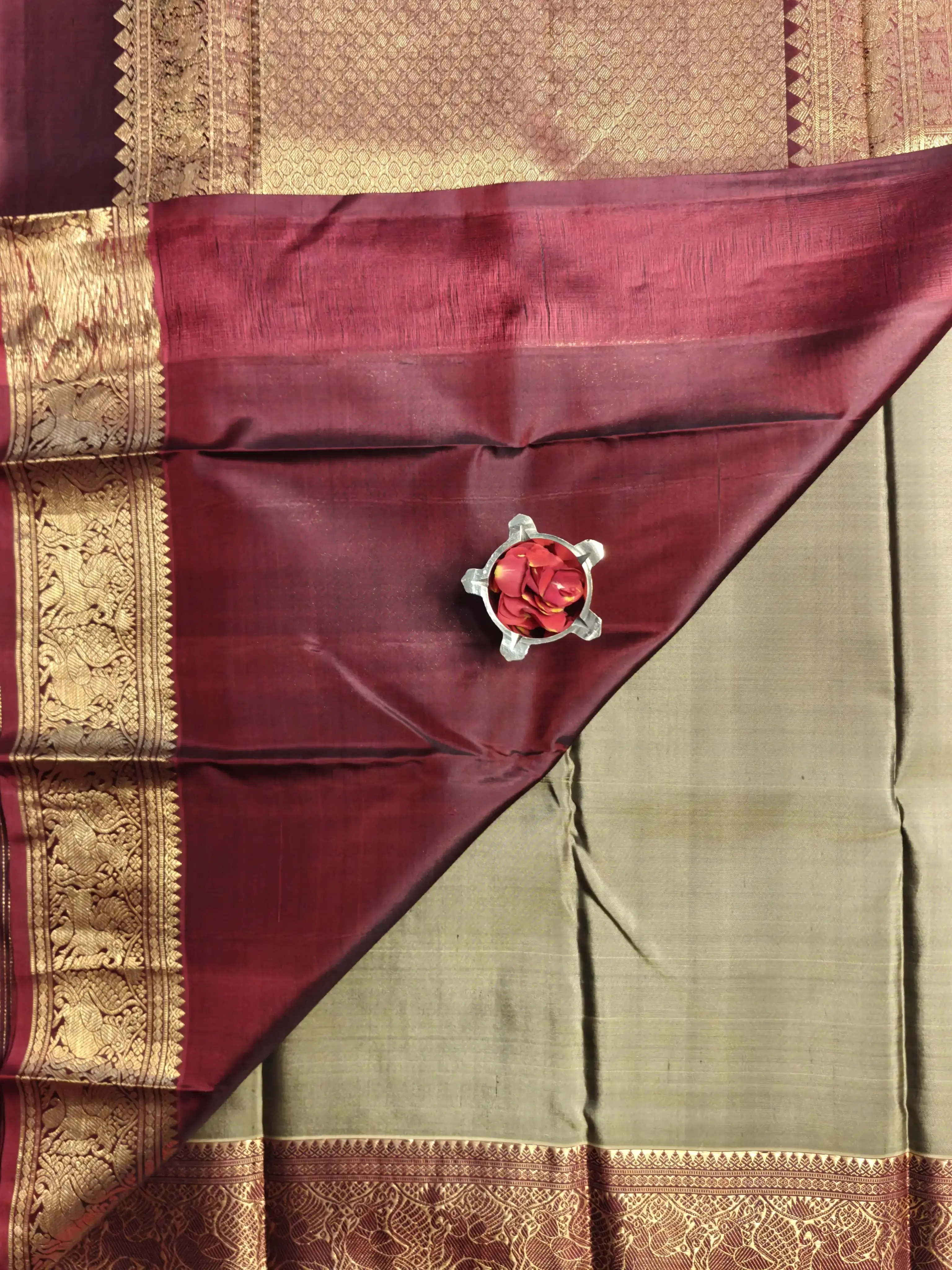 This exquisite mehendi green silk saree is beautifully framed with a deep maroon border, adding rich contrast and timeless appeal. The look is elevated by a luxurious maroon pallu that showcases intricate craftsmanship and festive grandeur. Perfect for weddings, special ceremonies, and cultural celebrations, this saree is a stunning expression of heritage woven in vibrant hues 💚❤️