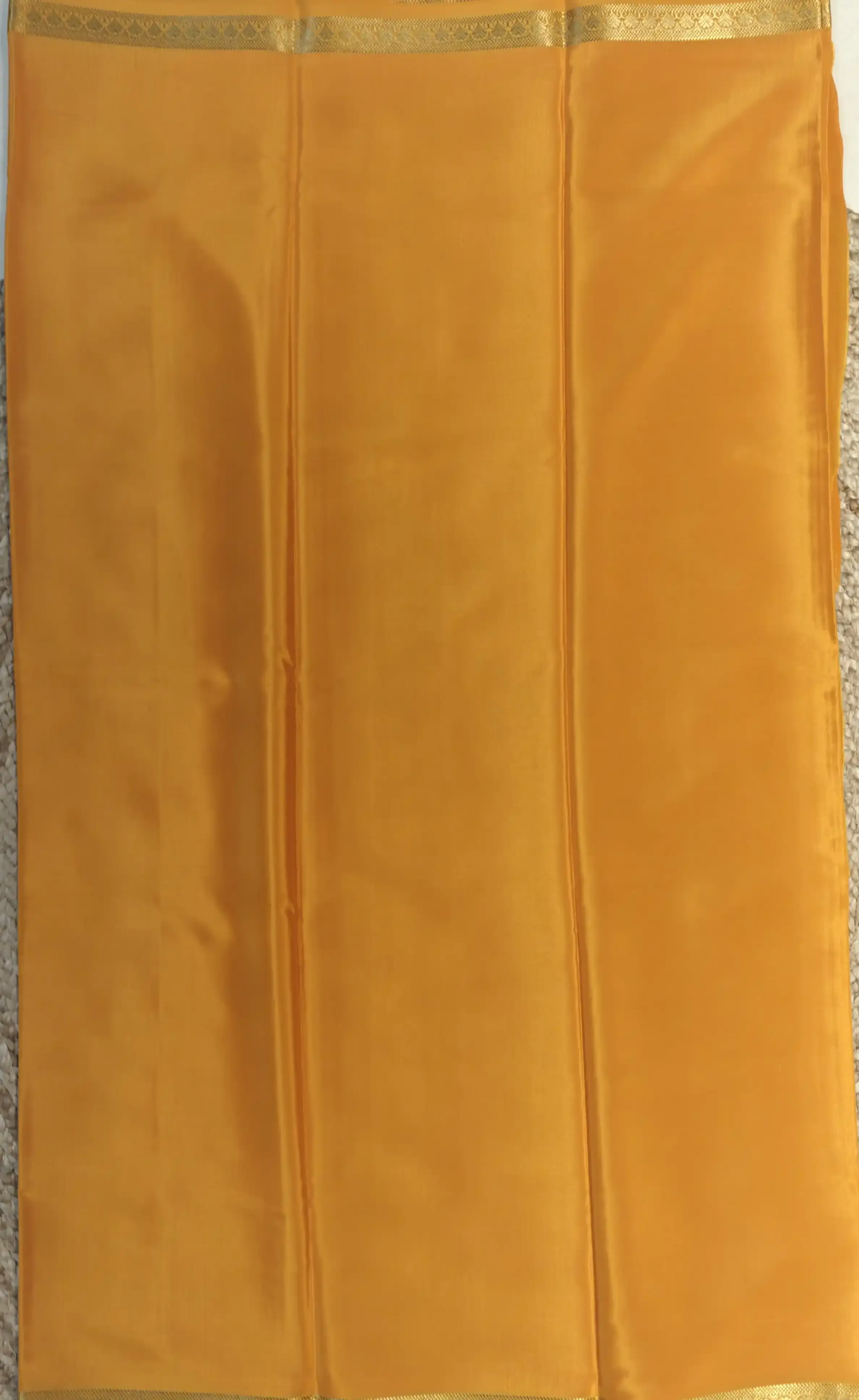 Mustard yellow plain Pure Mysore crepe silk saree 120gsm