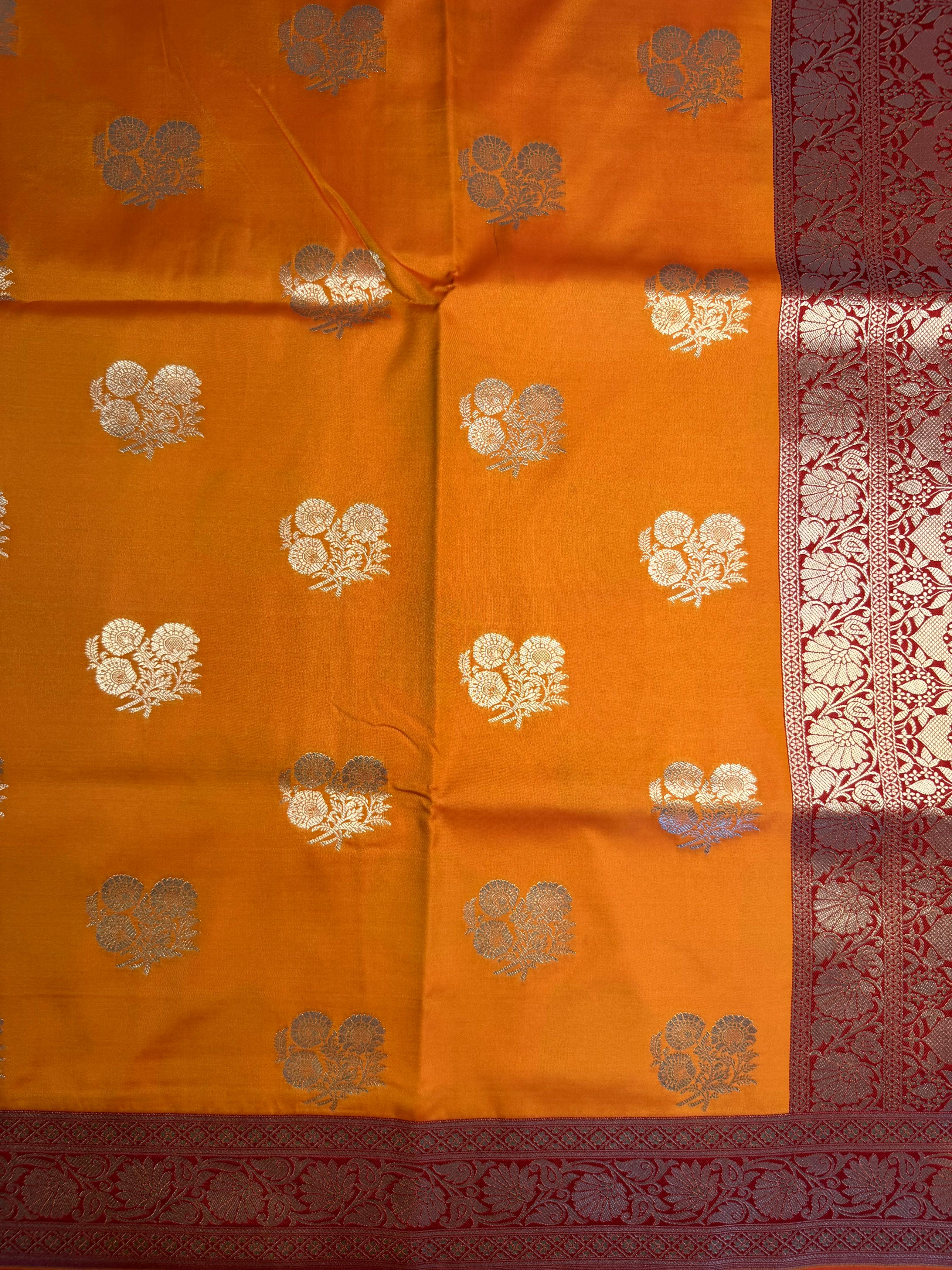 Orange & Red with buttas benaras saree