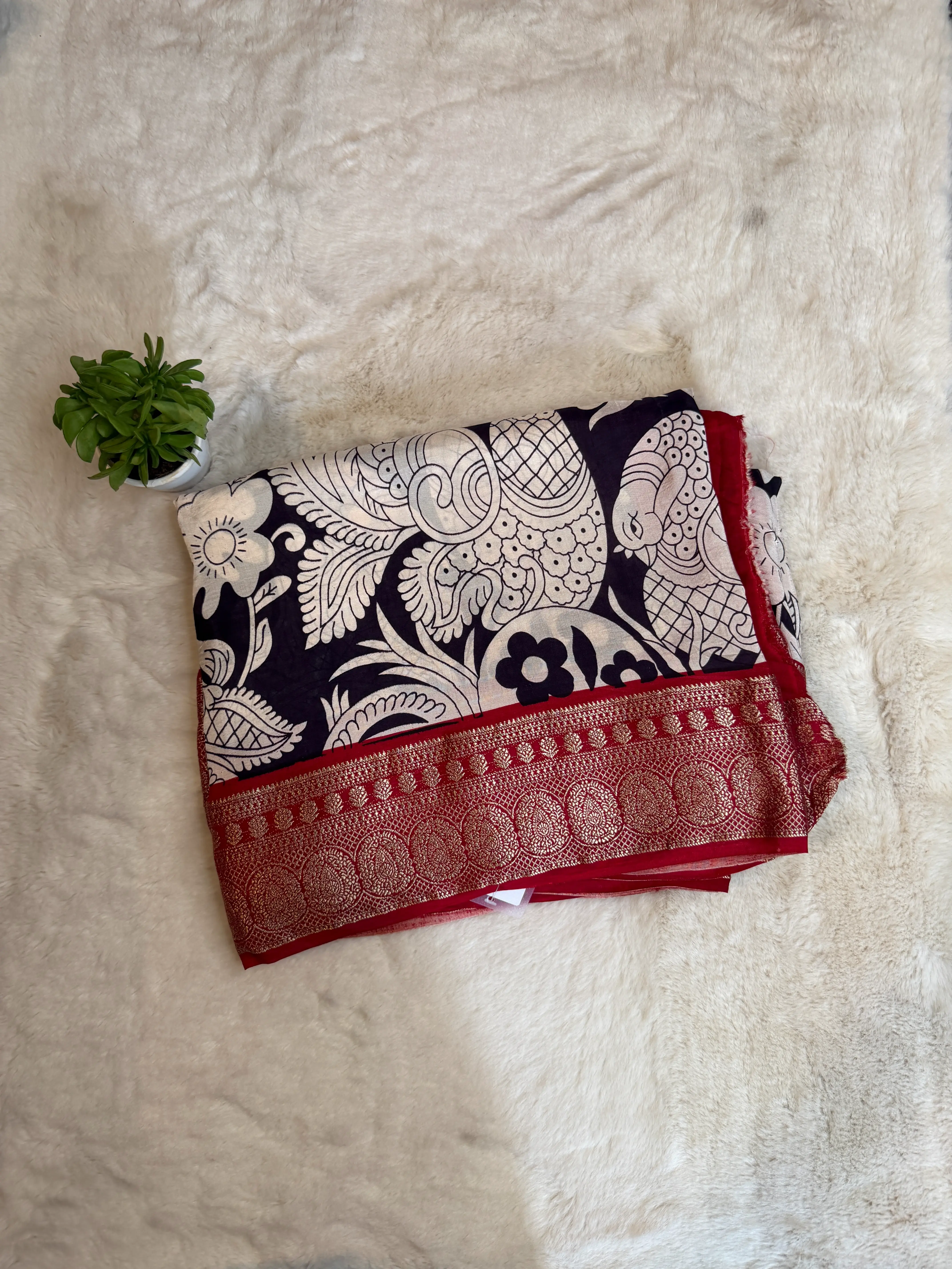 Step into timeless sophistication with this stunning Black & White Soft Dola Silk Saree, adorned with graceful peacock motifs and a striking grand border that exudes richness and charm. The smooth, luxurious texture of dola silk adds a beautiful flow, making every drape look effortlessly regal. ✨