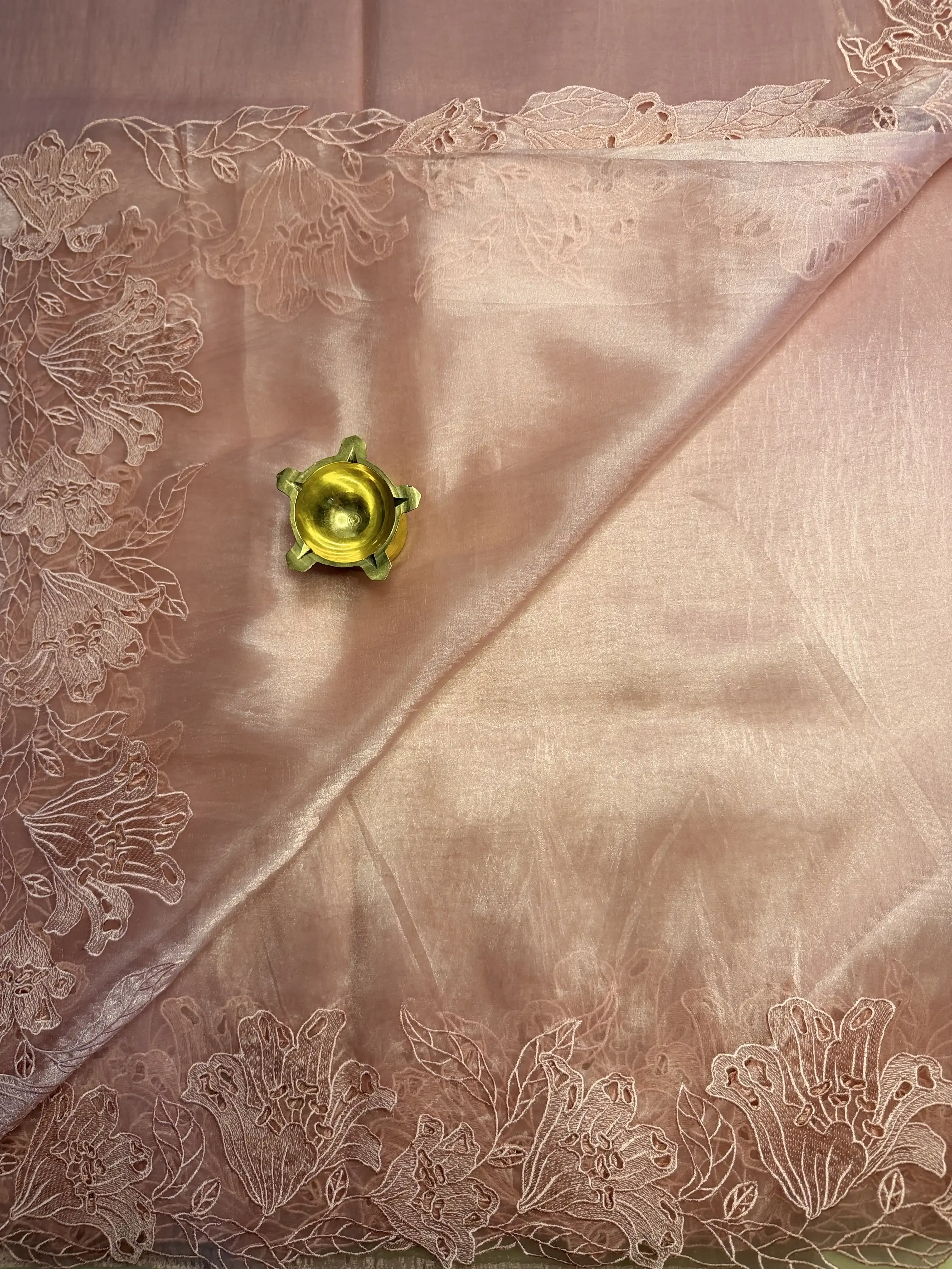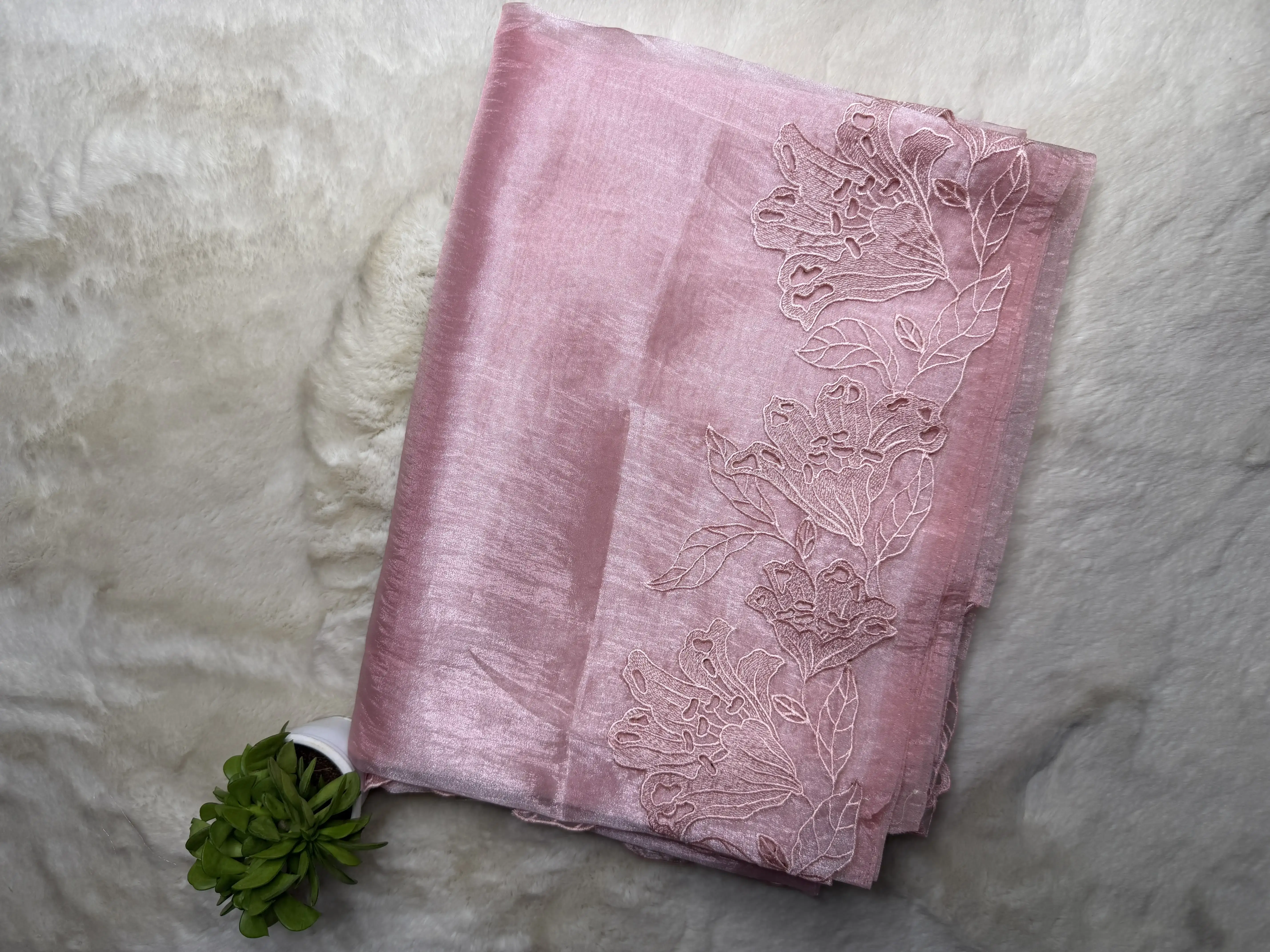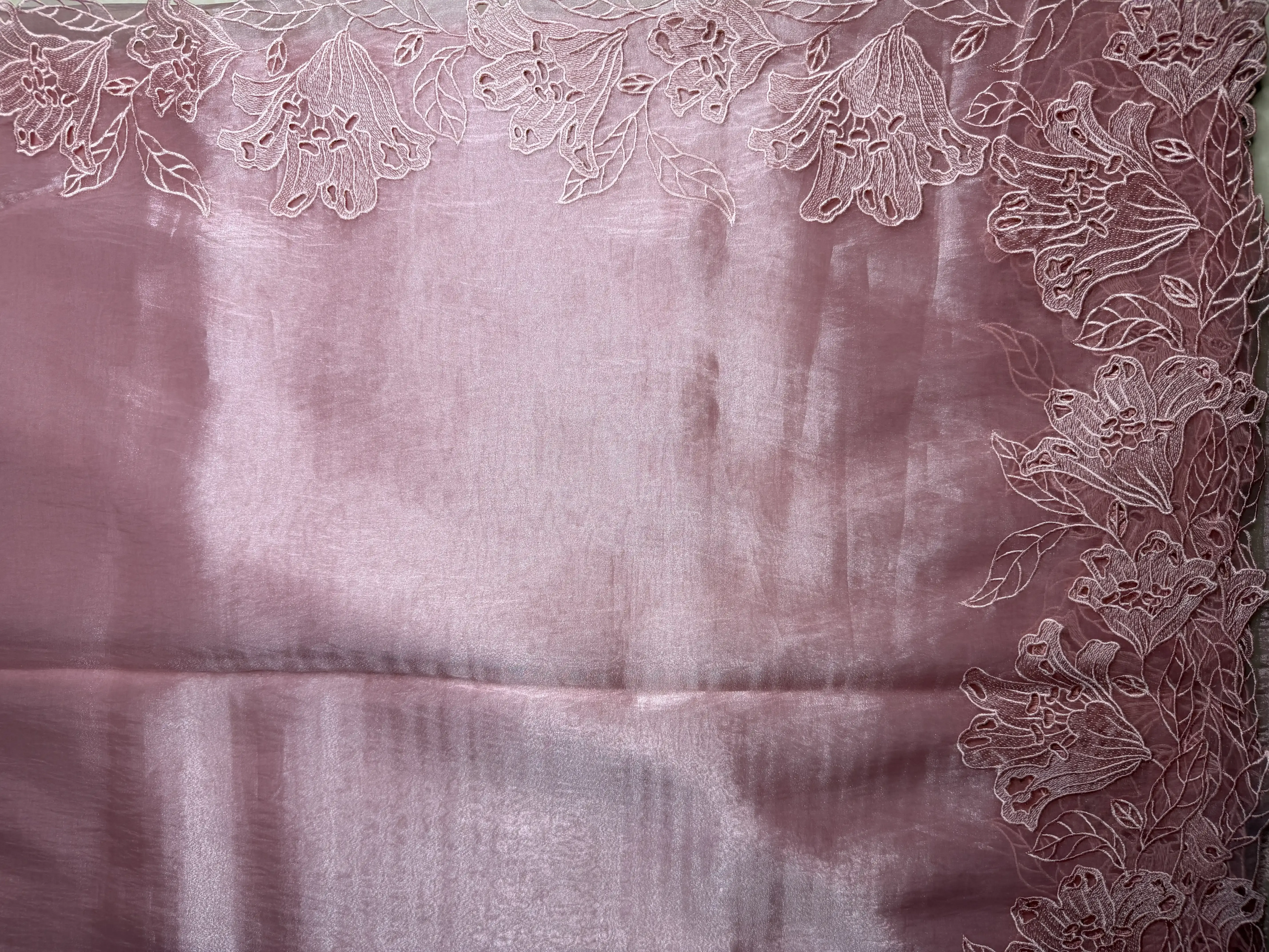 This Pink Cut Work Soft Organza Saree showcases a graceful pink hue enhanced with intricate cut work detailing, adding a refined and feminine touch. The soft organza fabric offers a light, airy drape that feels both elegant and comfortable.