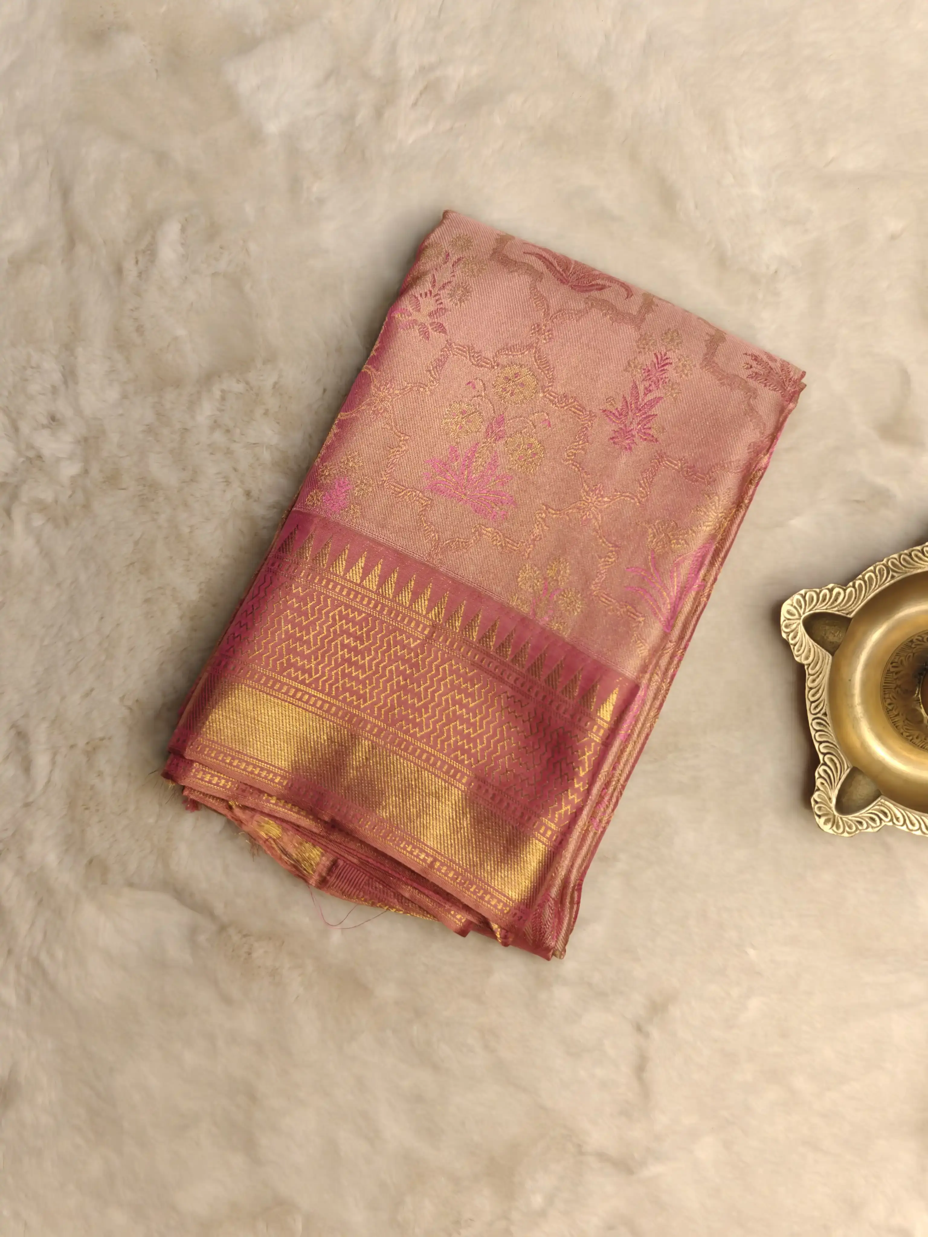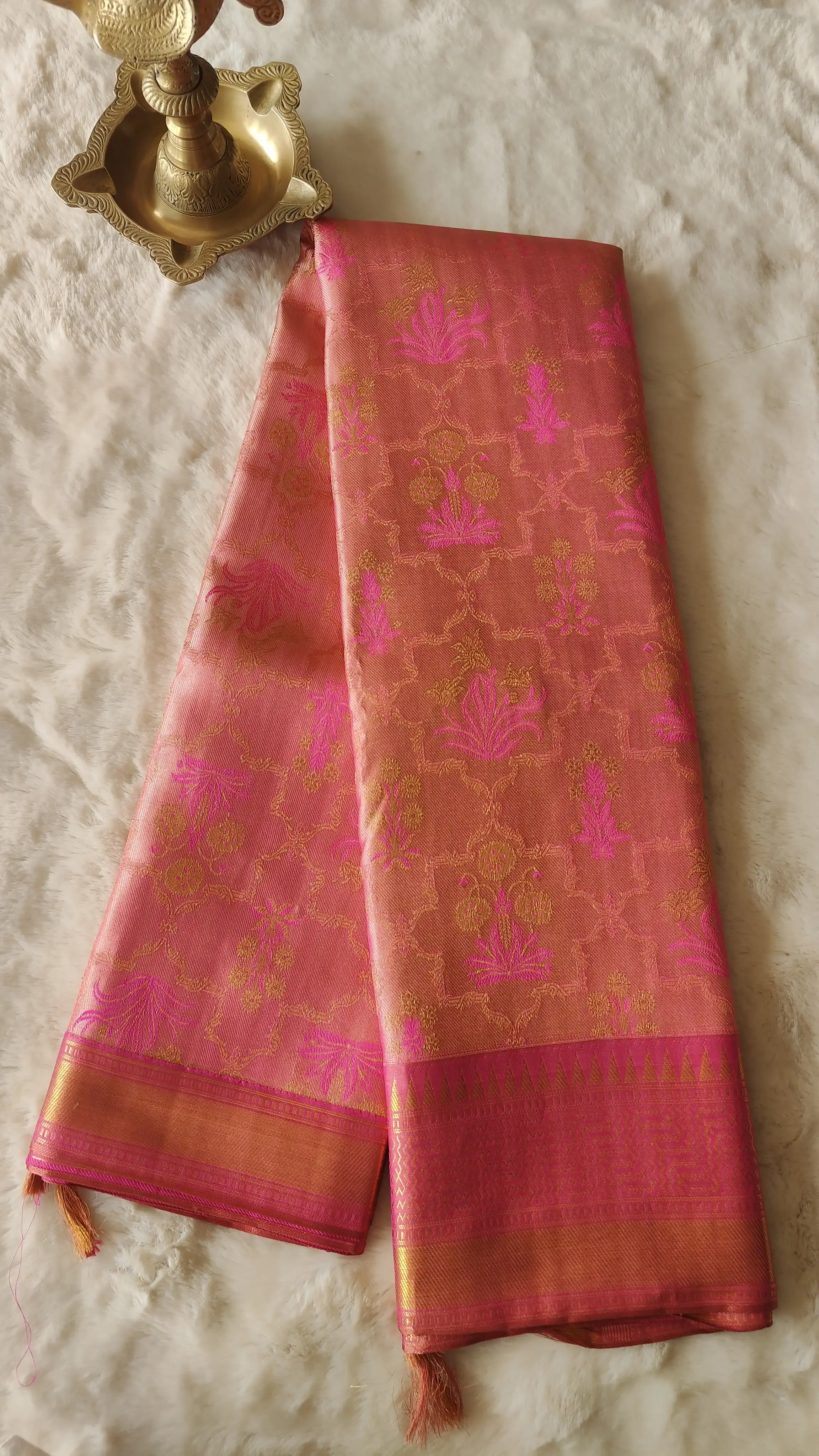 Pink self Floral pattern Pure Kanchipuram silk saree
