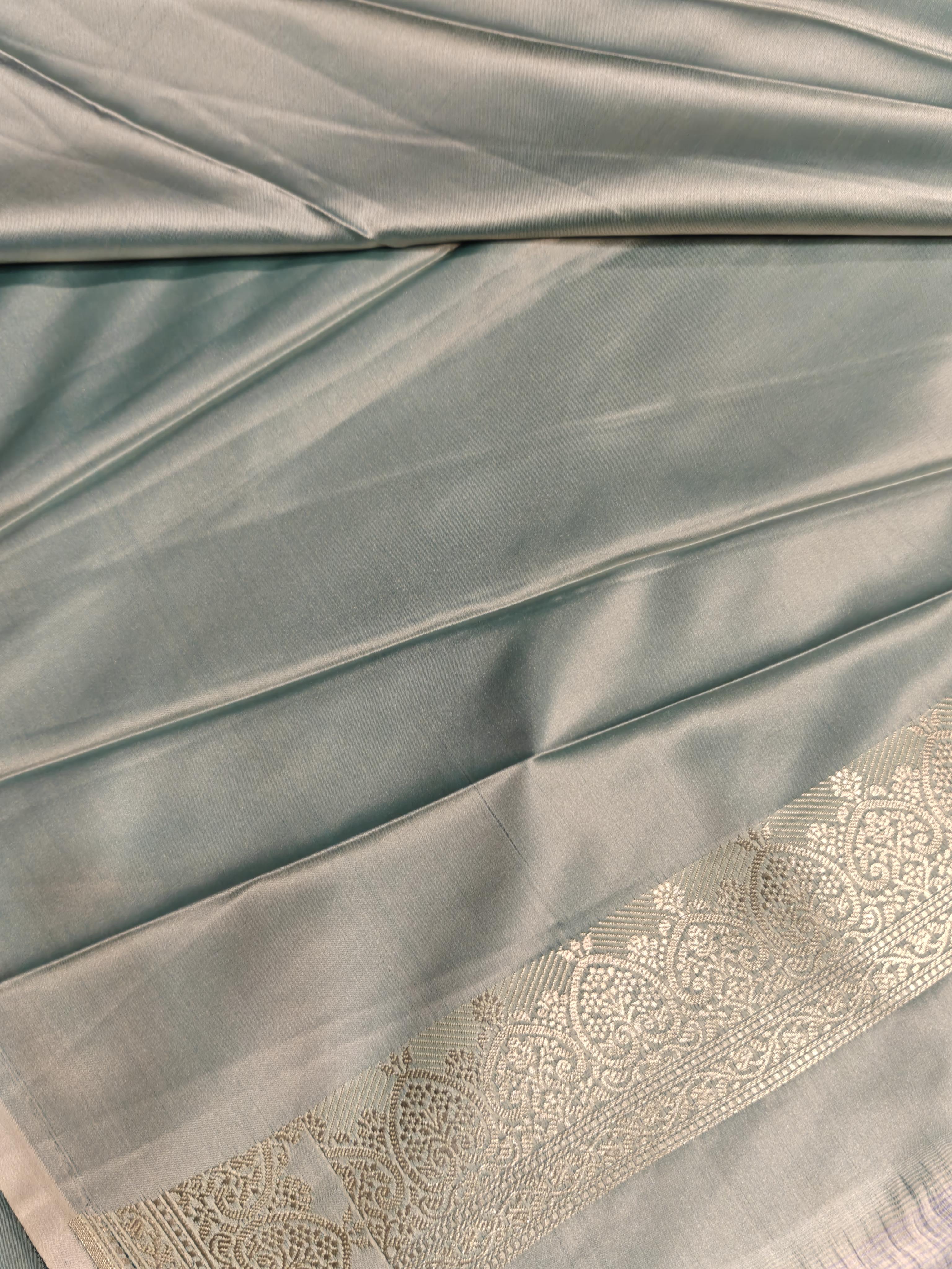 This exquisite powder blue Banarasi silk saree is adorned with delicate buttas woven all over the body, lending a soft, graceful charm. The saree is beautifully enhanced with a richly crafted border and an opulent pallu, adding depth, grandeur, and festive allure. Perfect for weddings, celebrations, and heirloom collections, this saree embodies timeless Banaras craftsmanship with a refreshing pastel sophistication 💙✨👑