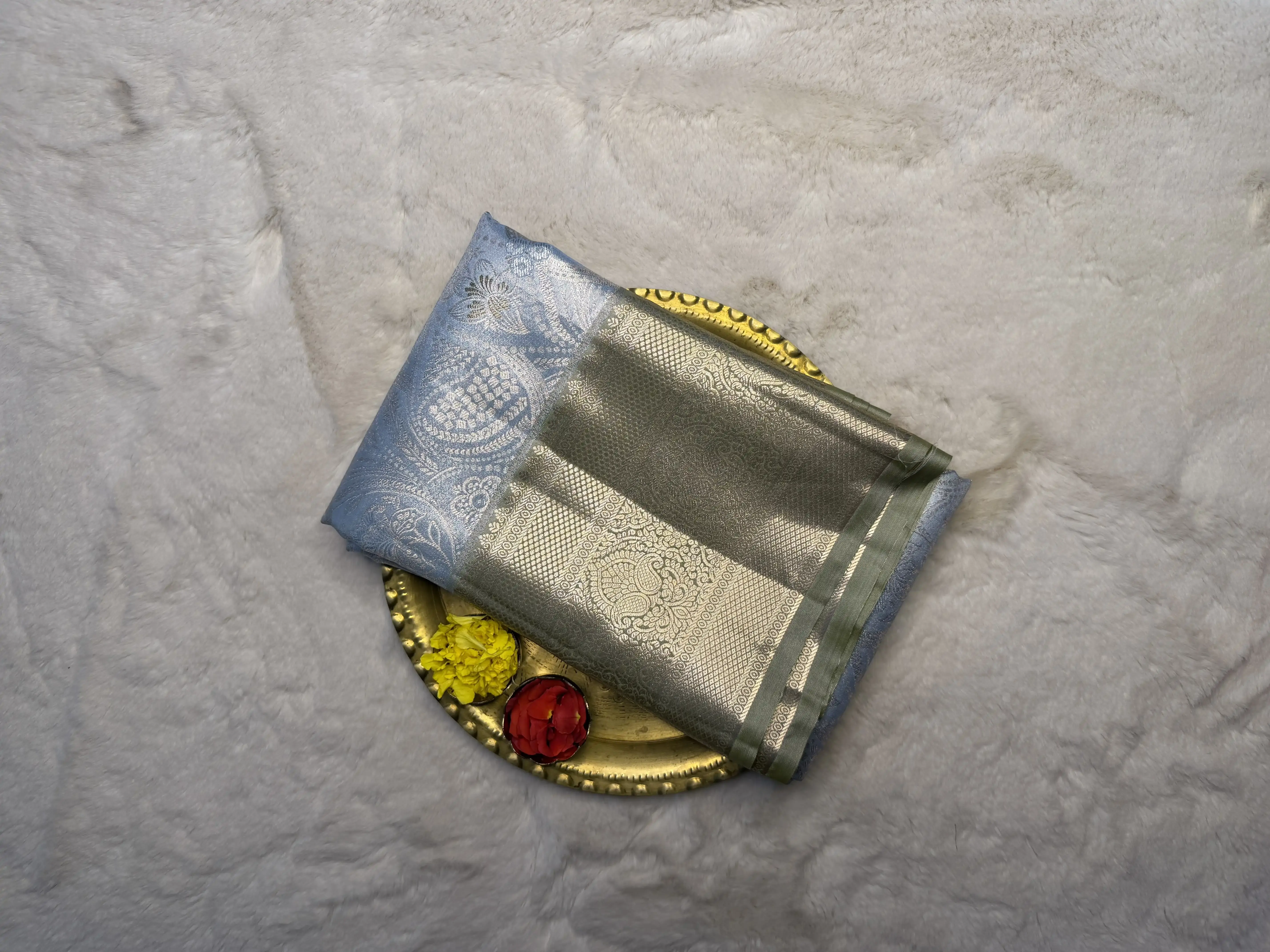 Powder Blue & Olive Green tissue Semi Silk Saree
