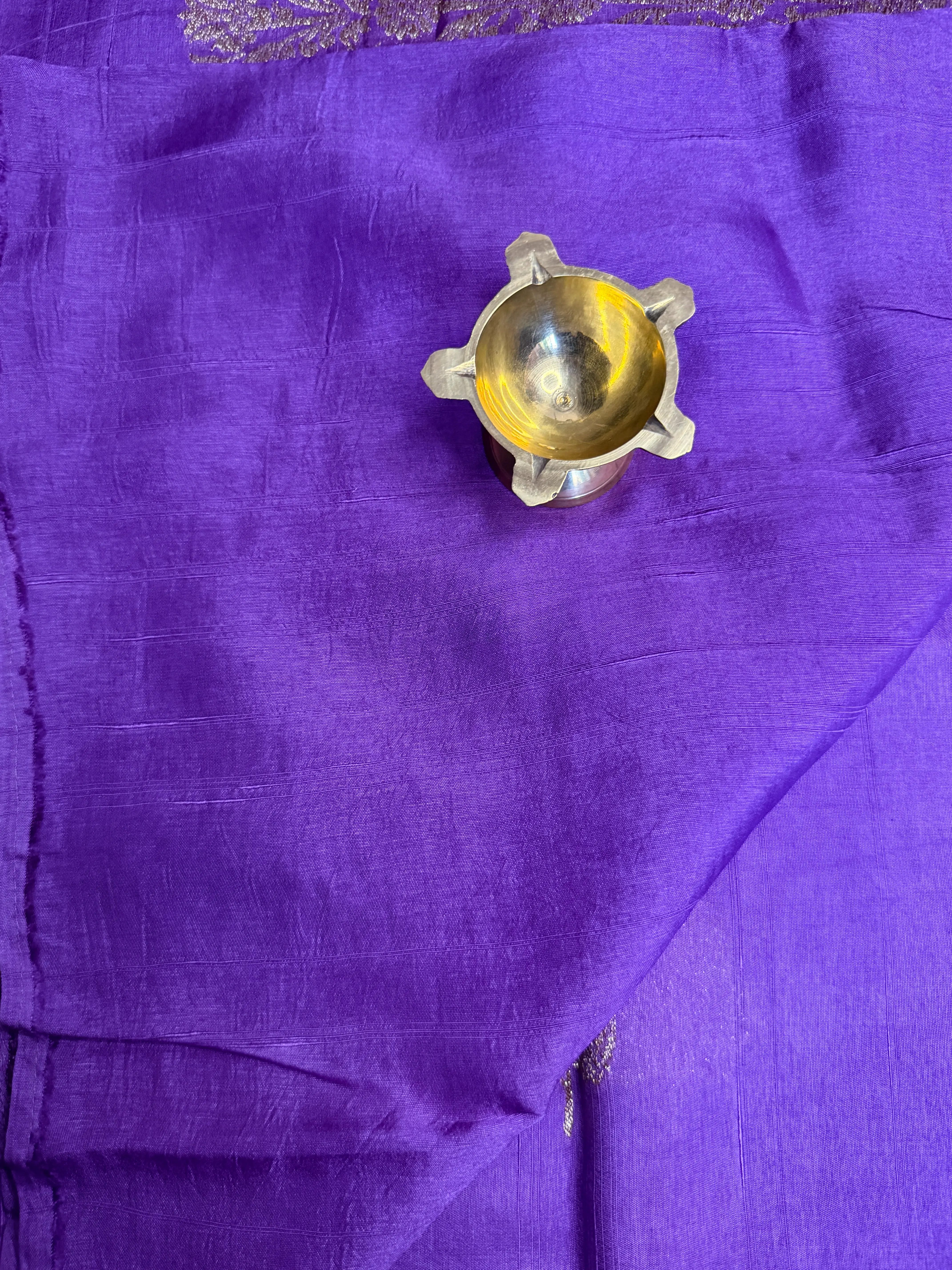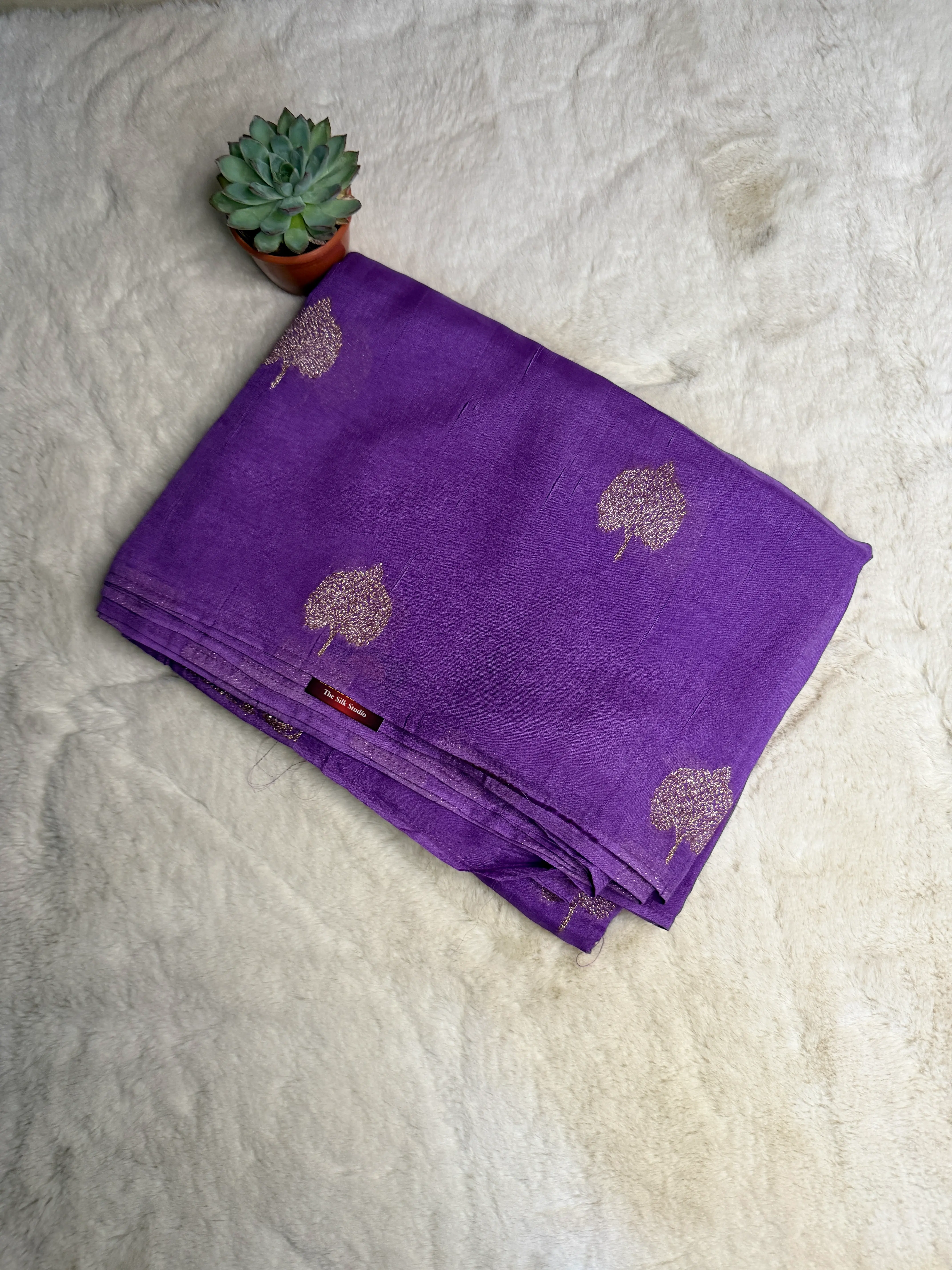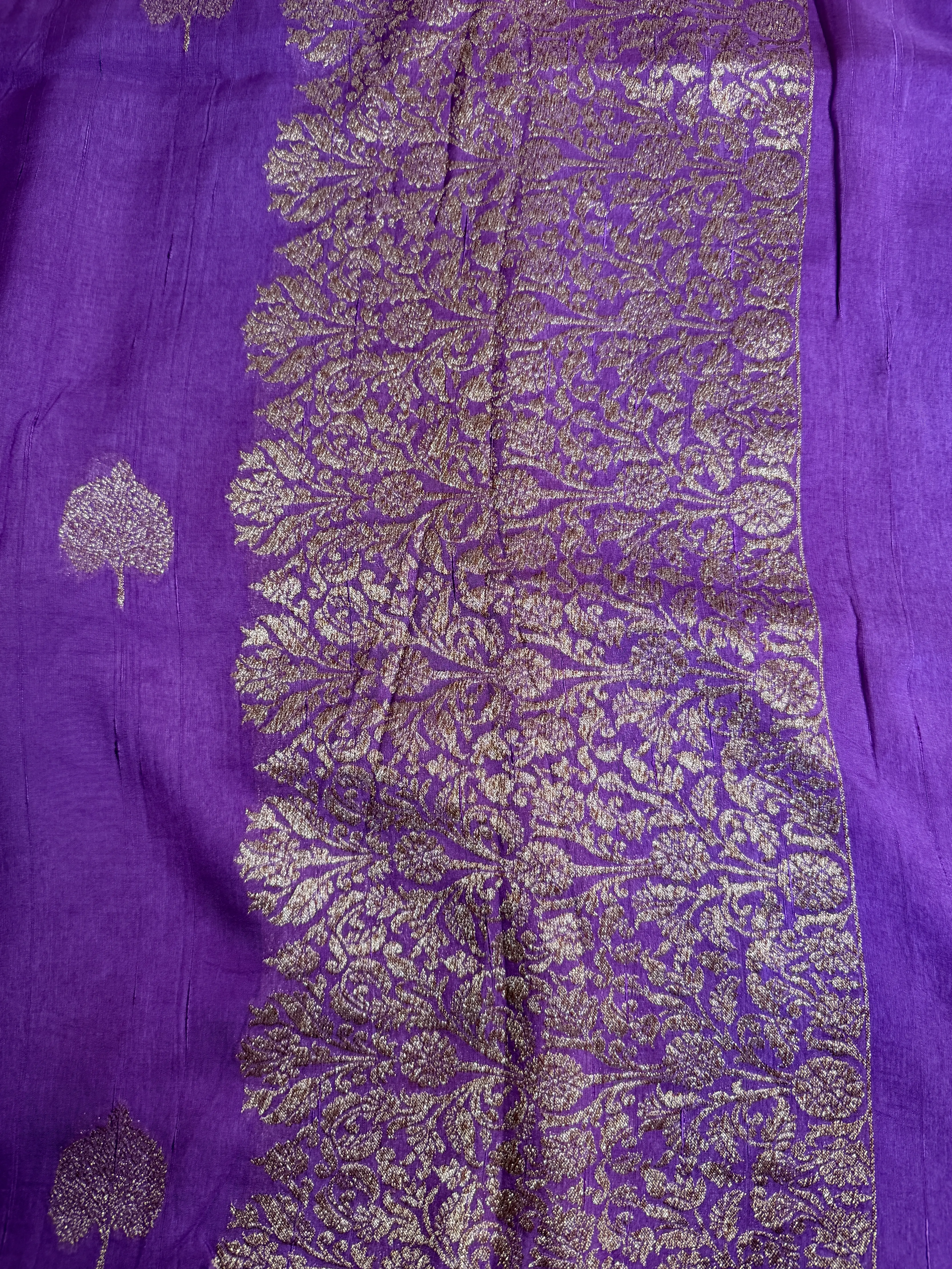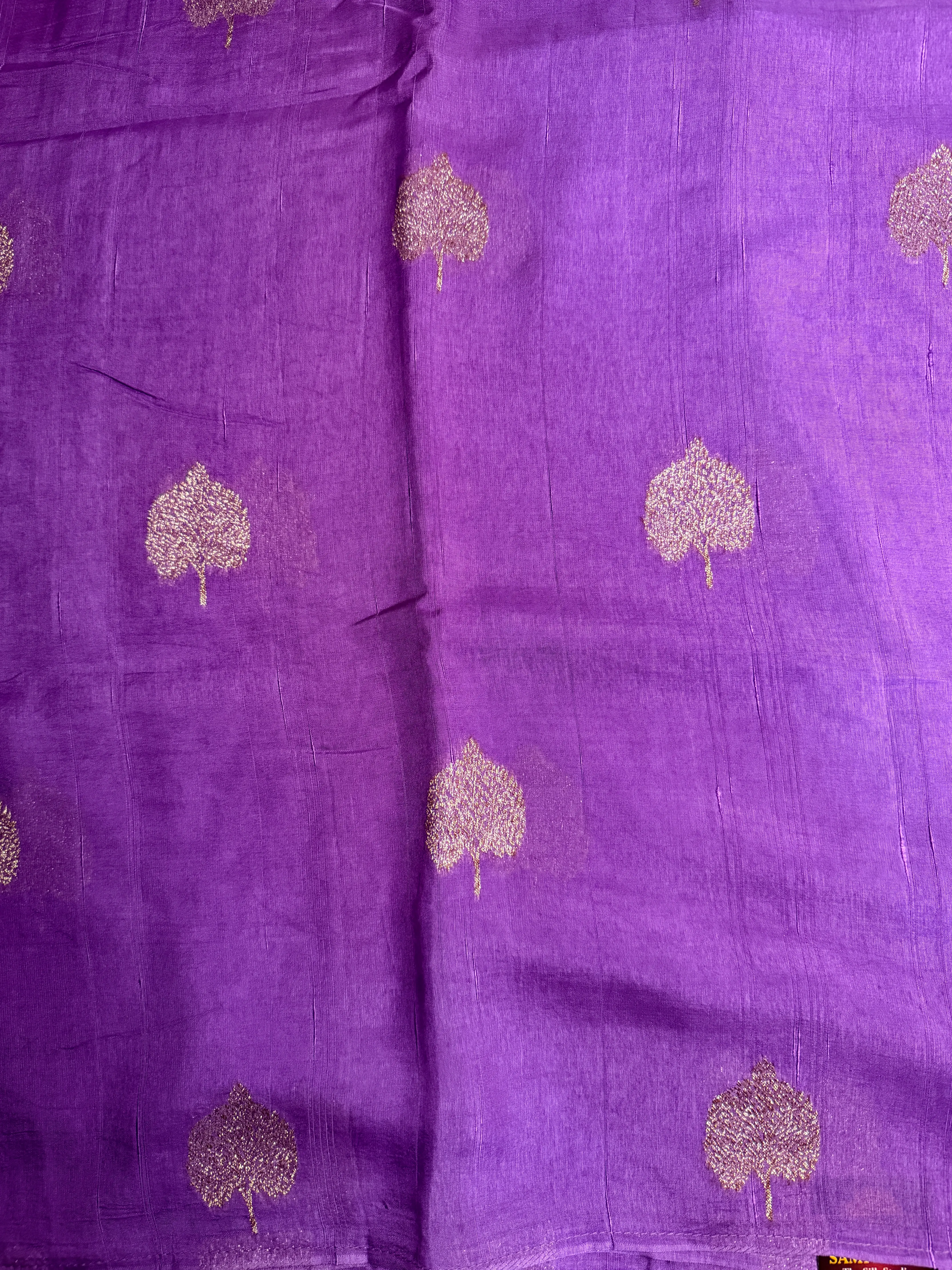 Purple Antique zari leaf motif chiniya silk saree