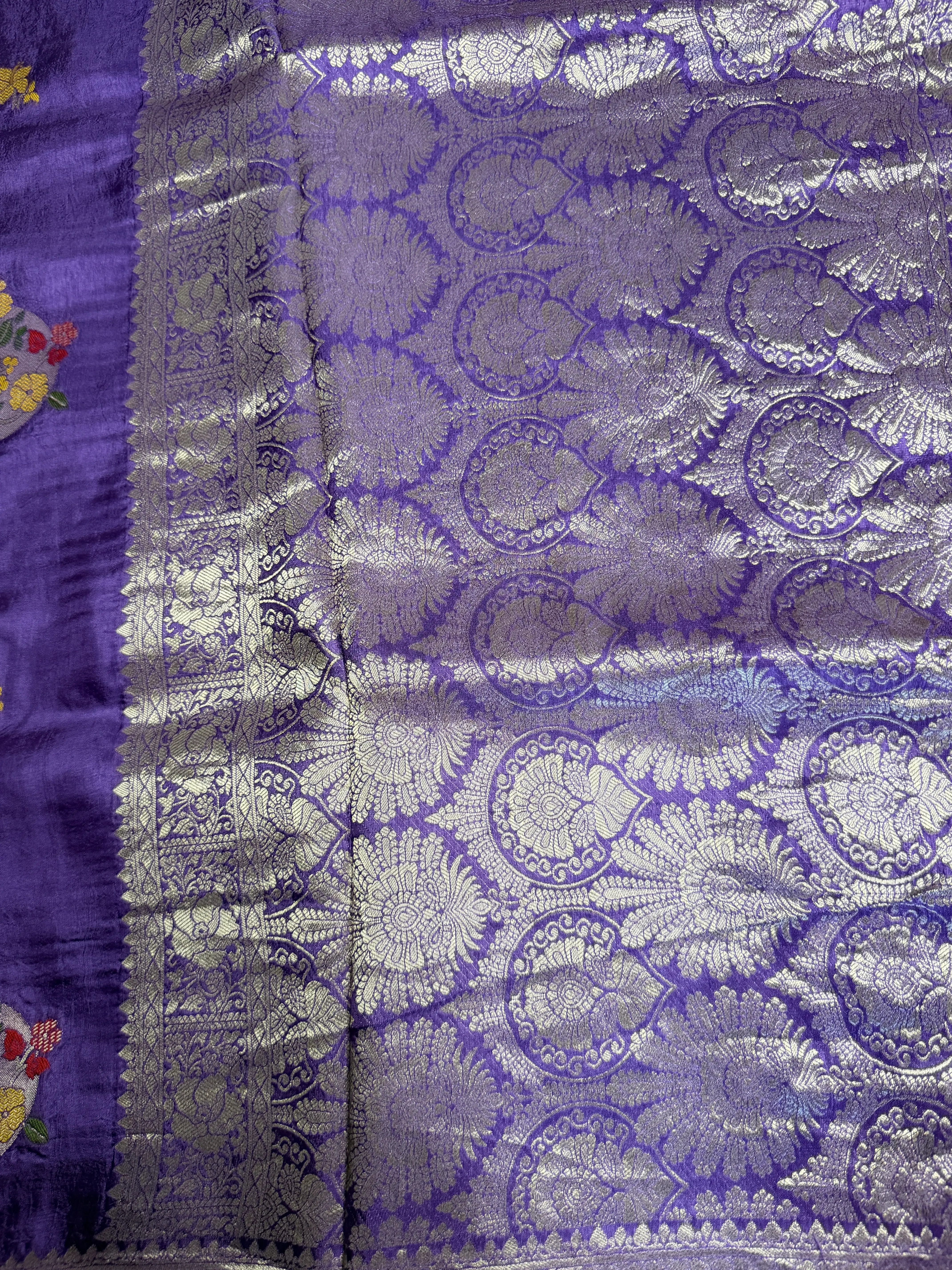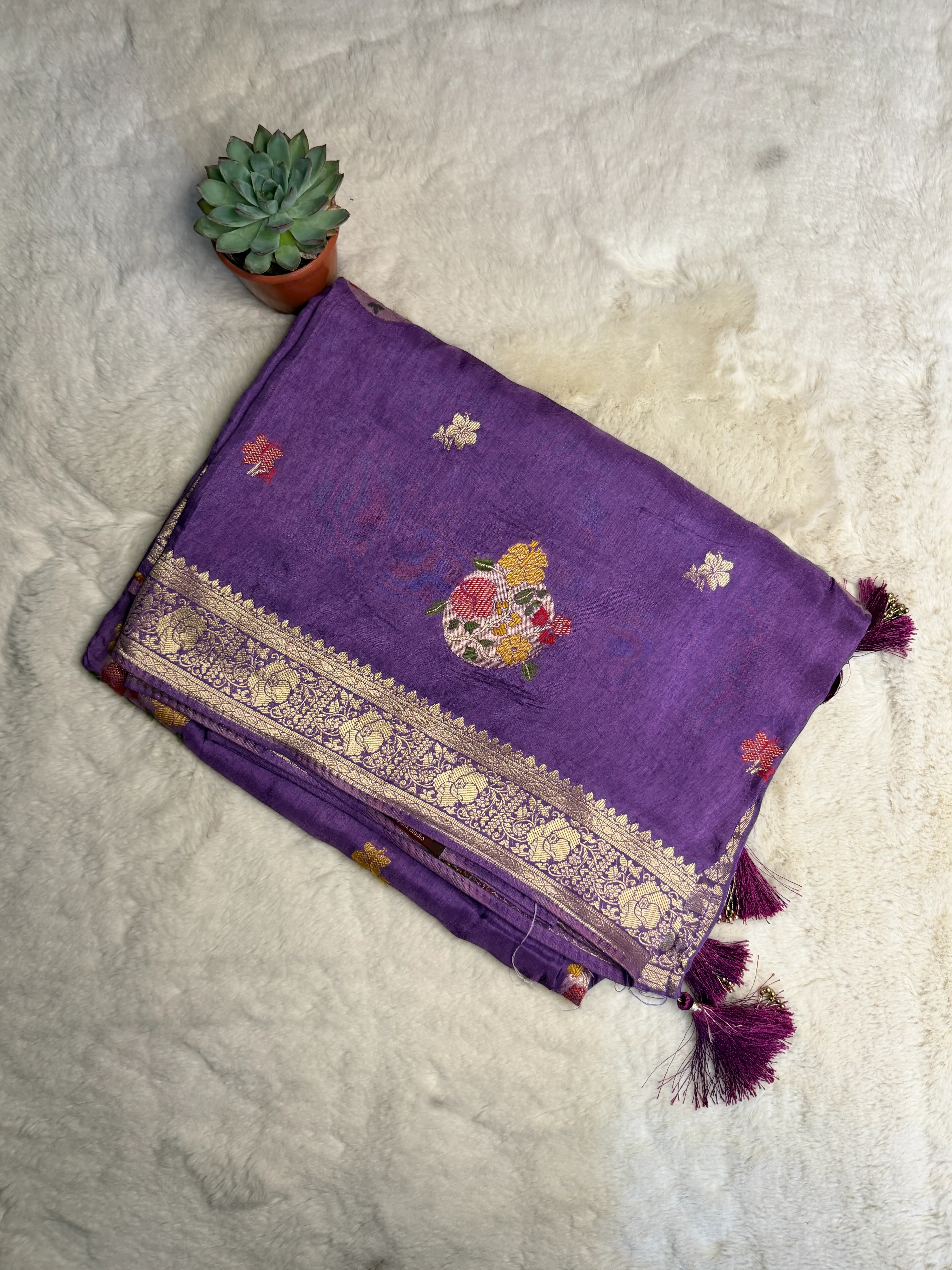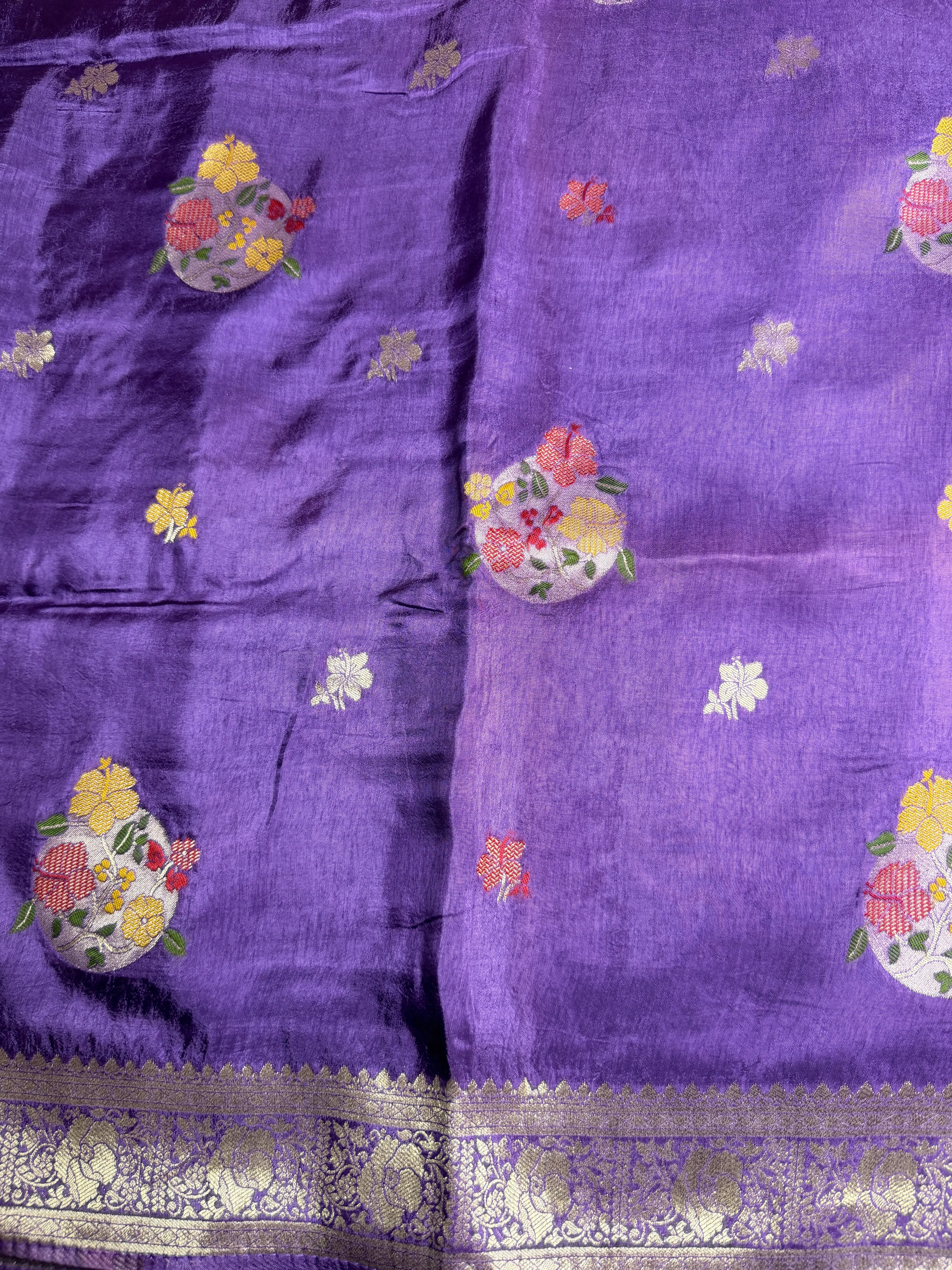 Purple Meenakari work Dola Silk saree