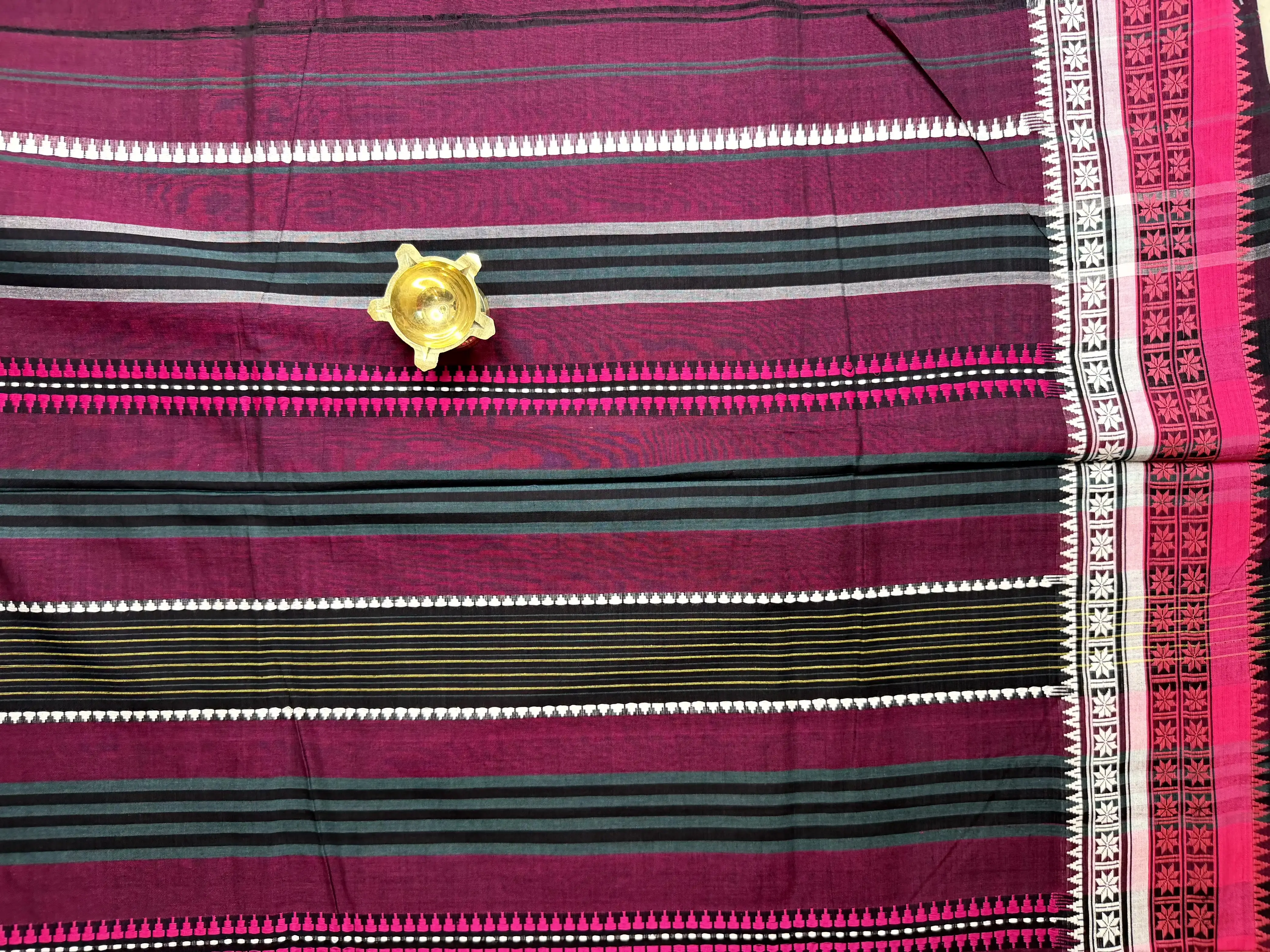 Purple with pink & white dhaniakali cotton saree