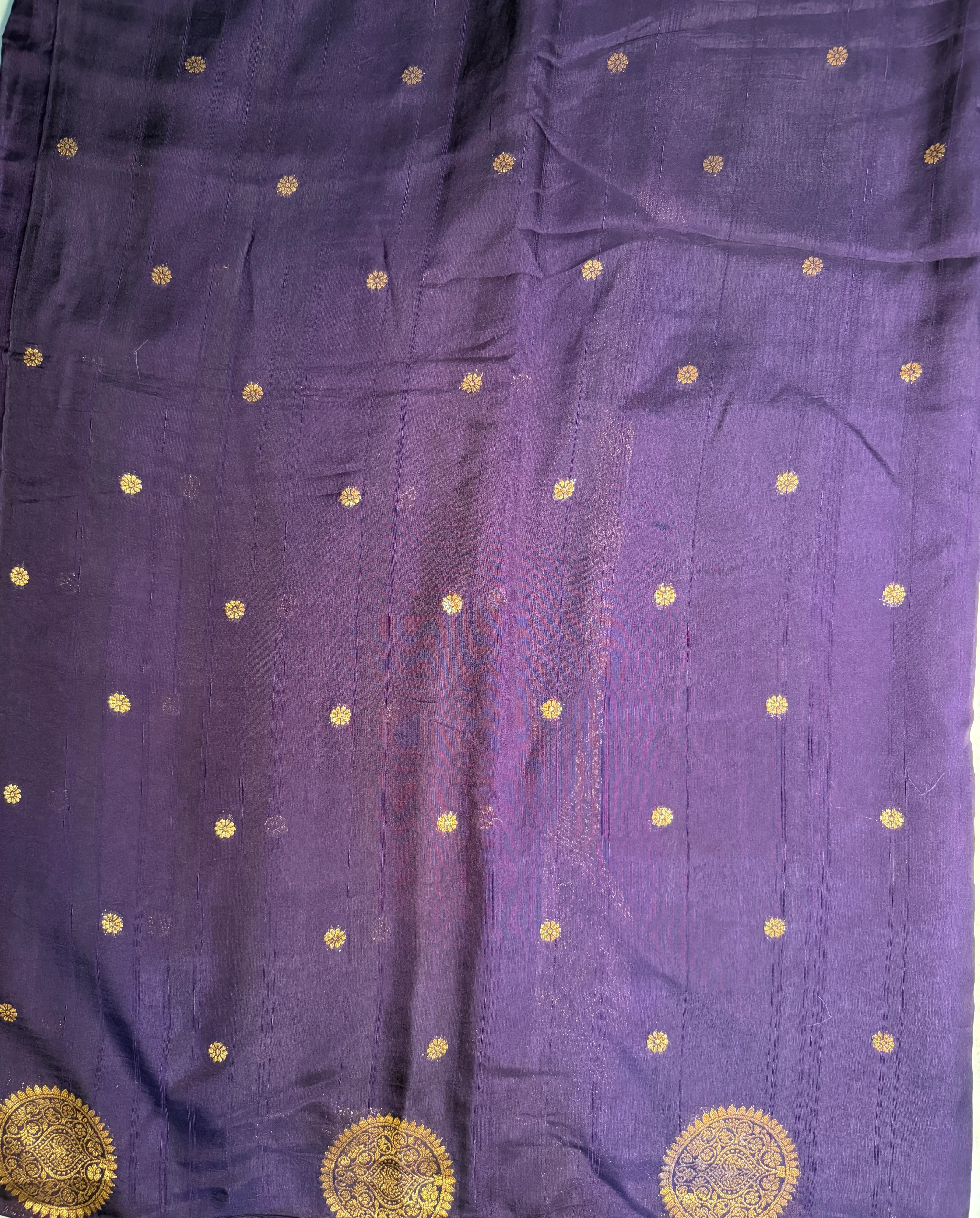 This Purple Semi Crepe Saree with delicate buttas is where minimal design meets luxurious charm. The rich purple hue speaks of confidence, while the subtle buttas add just the right touch of shimmer—effortlessly graceful, endlessly sophisticated.