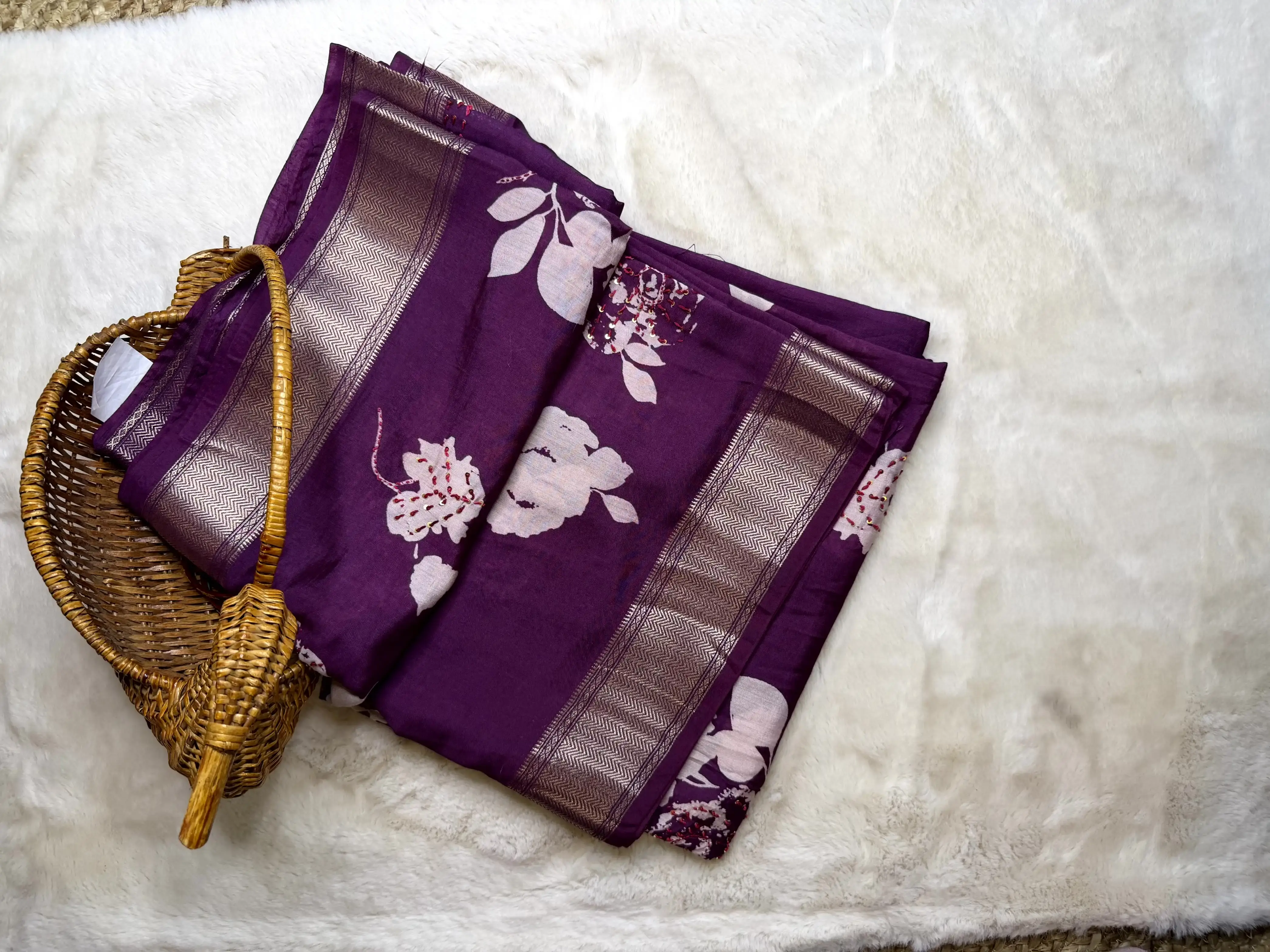 This purple linen cotton saree is beautifully enhanced with delicate thread work, adding refined texture and intricate detailing. Lightweight and breathable, it’s perfect for casual outings, cultural gatherings, and effortless ethnic style — a graceful choice for those who appreciate handcrafted beauty with understated charm 💜🧵