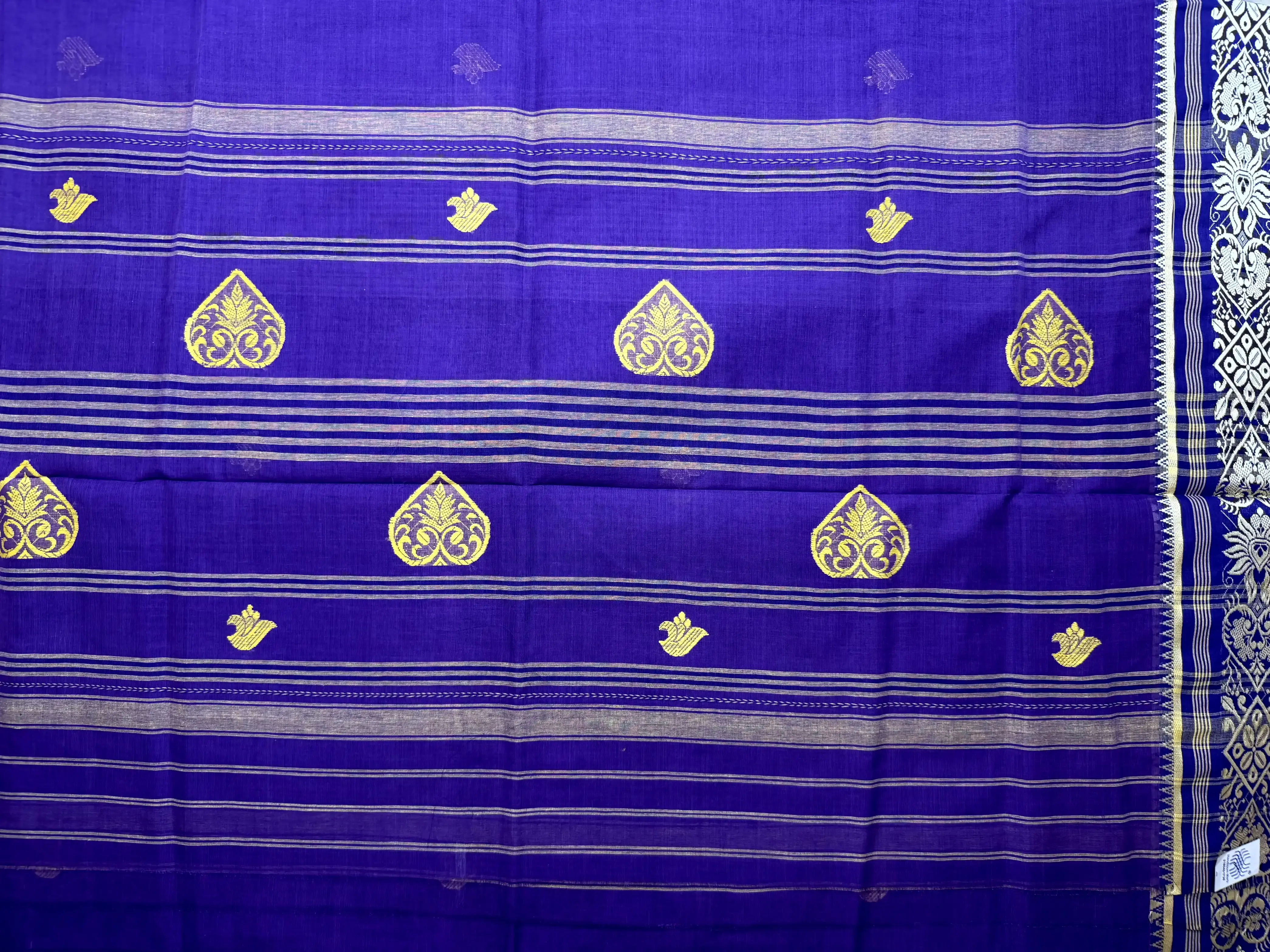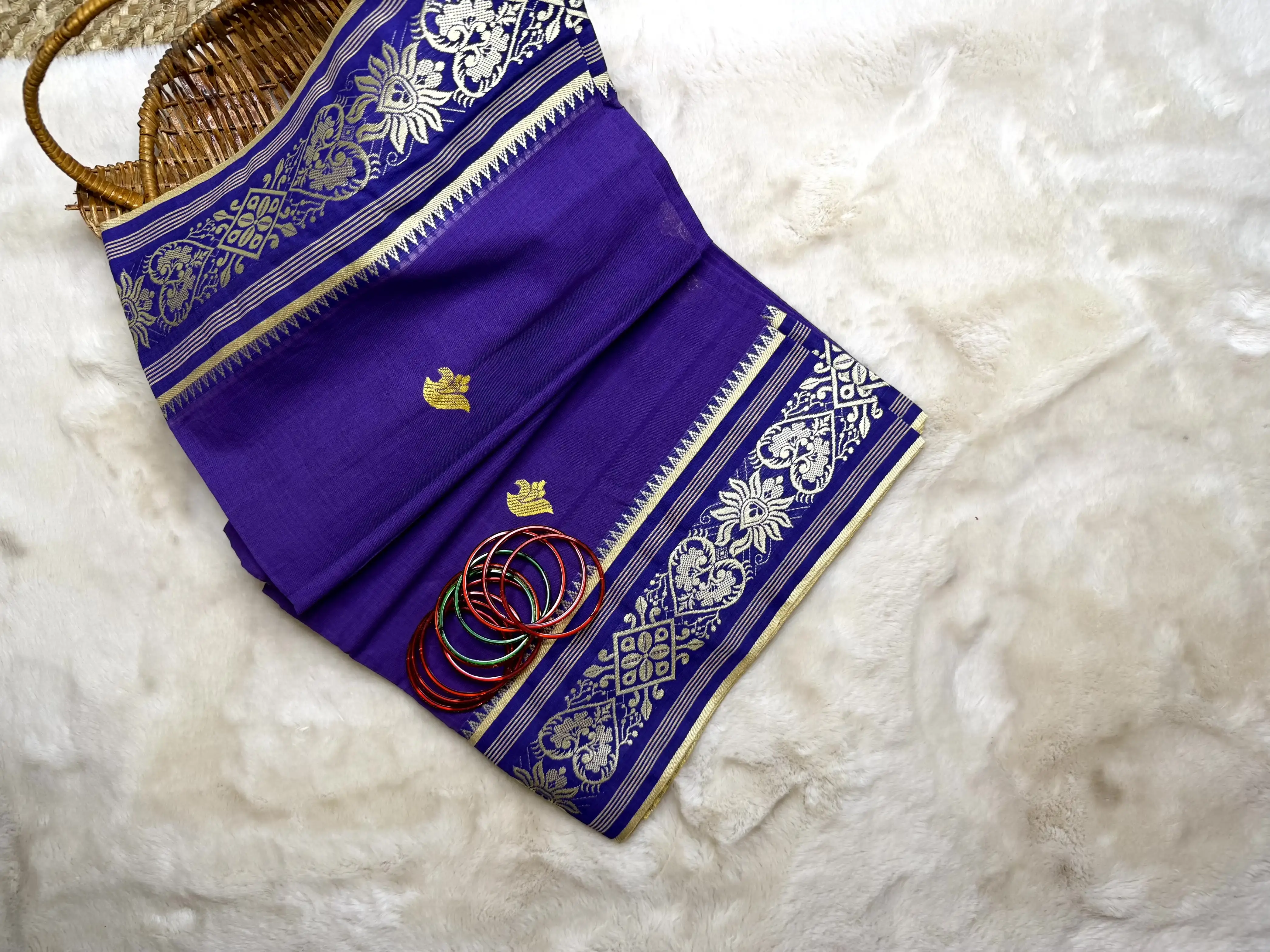 A timeless palette brought to life — this purple Dhaniakali cotton saree paired with a crisp white traditional border celebrates the charm of classic weaves.