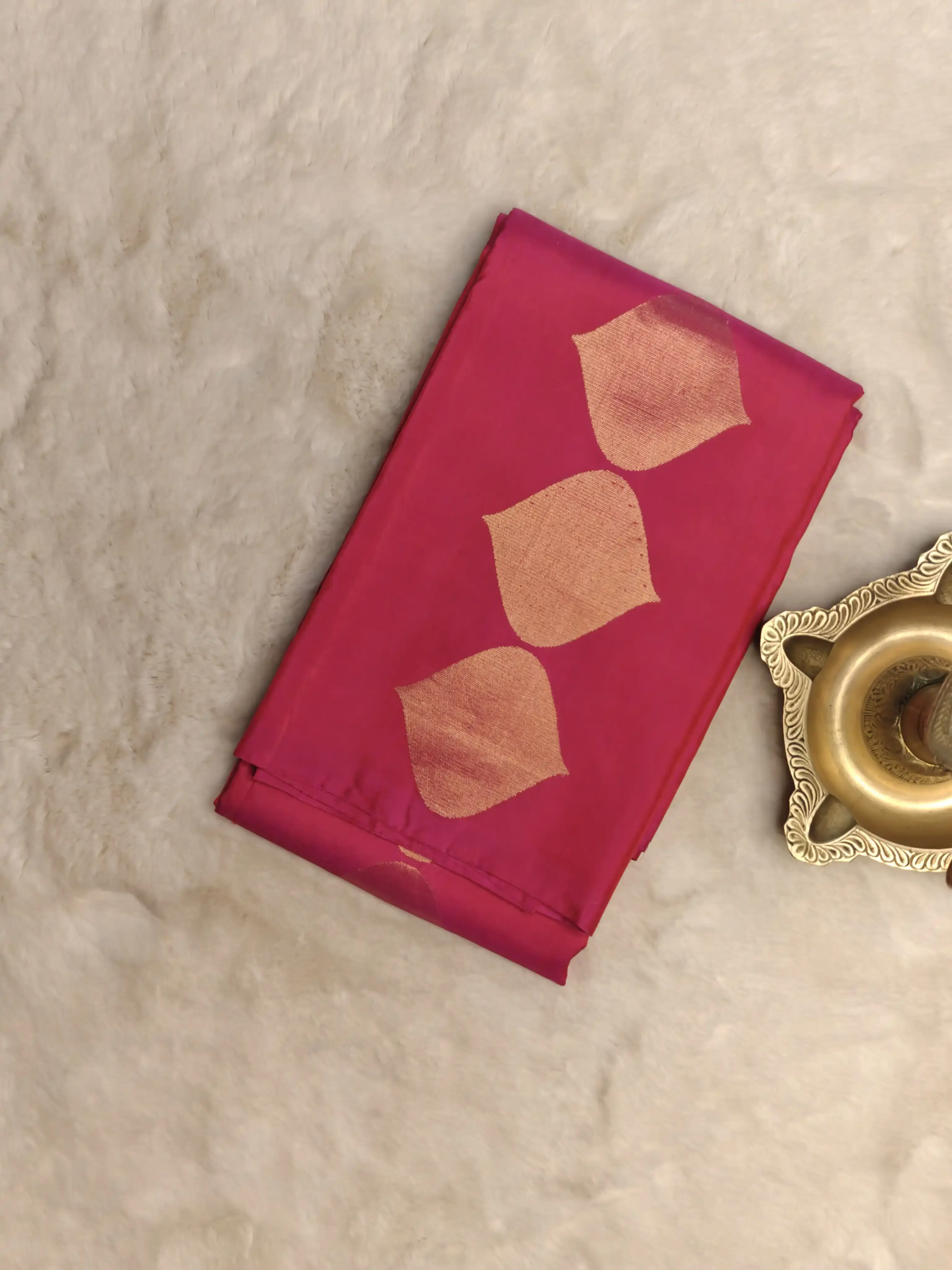 Crafted in luxurious pure silk, the saree drapes effortlessly with a smooth, graceful fall, making it ideal for festive occasions, weddings, and elegant evening celebrations. The modern zari motifs lend a fresh, stylish appeal while preserving the timeless charm of silk.