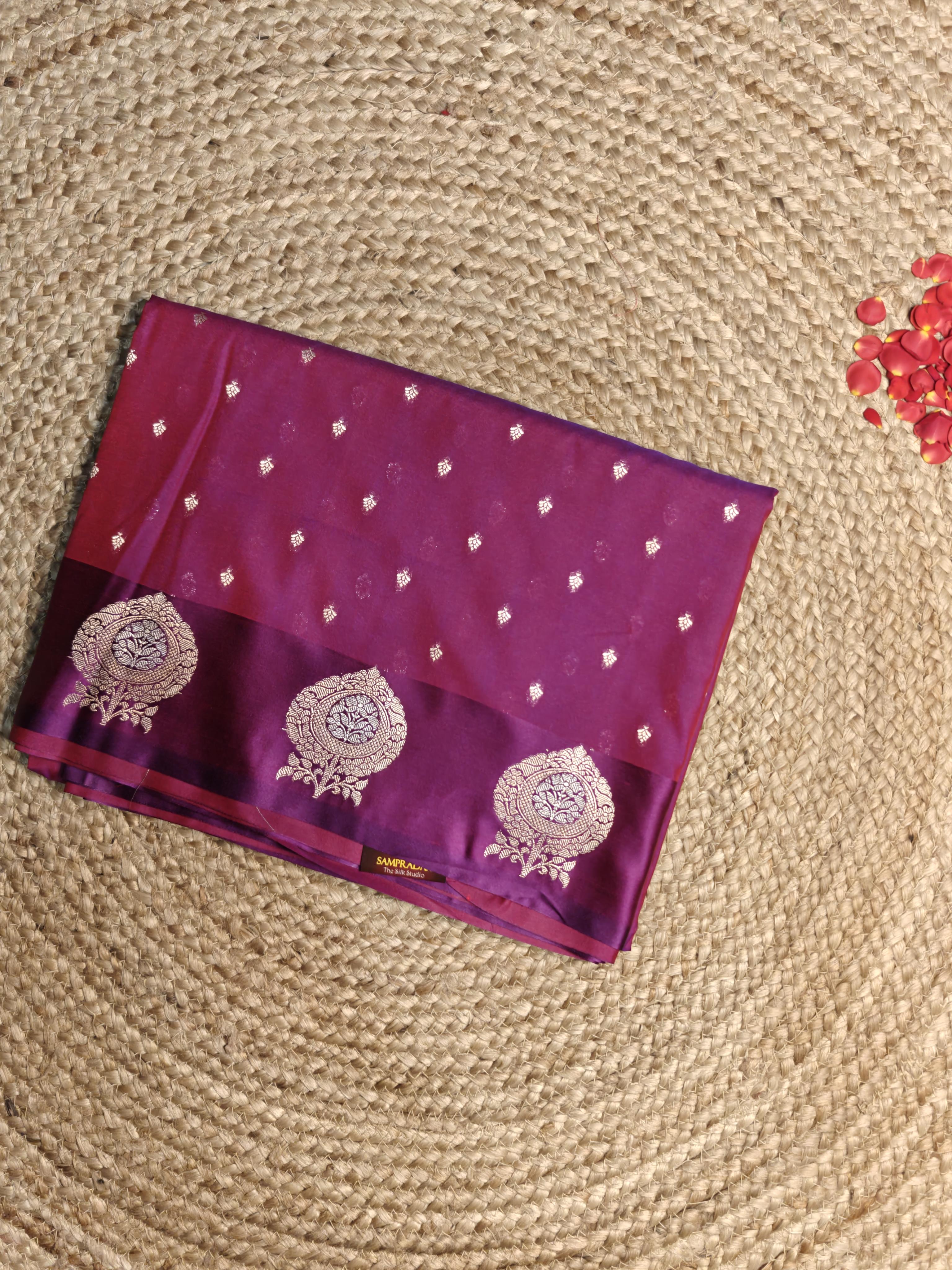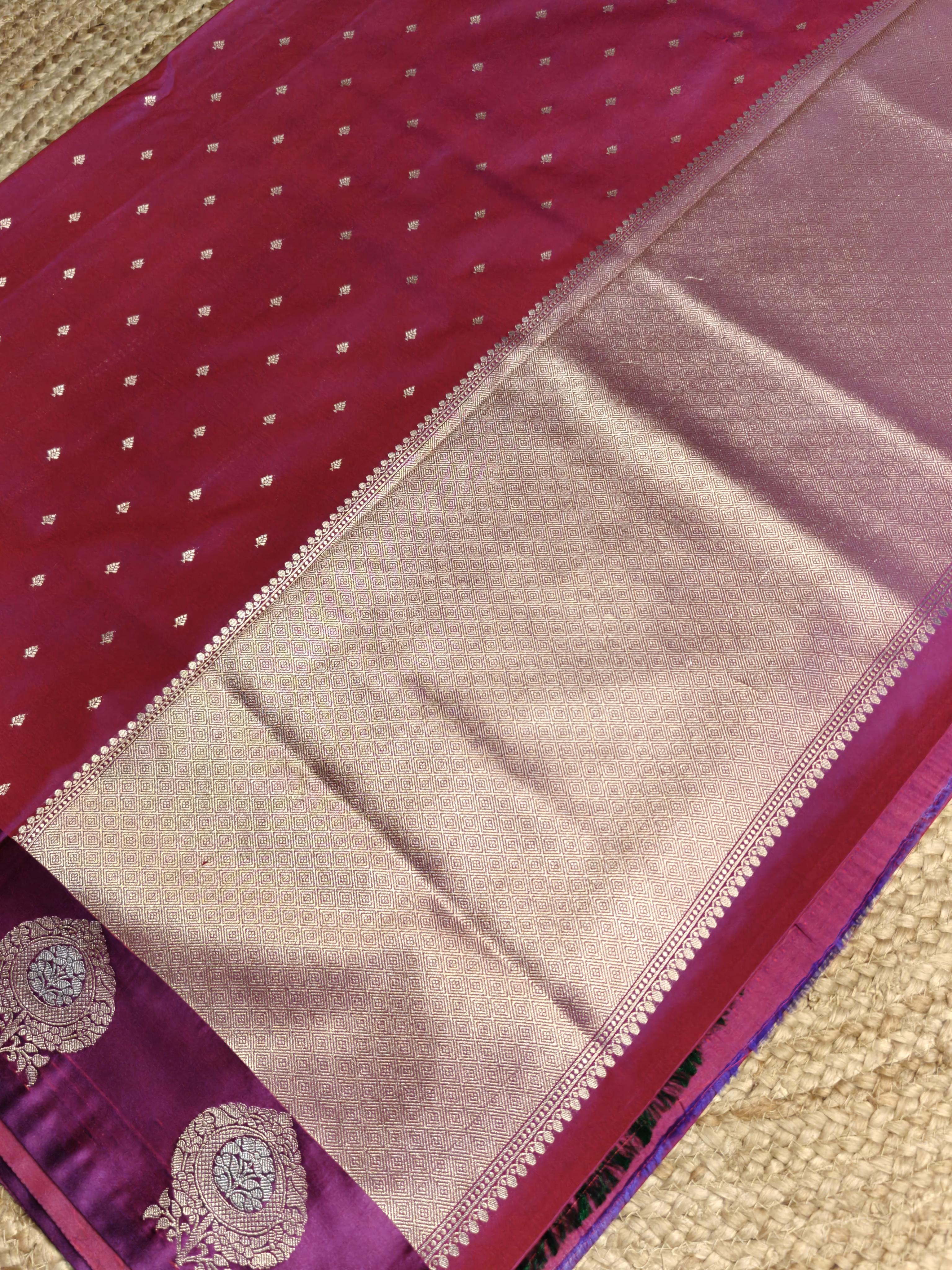 Rani Pink small motifs with satin border katan silk saree