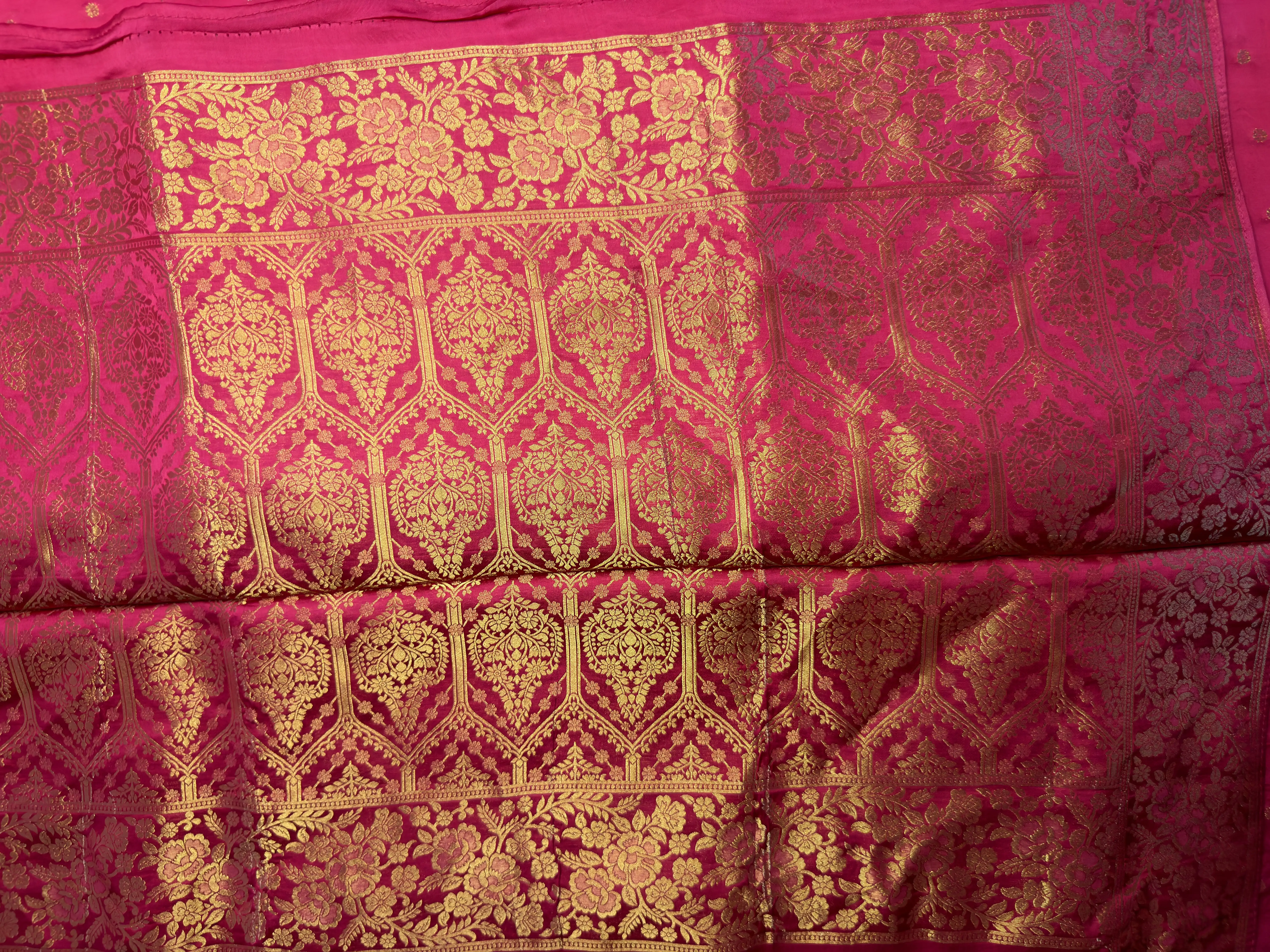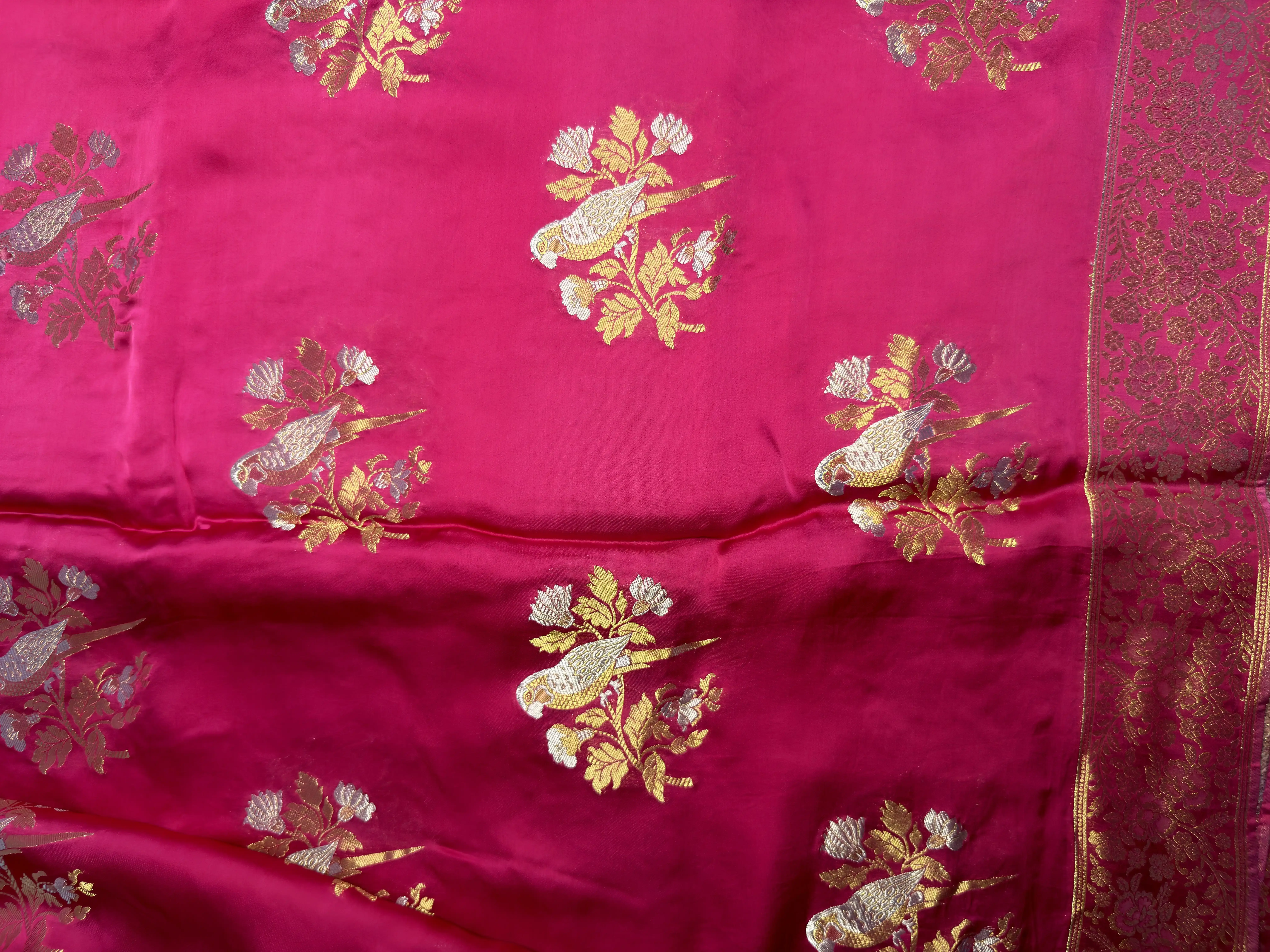 Rani Pink with Birds Motifs Mashru Silk Saree