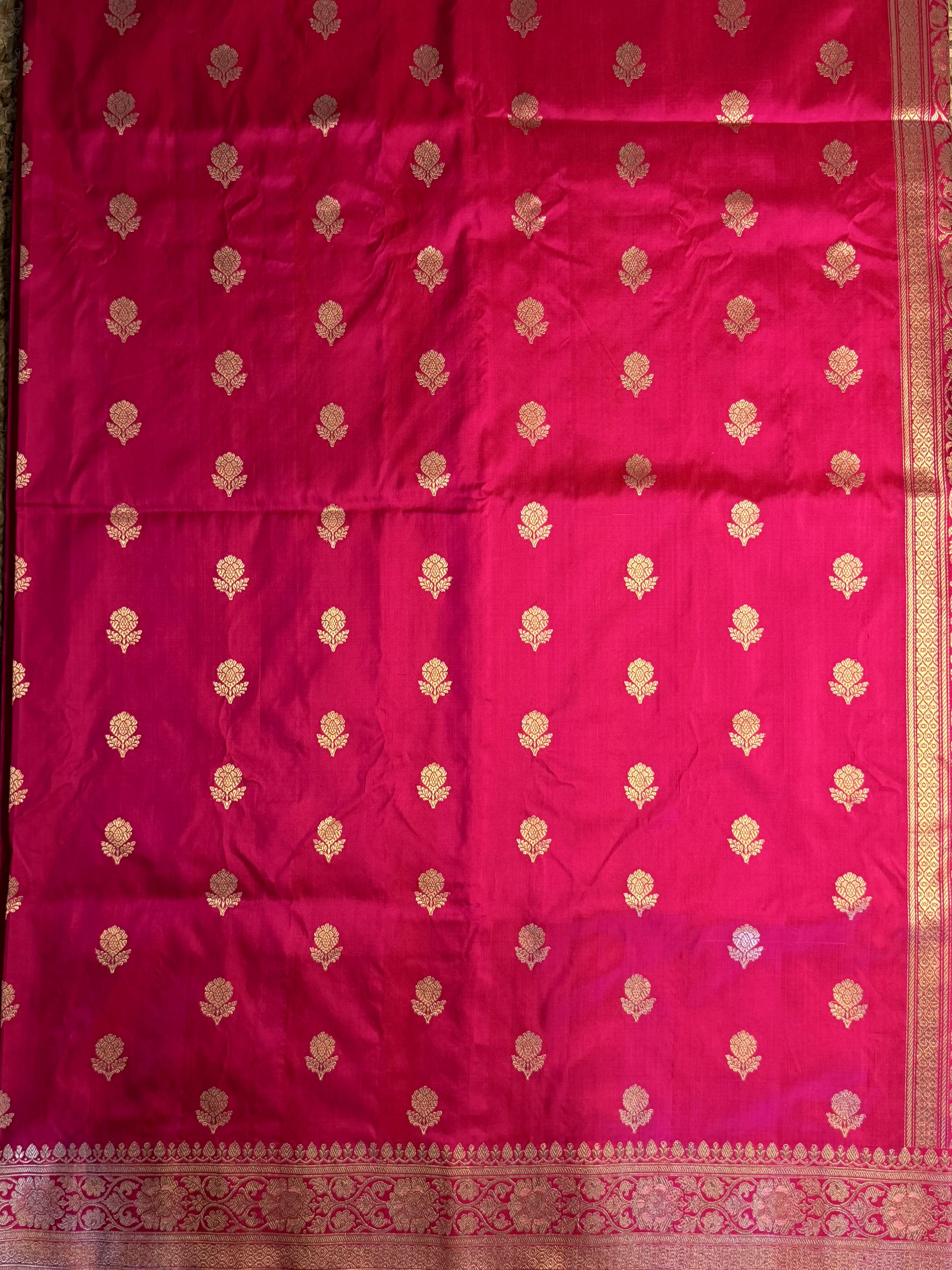Rani pink with flower motifs all over body pure benaras silk saree