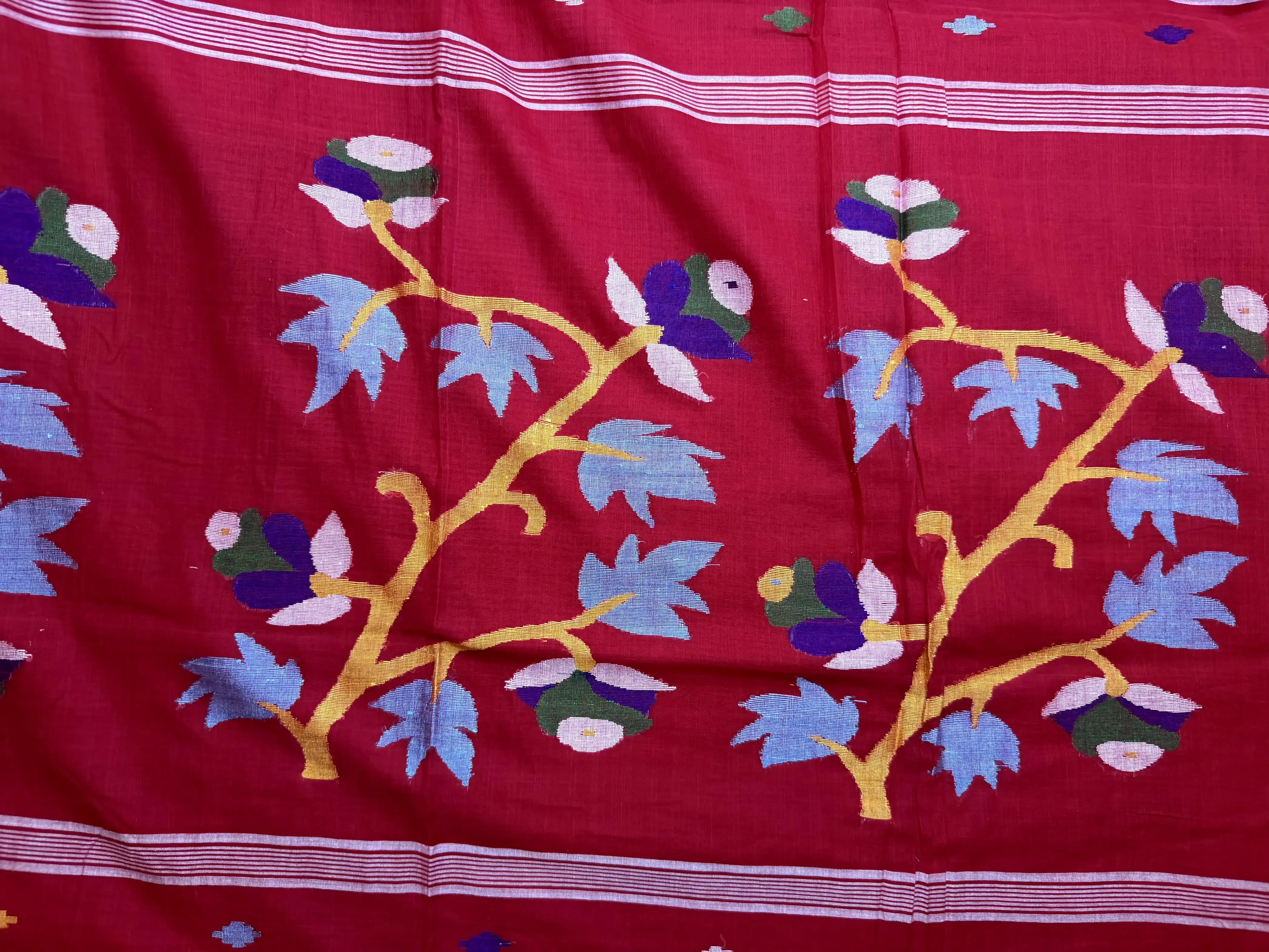 This red cotton saree showcases intricate Jamdhani work, blending traditional artistry with bold colour. Lightweight and breathable, it’s perfect for festive occasions, cultural gatherings, and everyday ethnic elegance — a timeless choice that celebrates heritage with vibrant charm ❤️🧵