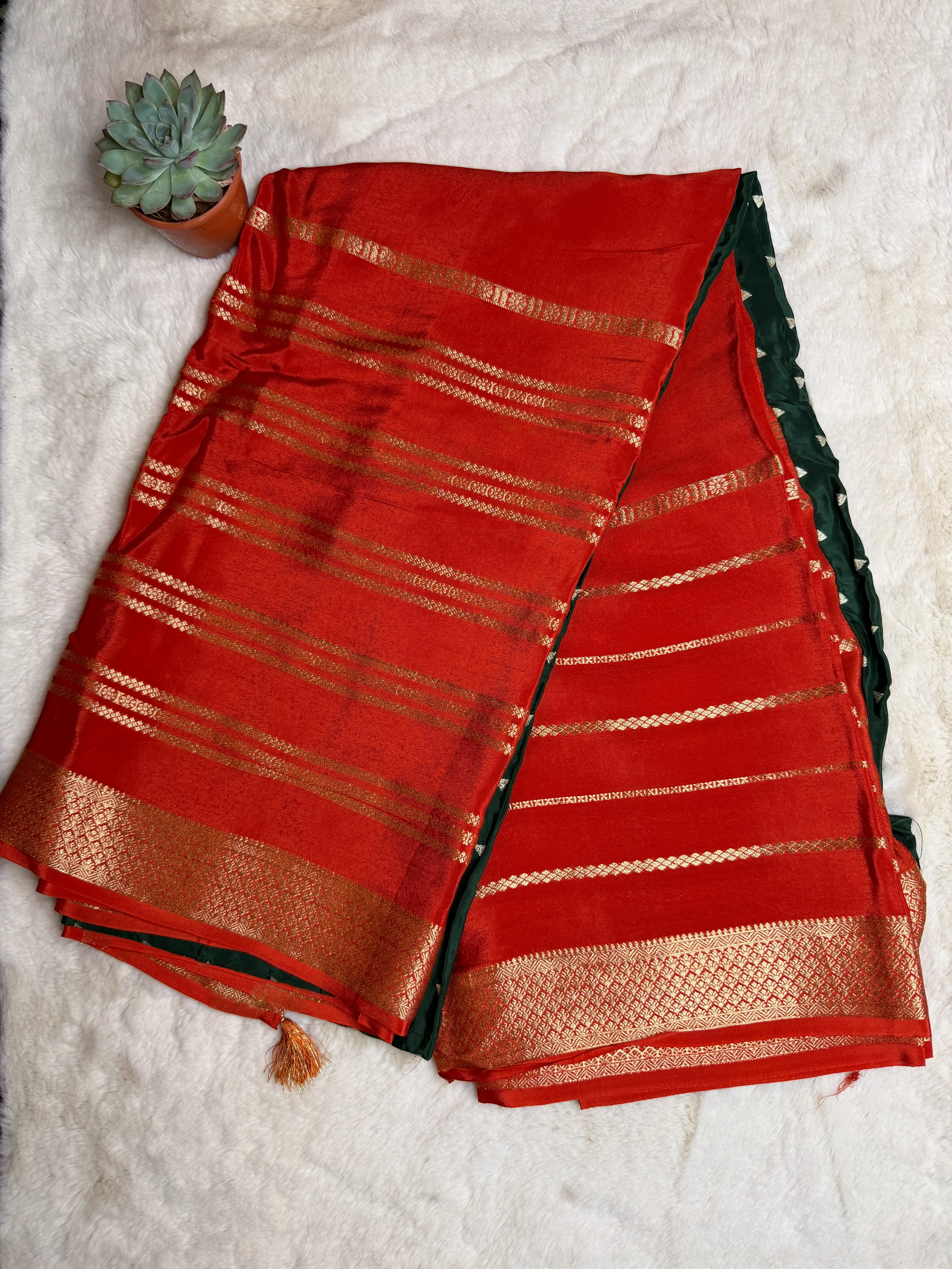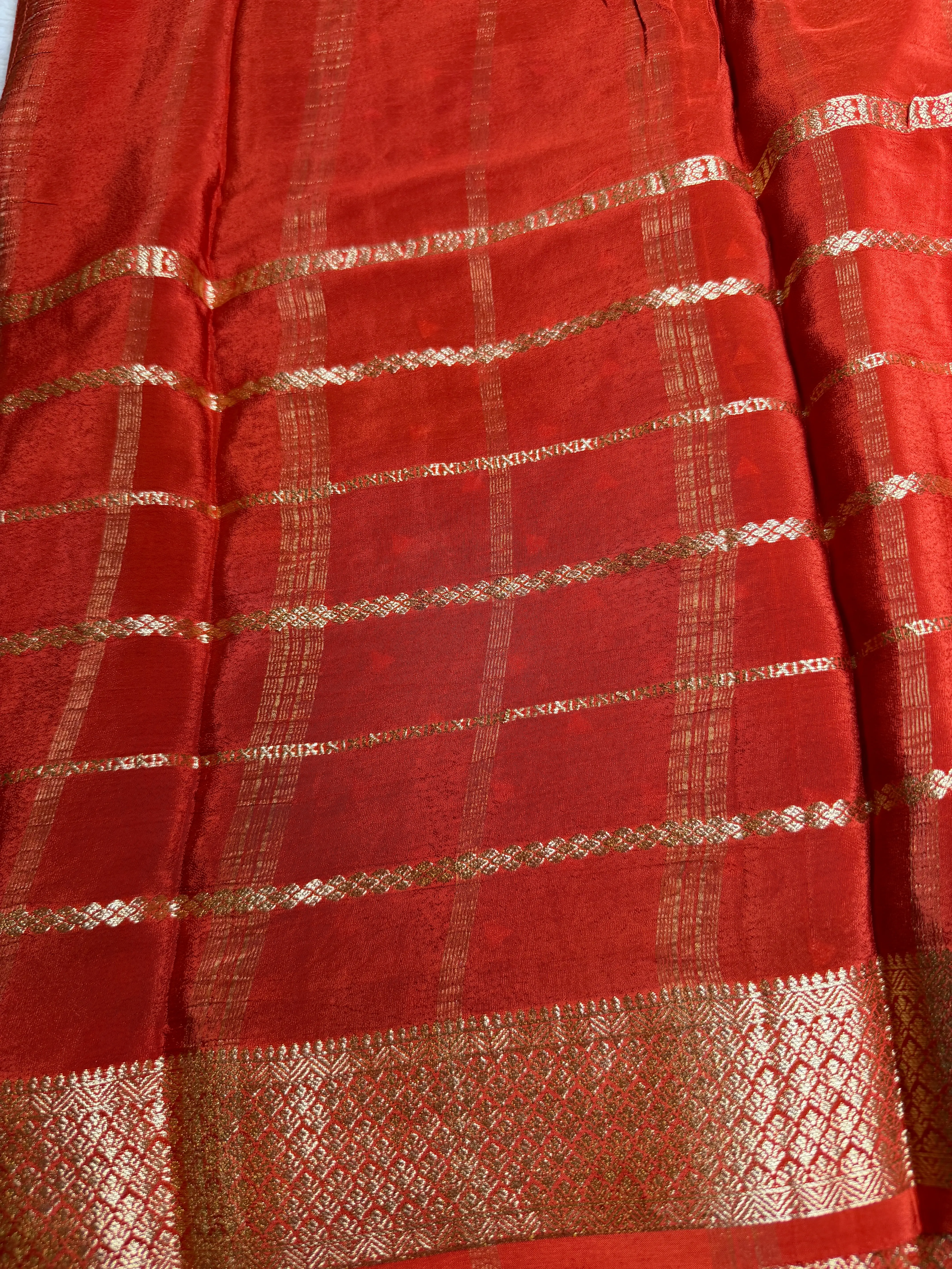 Red Stripes border Semi Crepe saree