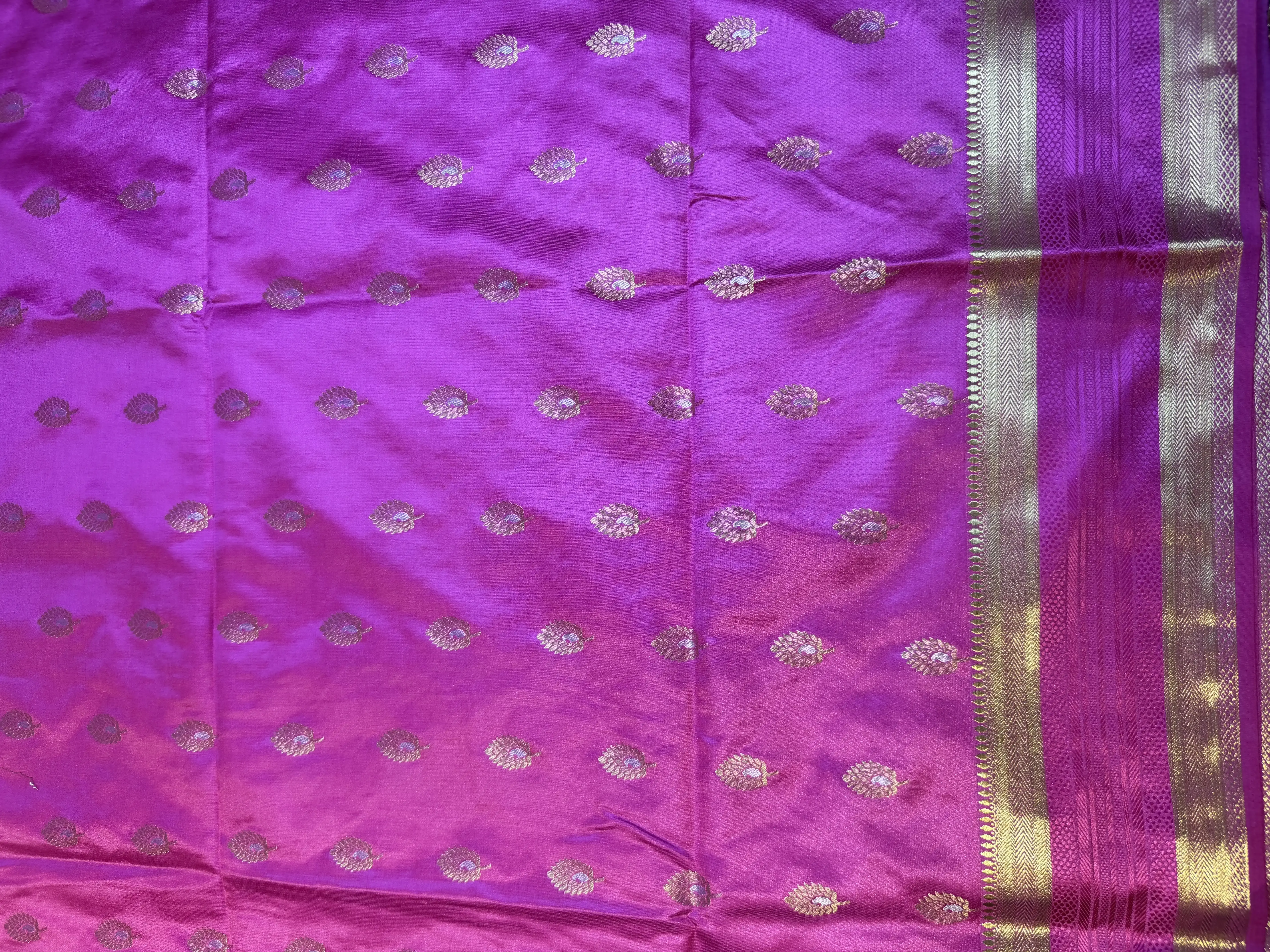 Rose Pink bentex border with buttas semi crepe saree