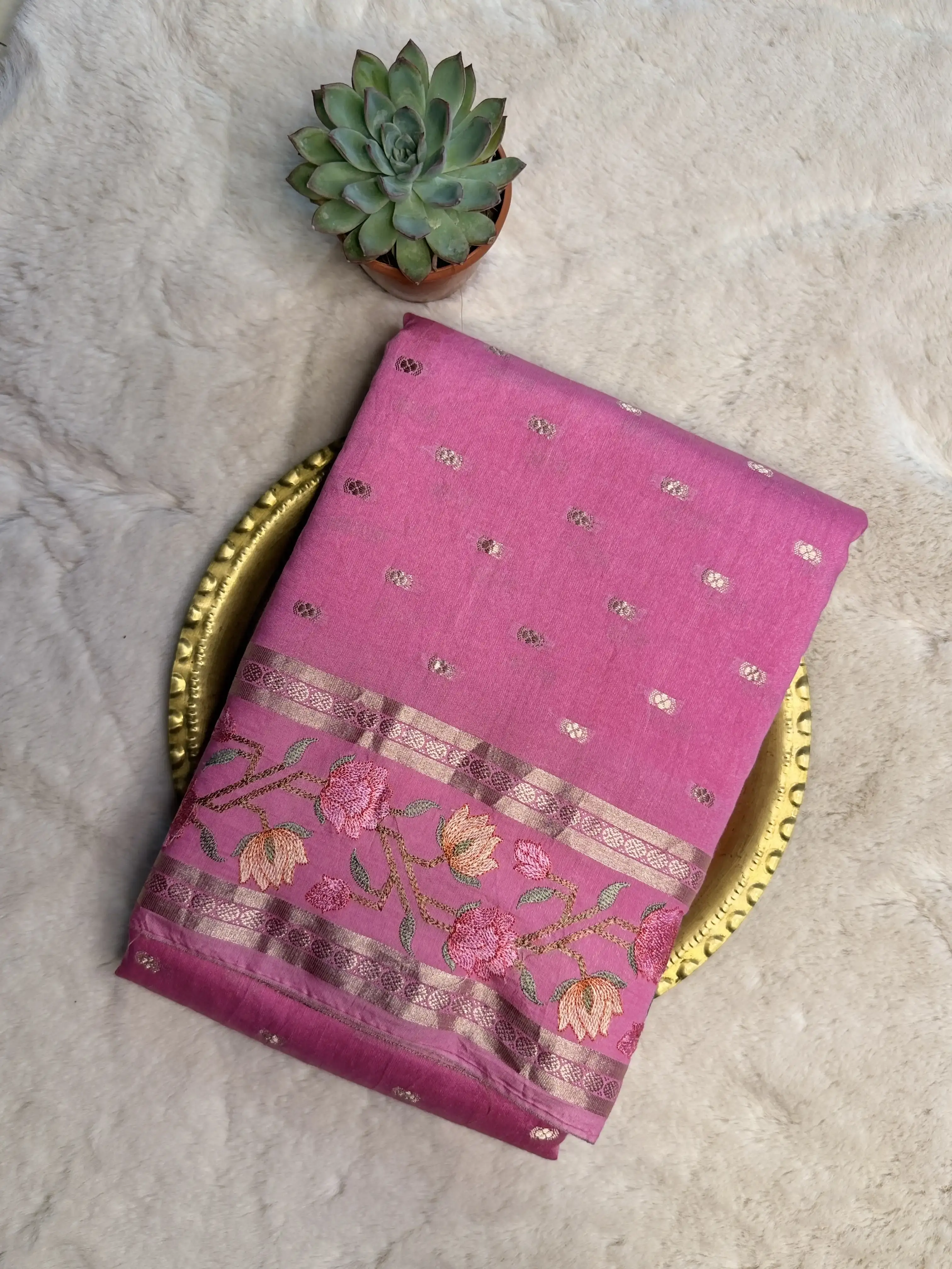 The soft rose pink hue is beautifully complemented by an elegant digital printed border, adding a contemporary touch to a classic weave. Crafted in pure Mysore crepe, it offers a smooth texture and graceful, fluid drape — perfect for office wear, festive gatherings, and special occasions.
