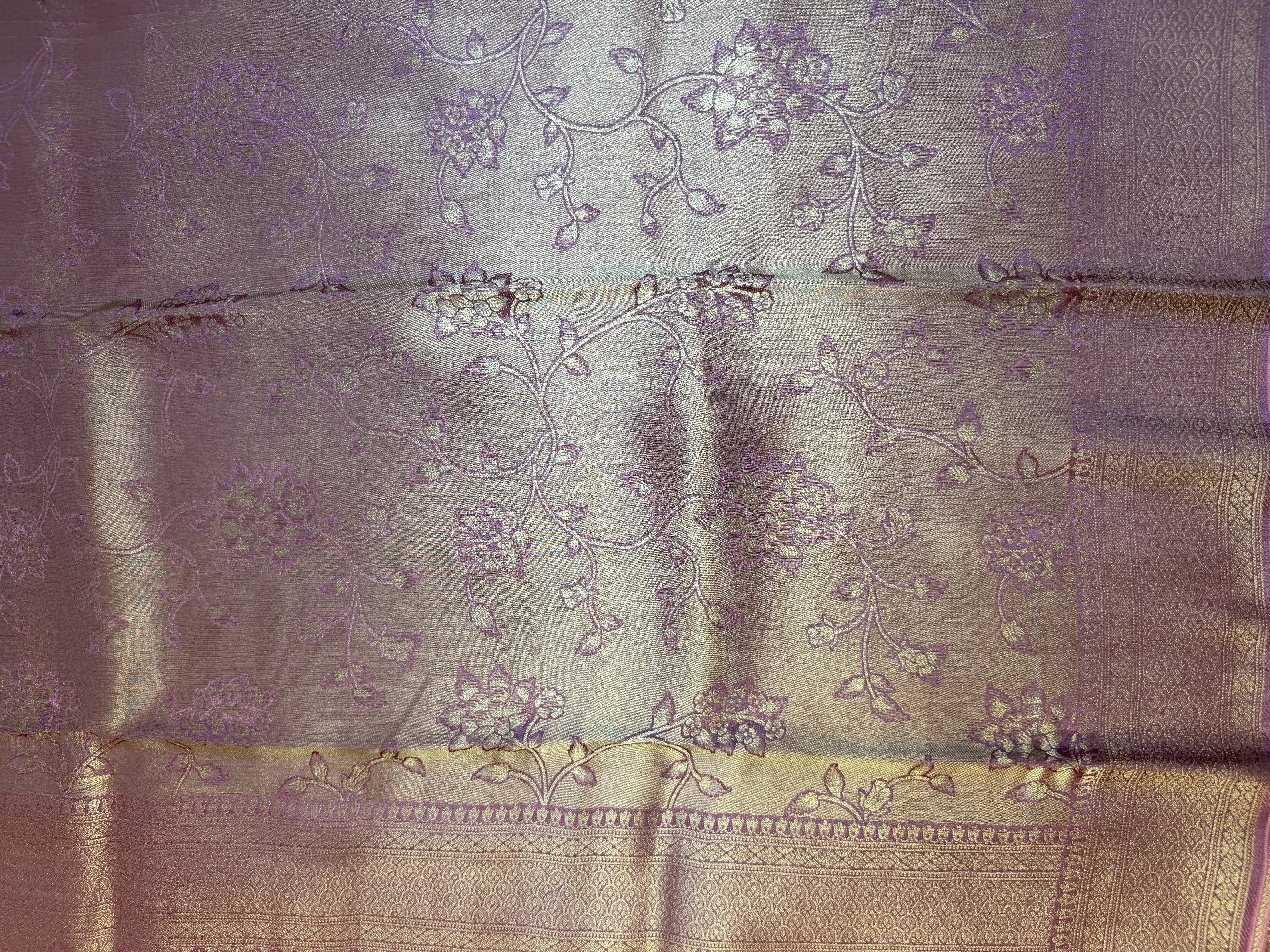 This Rose Pink Tissue satin semi Silk saree is adorned with an intricate jaal pattern that adds richness and regal charm to every drape. The subtle sheen of tissue paired with the graceful weave creates a look that’s festive, feminine, and timeless.