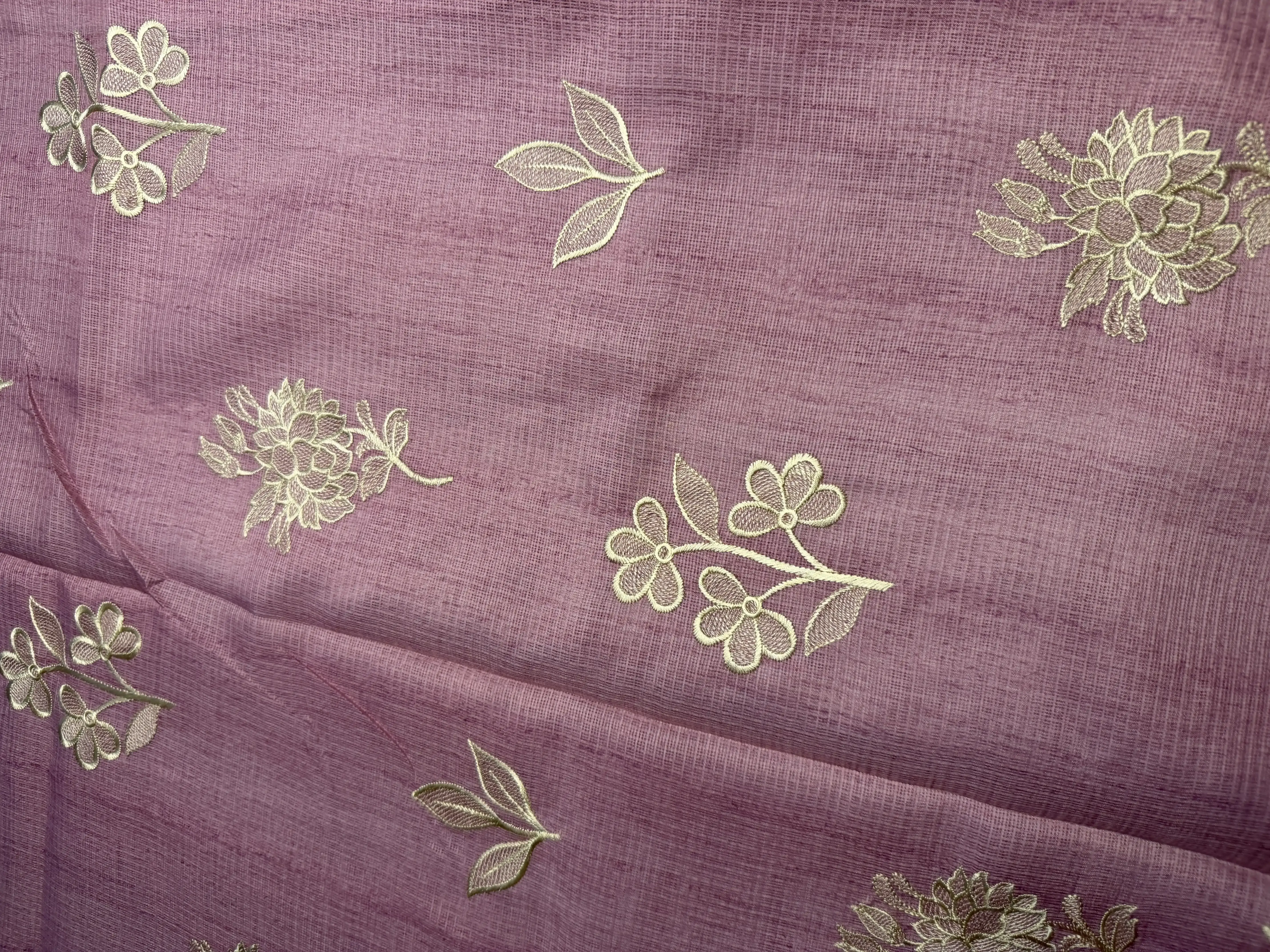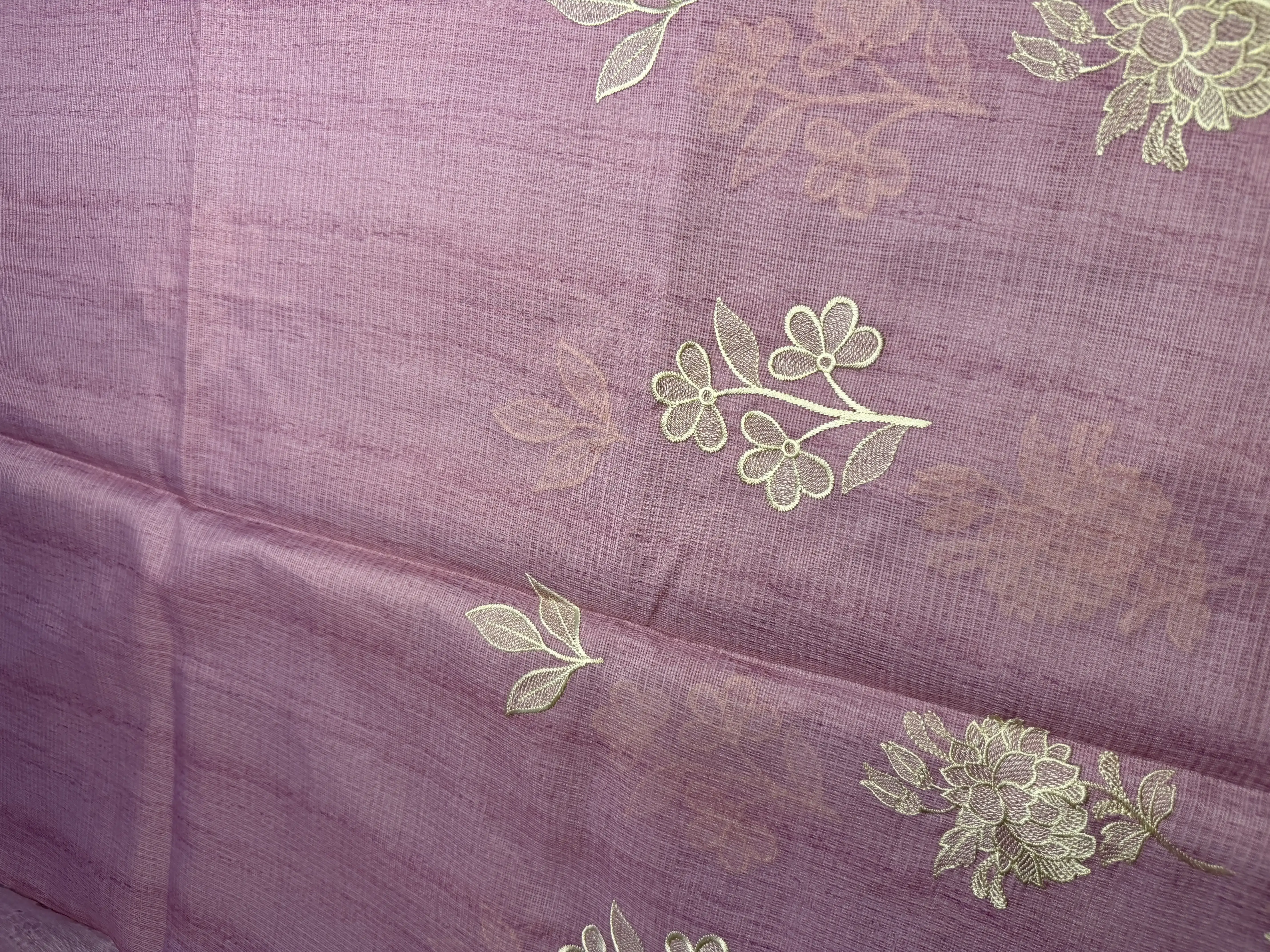 Rose pink thread work kota cotton saree