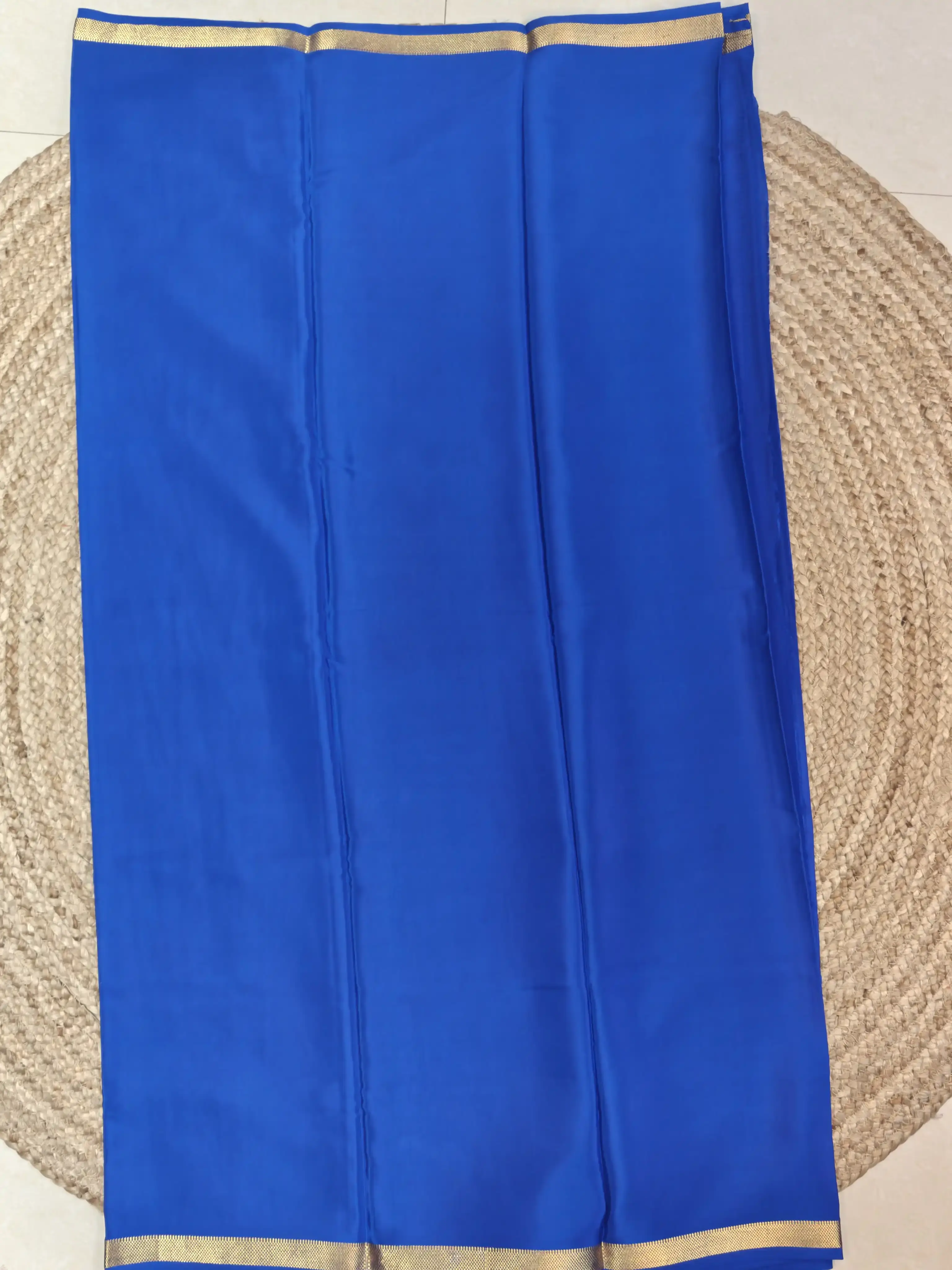 Royal Blue plain Pure Mysore crepe silk saree 120gsm