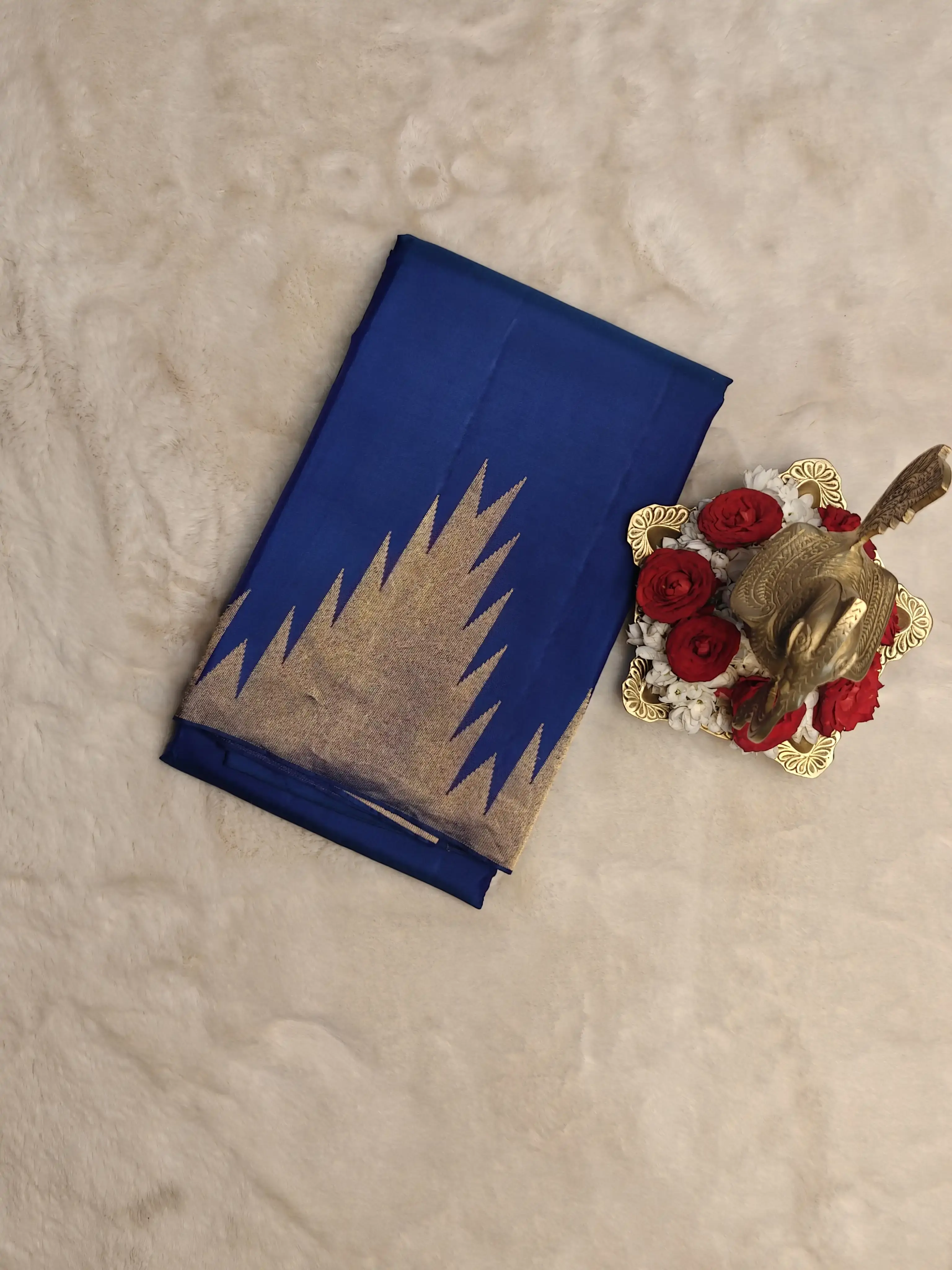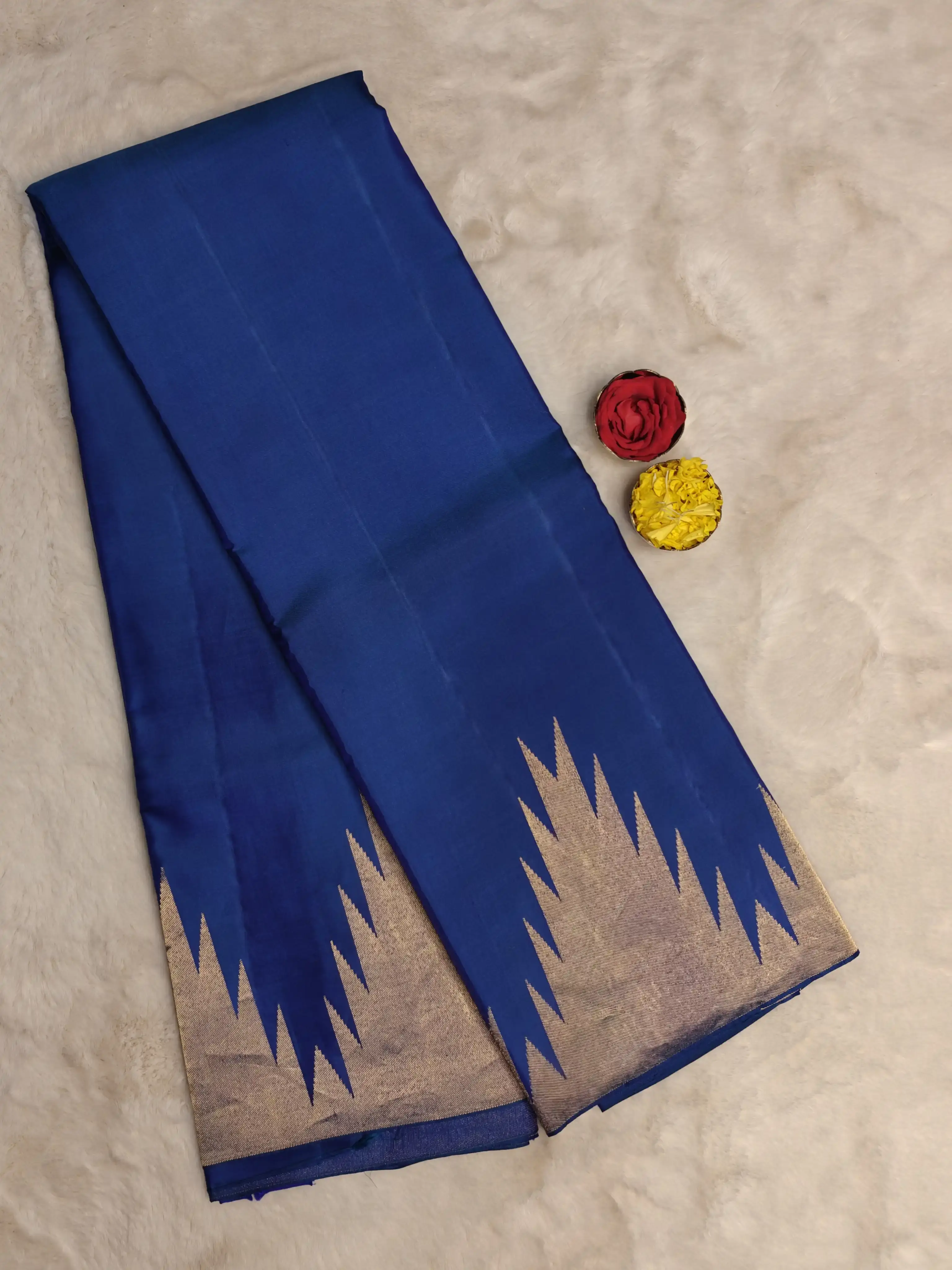 Royal Blue Temple border silk saree