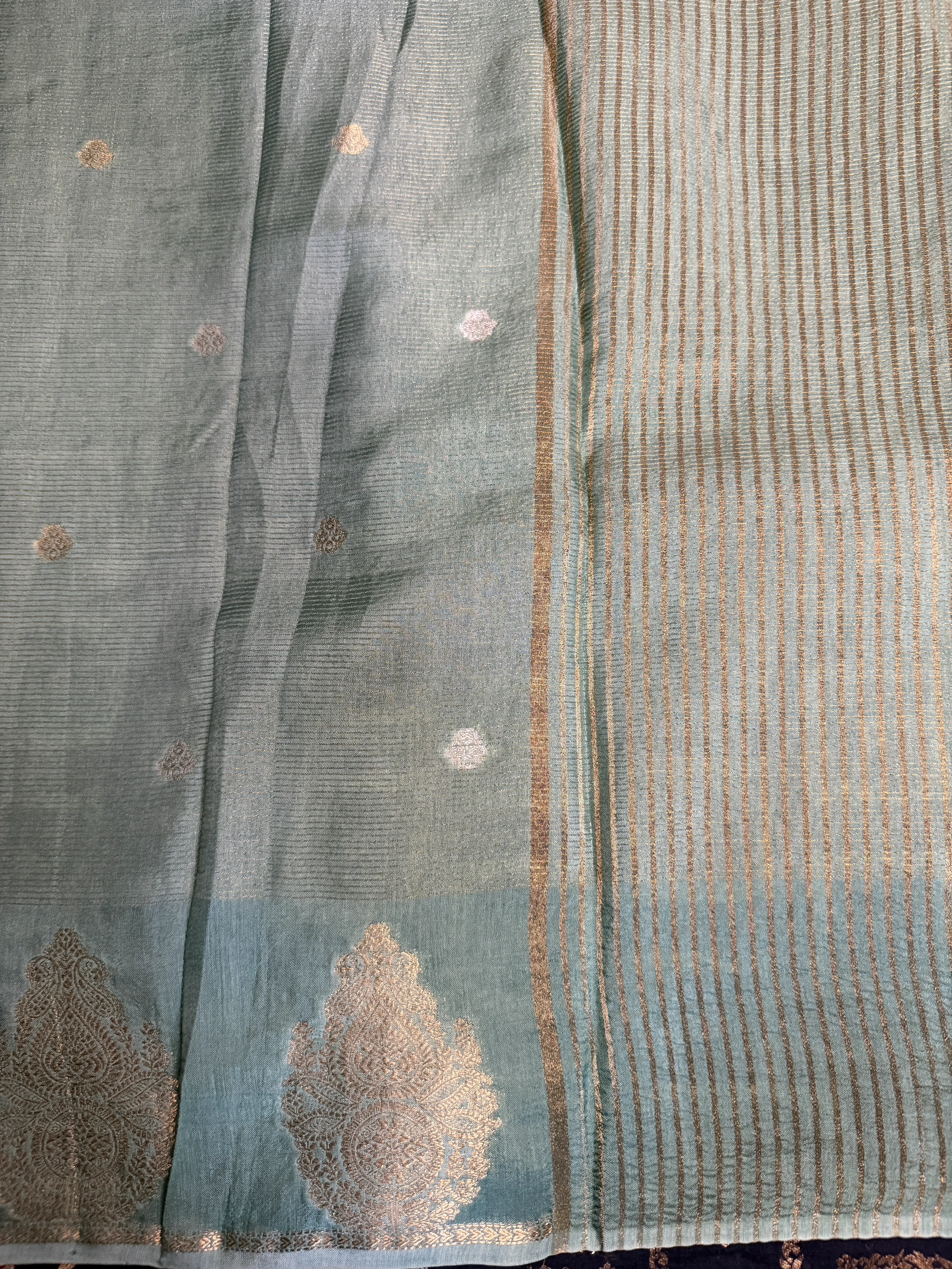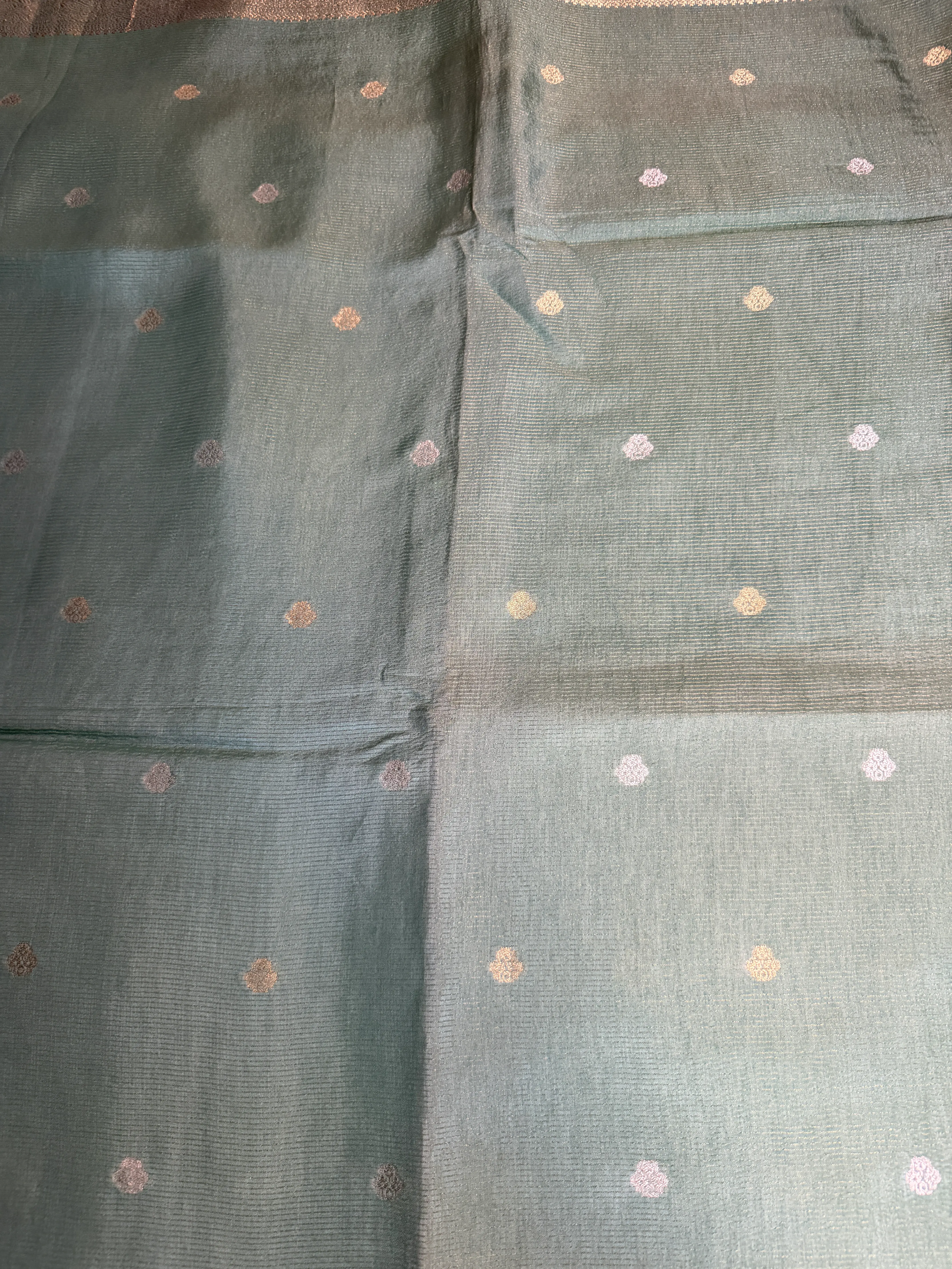 Sea Green with contrast blouse Semi Crepe Saree