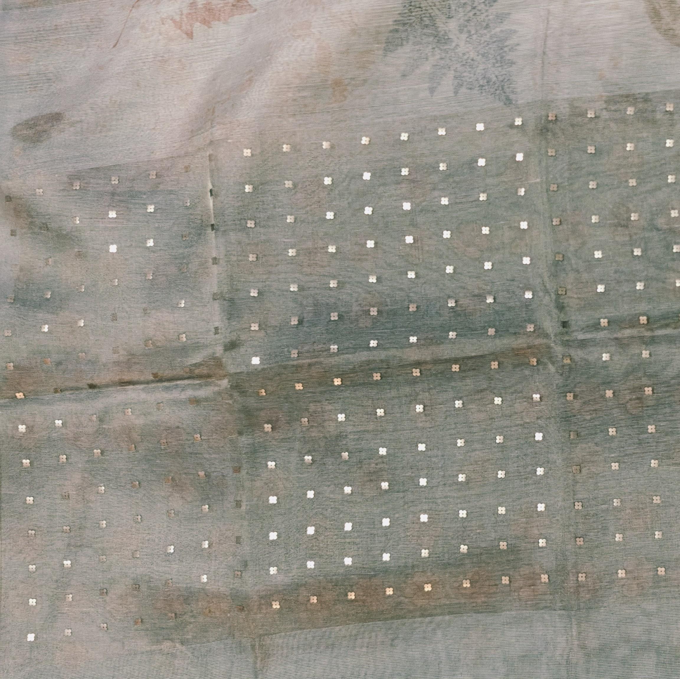 Olive Green Tissue Saree with Sequin Work and Nature Print Accents