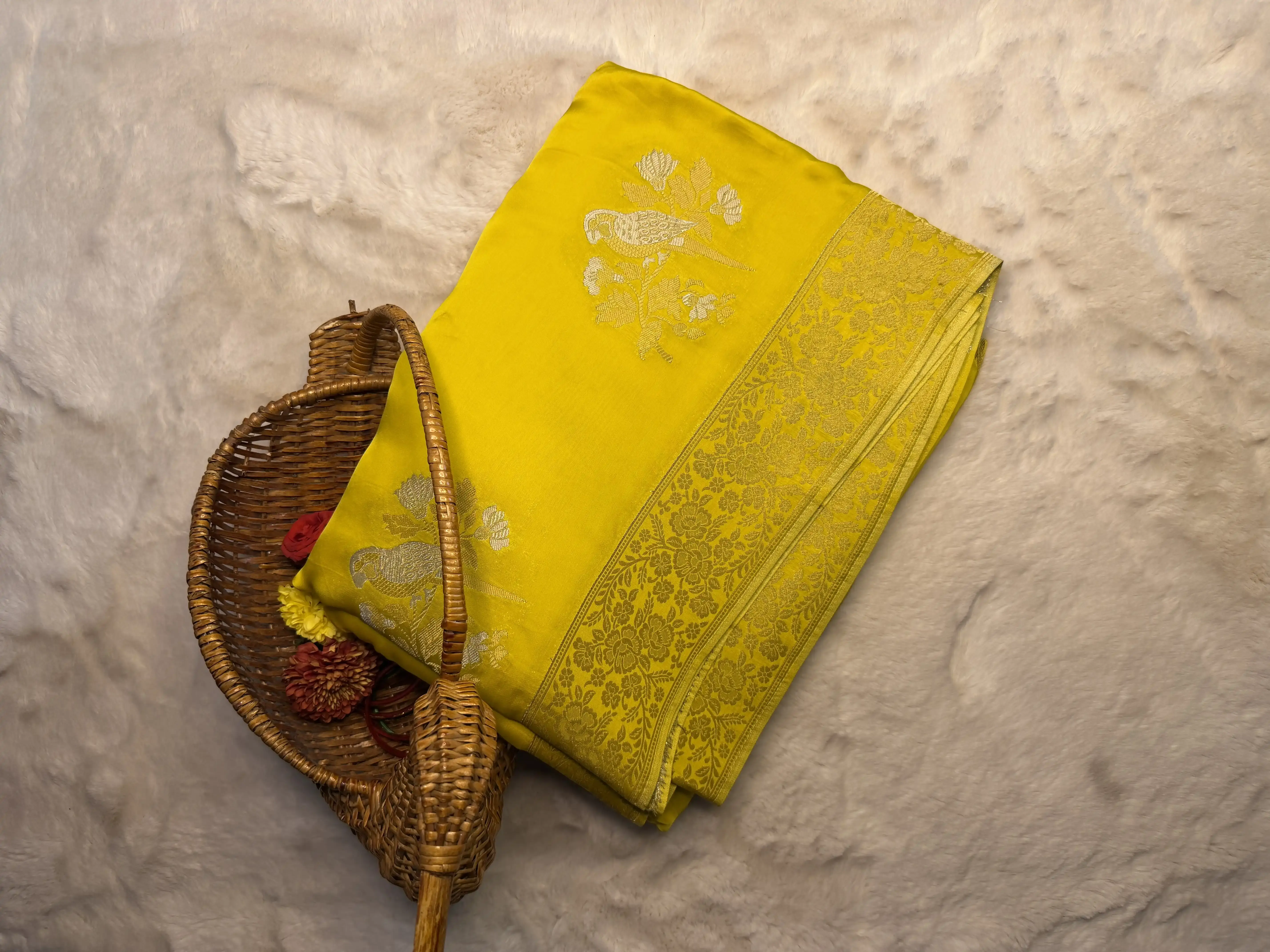 Yellow with Bird motifs Mashru Silk Saree